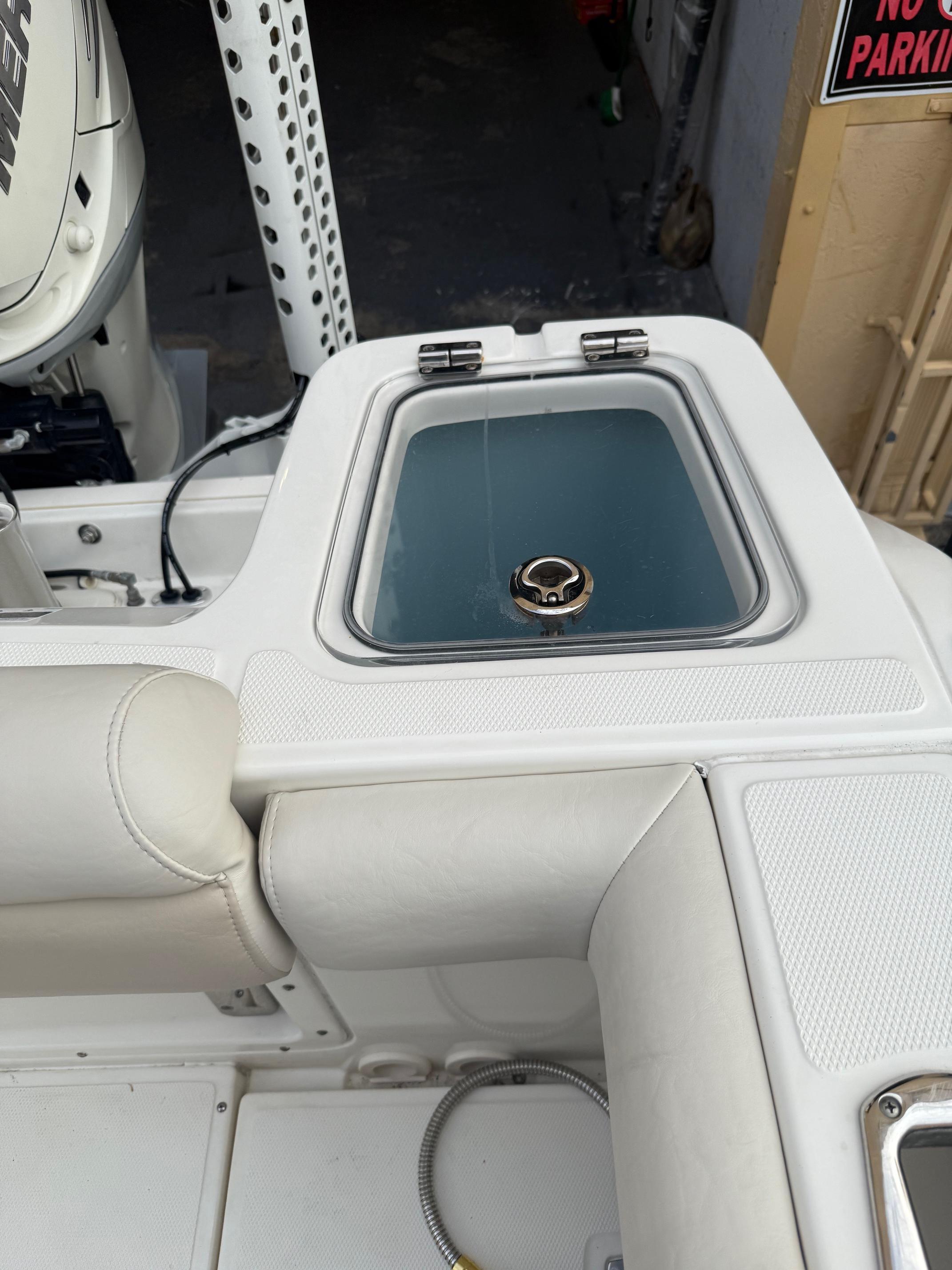 - In-deck fishboxes with overboard drains (port and starboard) with compression latches