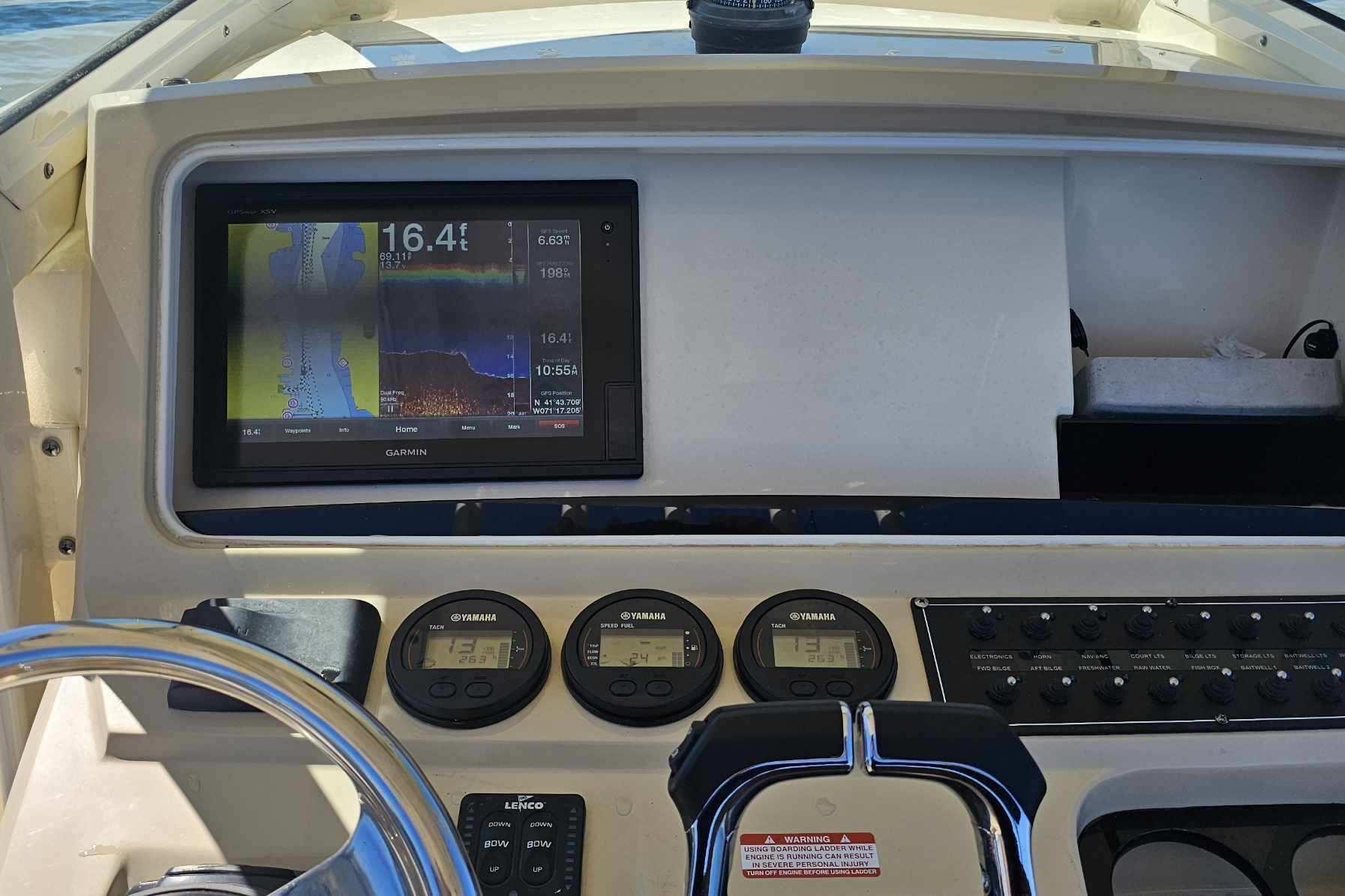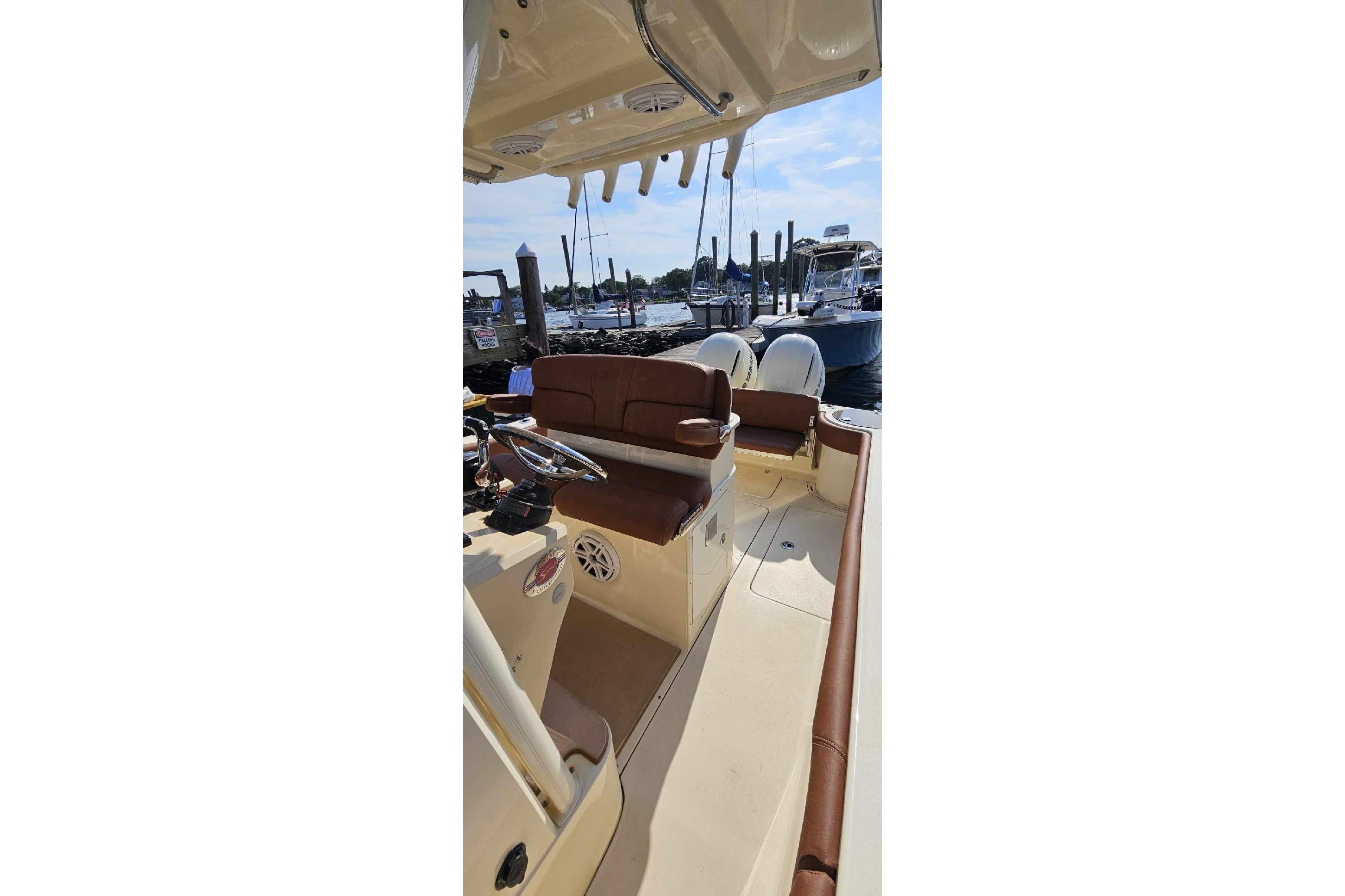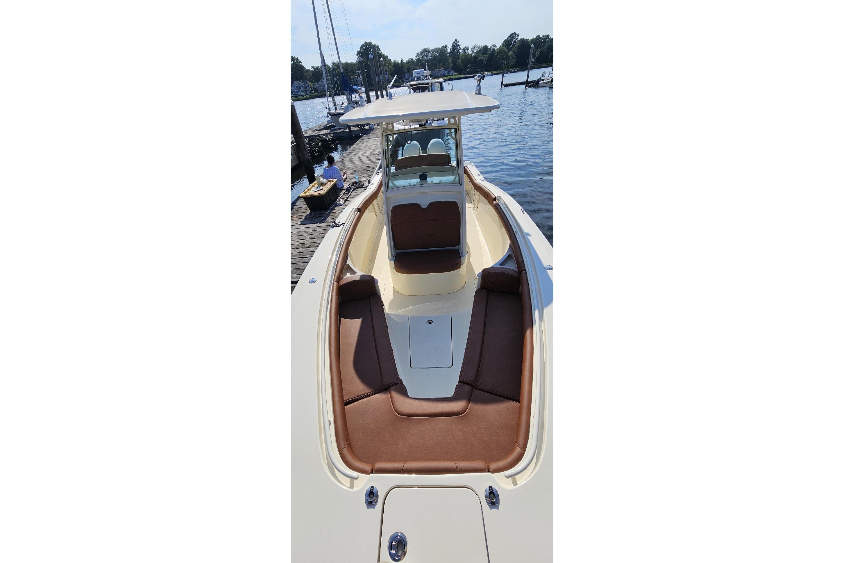 This Scout 275 LXF is the perfect blend of performance, luxury, and fishability. Well cared for and meticulously maintained, this vessel is turn-key ready for your next adventure on the water. With an overall length of 27.5 feet, this vessel boasts a sleek, deep Vee hull made from durable composite material, ensuring stability and agility on the water. Powered by recently tuned up twin Yamaha 200HP with just 260 hours of reliable performance this boat is designed for exhilarating speed and efficiency.