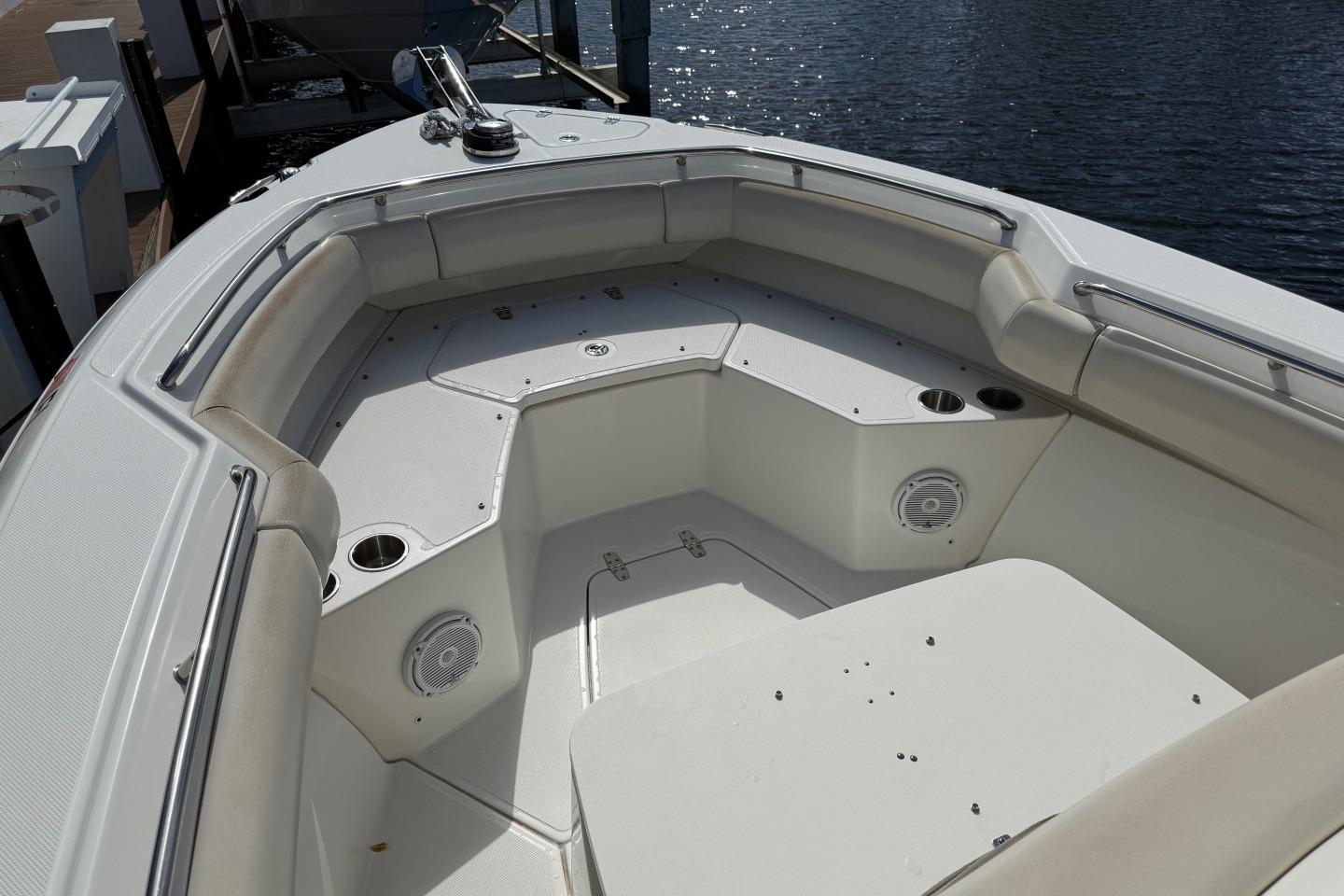 - Spacious open bow features large, convenient storage compartments and conversation-friendly seating.