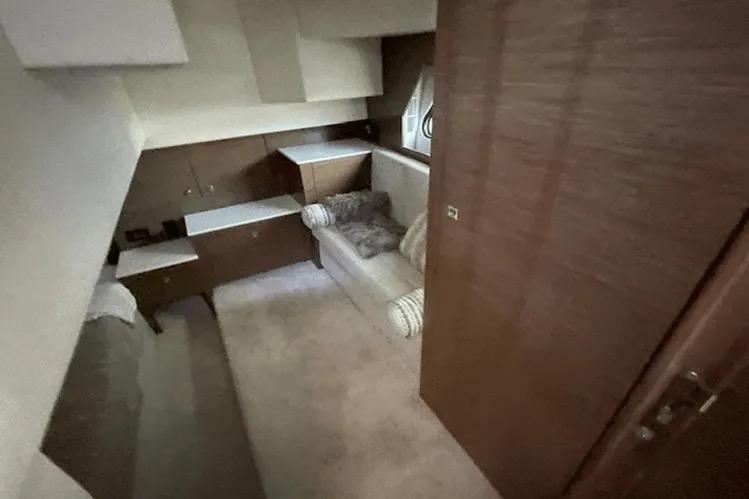 Culinary enthusiasts will appreciate the well-equipped galley, outfitted with modern appliances and expansive countertop space. It’s the perfect setting for preparing delectable meals while taking in breathtaking views of the open water.