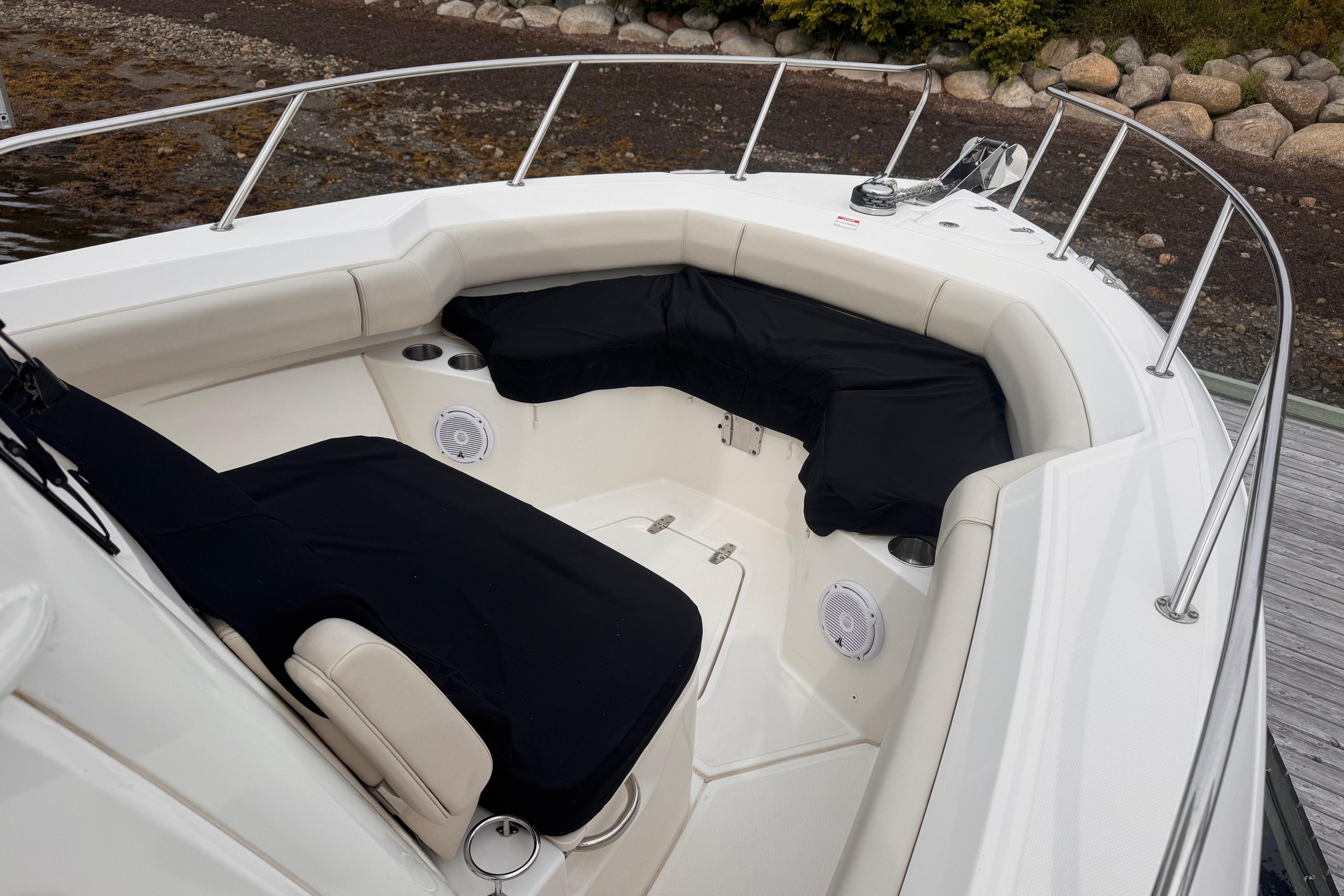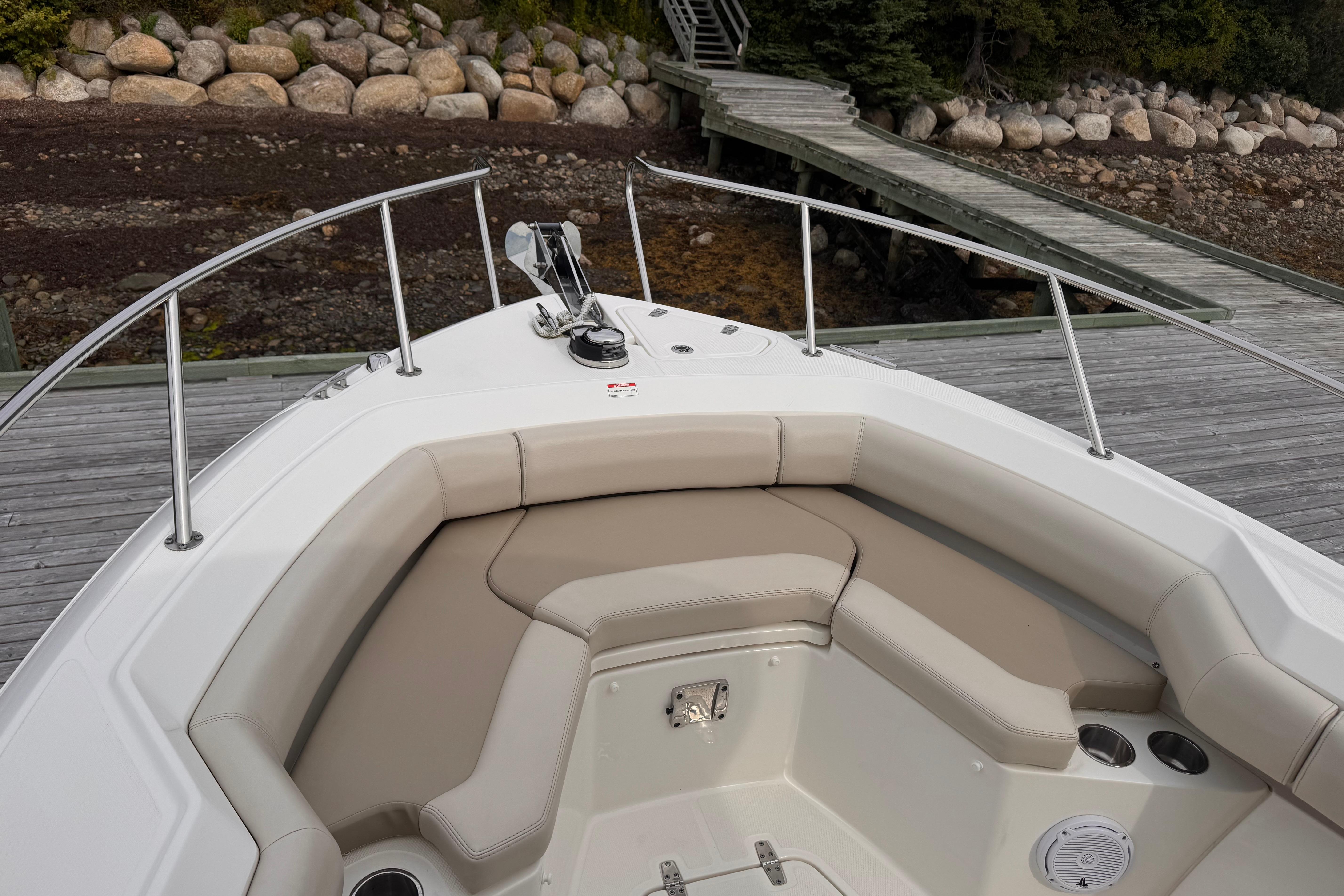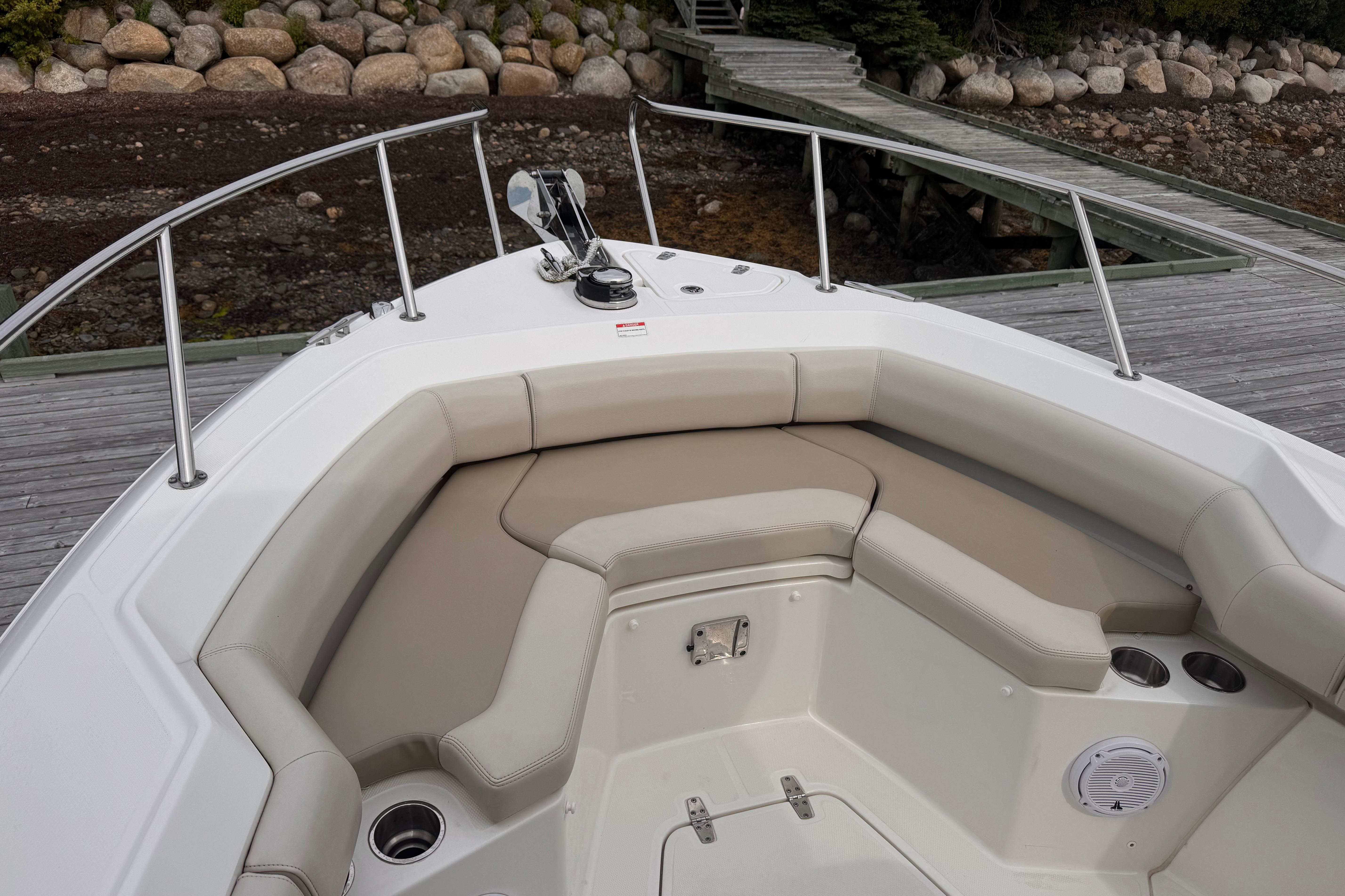 - Spacious open bow features large, convenient storage compartments and conversation-friendly seating.