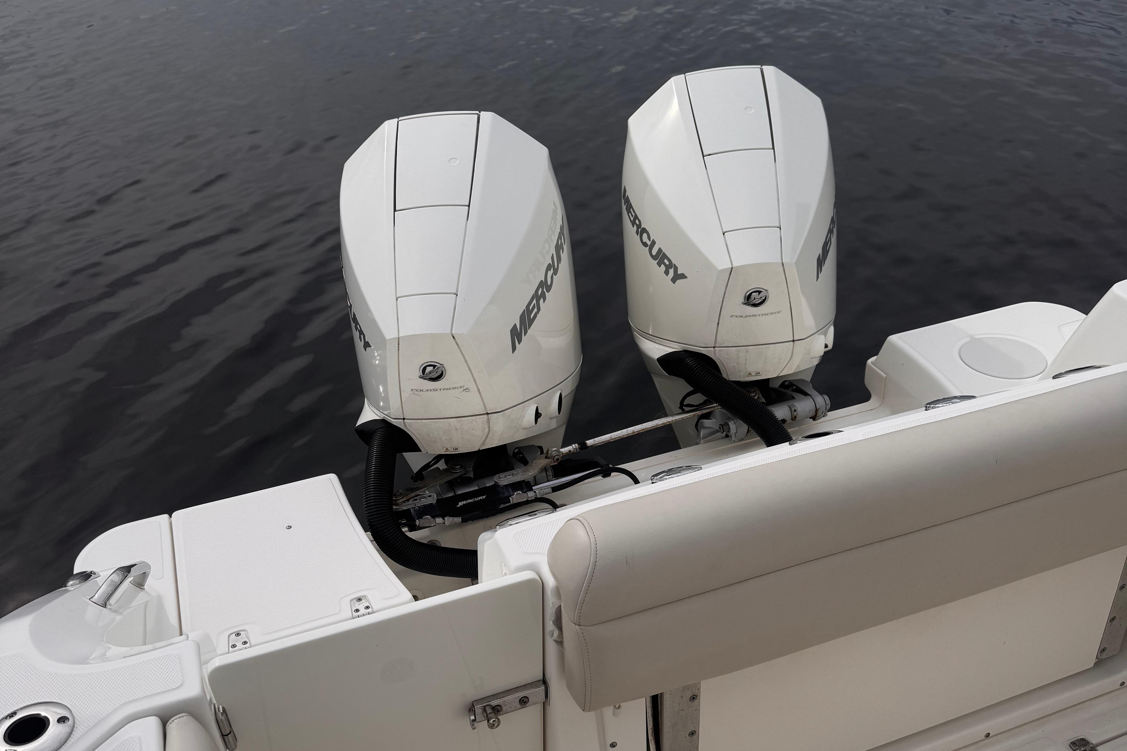 - 350 XXL L6 DTS Mercury Veradi FourStroke with hydraulic power steering and fuel/water separator (91 octane fuel recommended)