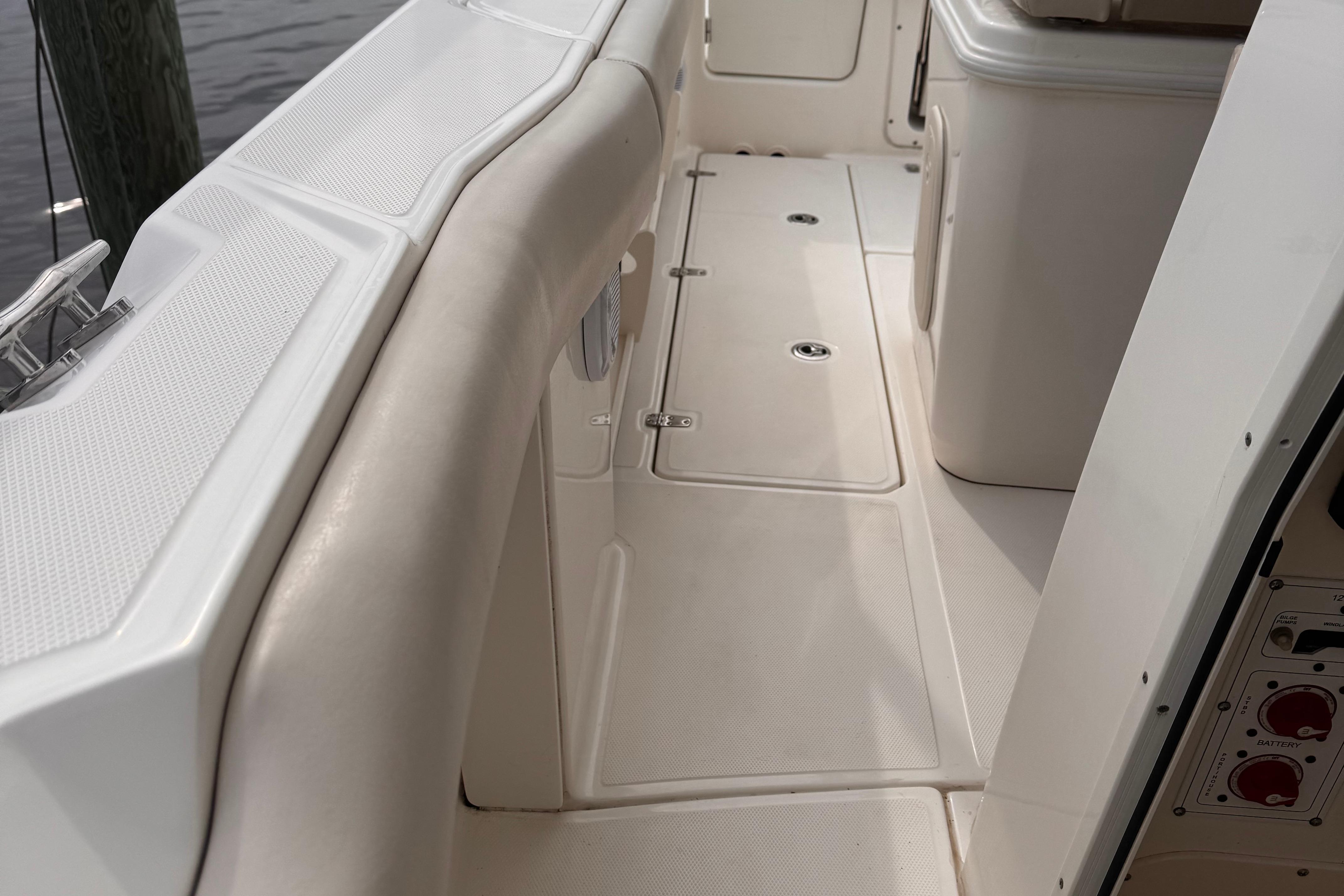 - Aft storage center (1 port side top loading, 1 forward loading) (deleted with optional aft livewell)