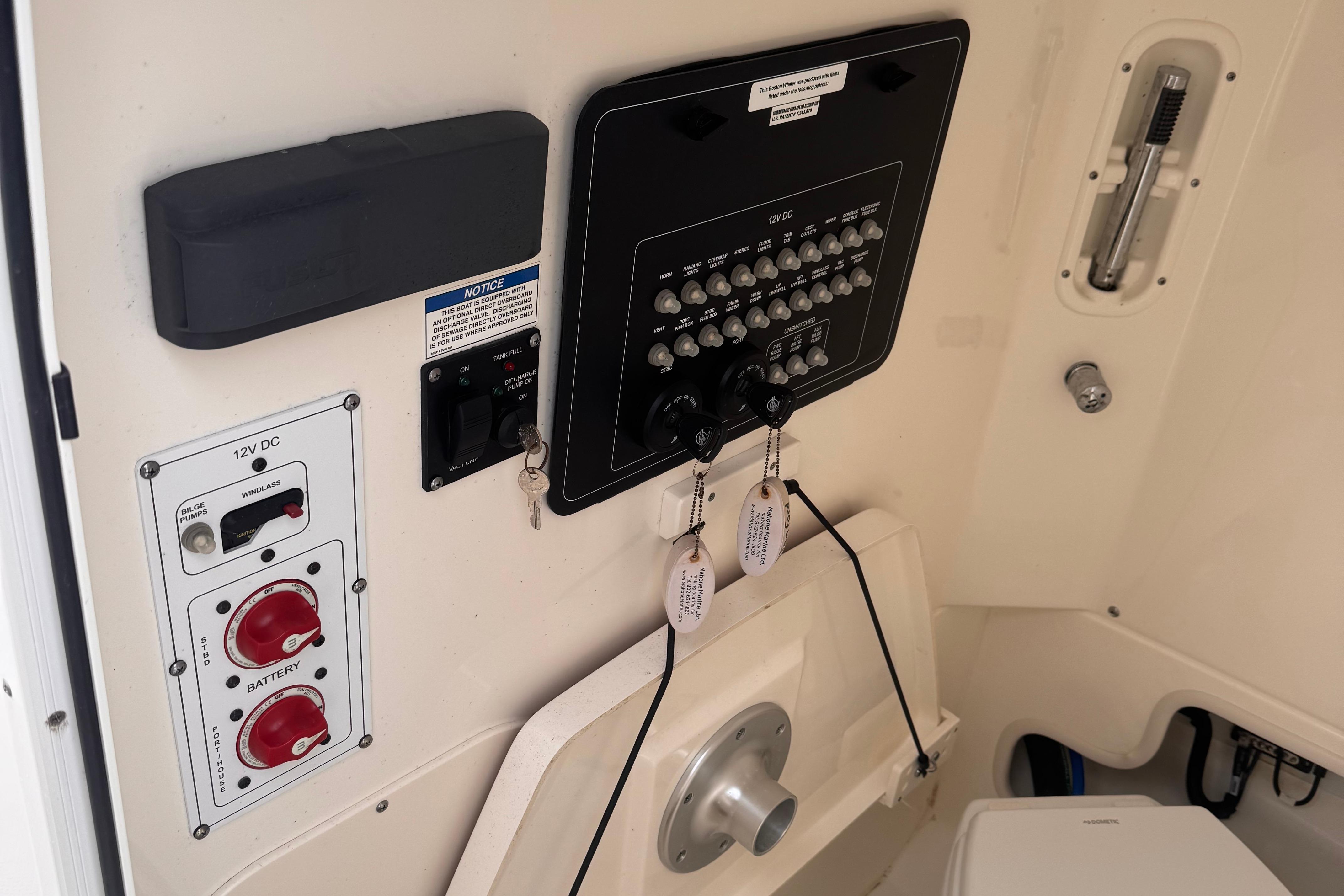 - Electrical distribution/breaker panel with key switched (inside console)