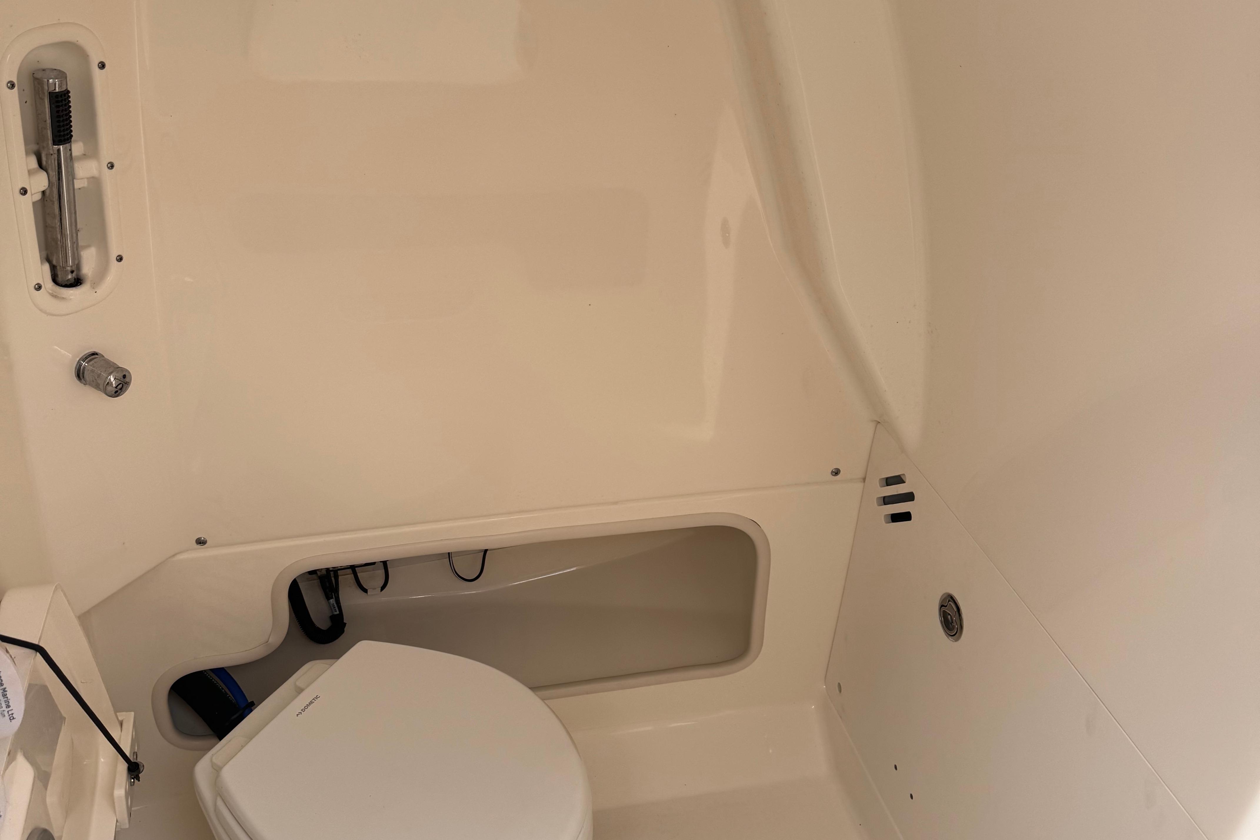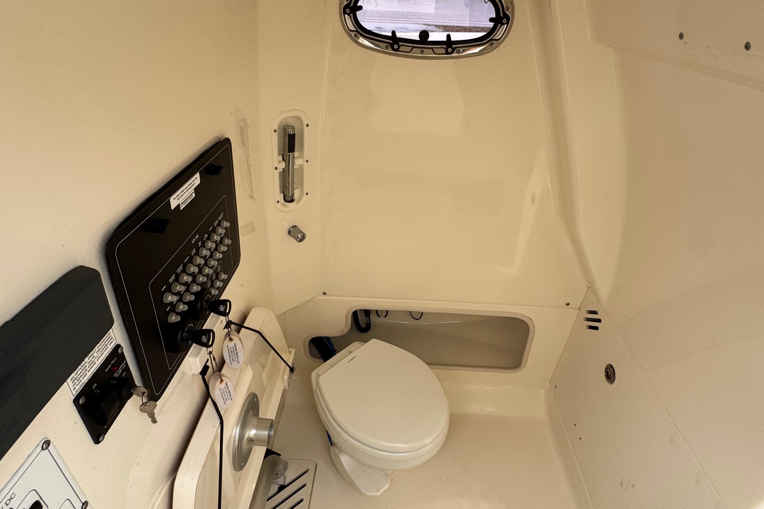 - Enclosed head/storage area in console with easy-clean liner