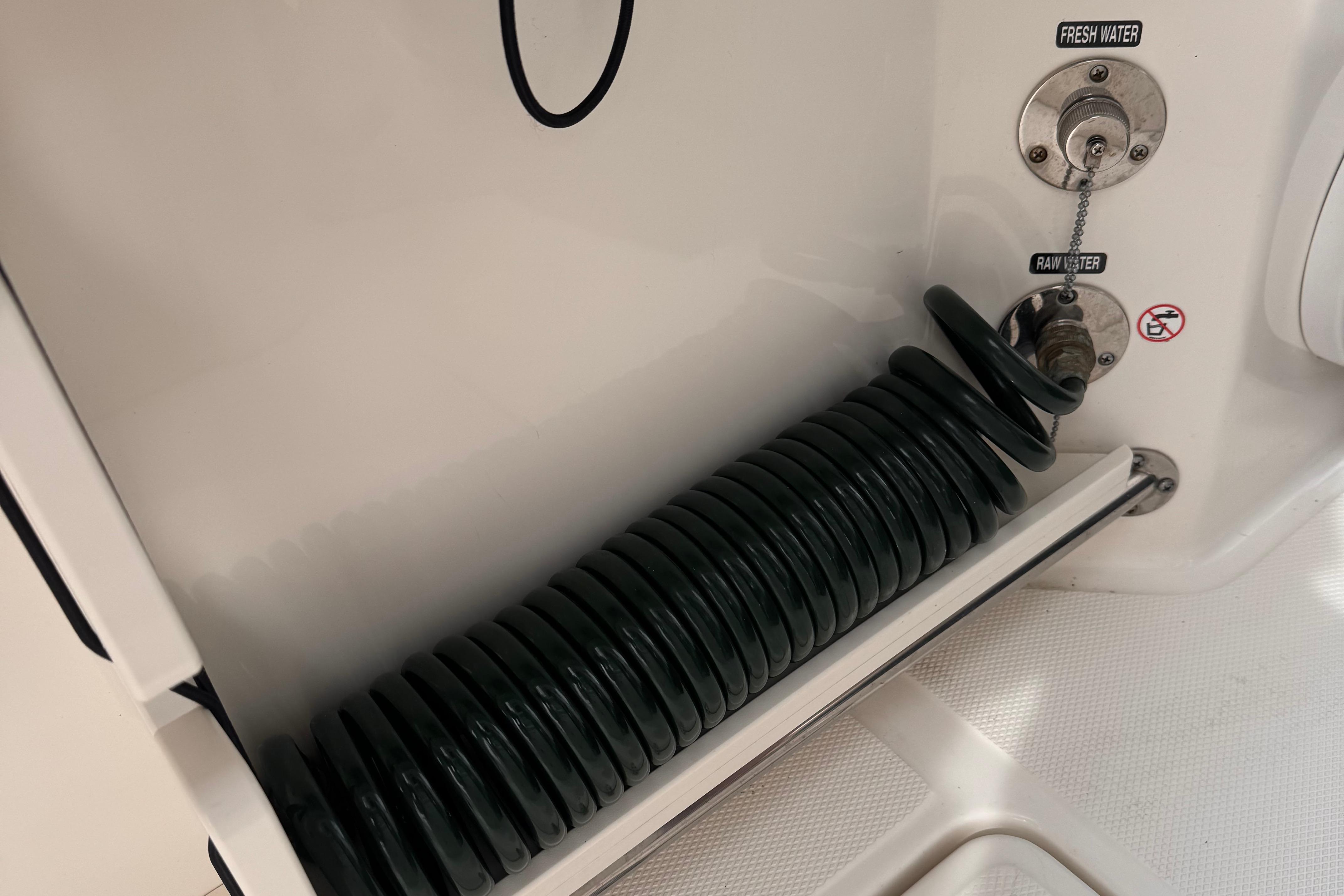 - Freshwater system with 26-gallon tank and transom shower