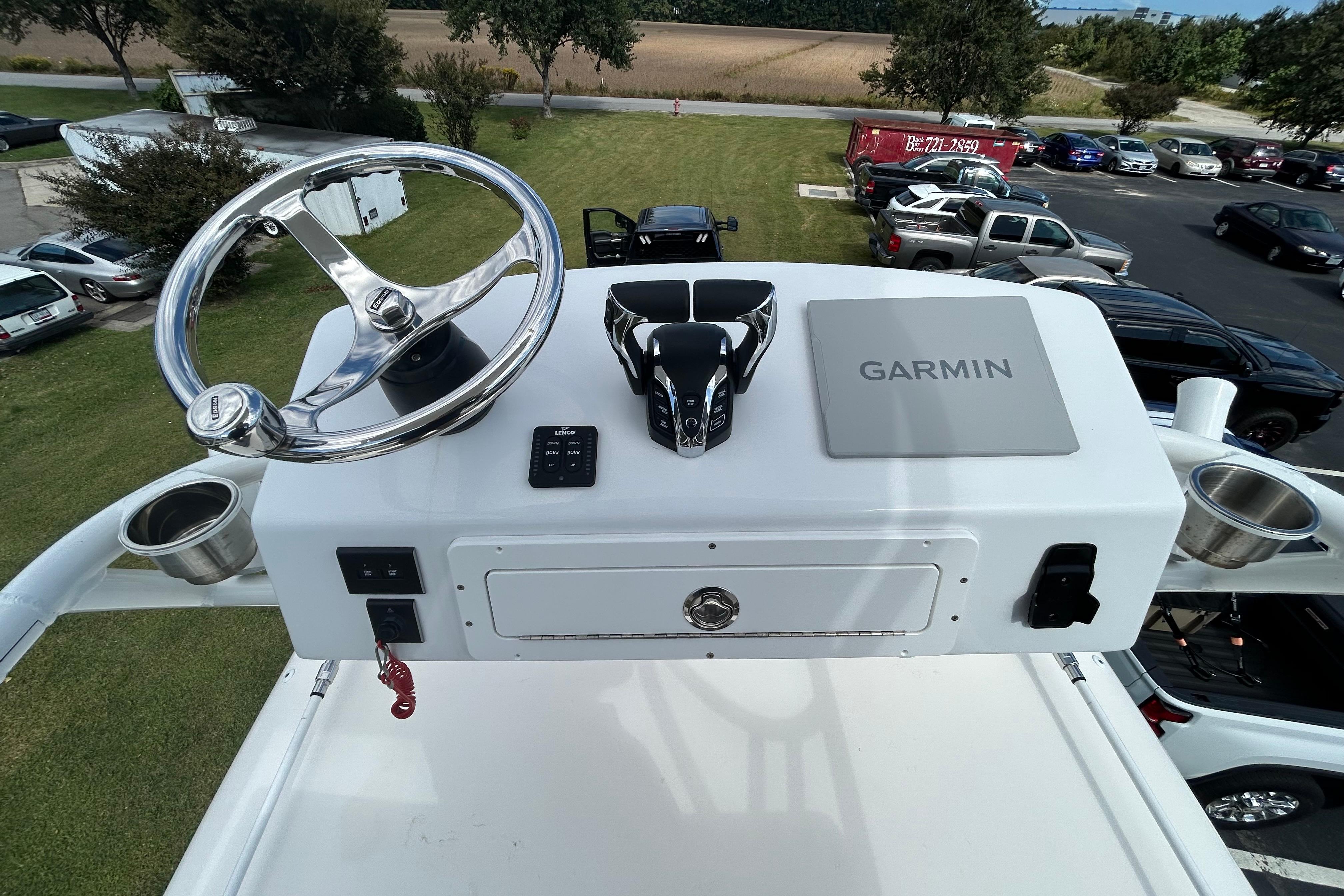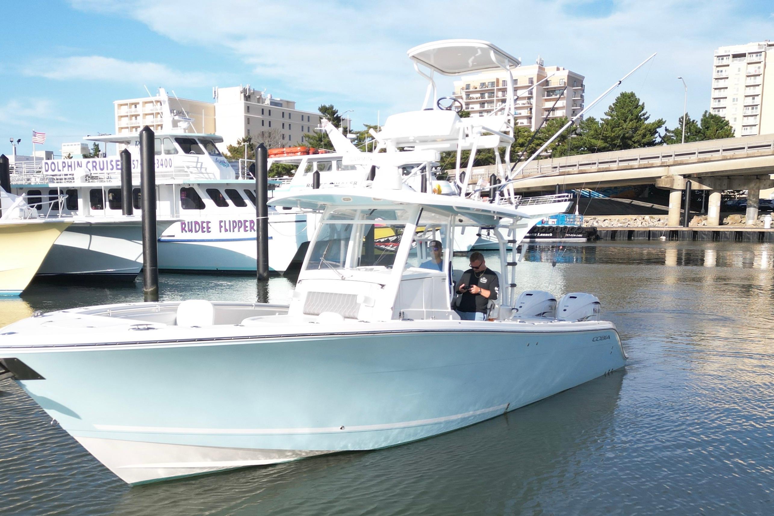 The 350 fishes hard and plays easy with a rare combination of high style and ultra-performance. A double-stepped hull makes getting to the fishing grounds fast and fuel efficient while elegant topside amenities bathe you in style and comfort. Tournament capable fishing features include massive cockpit, in-floor fish boxes, dual livewells, deluxe tackle storage, and 42-gallon bait prep station. With top-tier navigation, radar, sonar, and audio systems, all dialed in for serious offshore runs and weekend getaways alike.