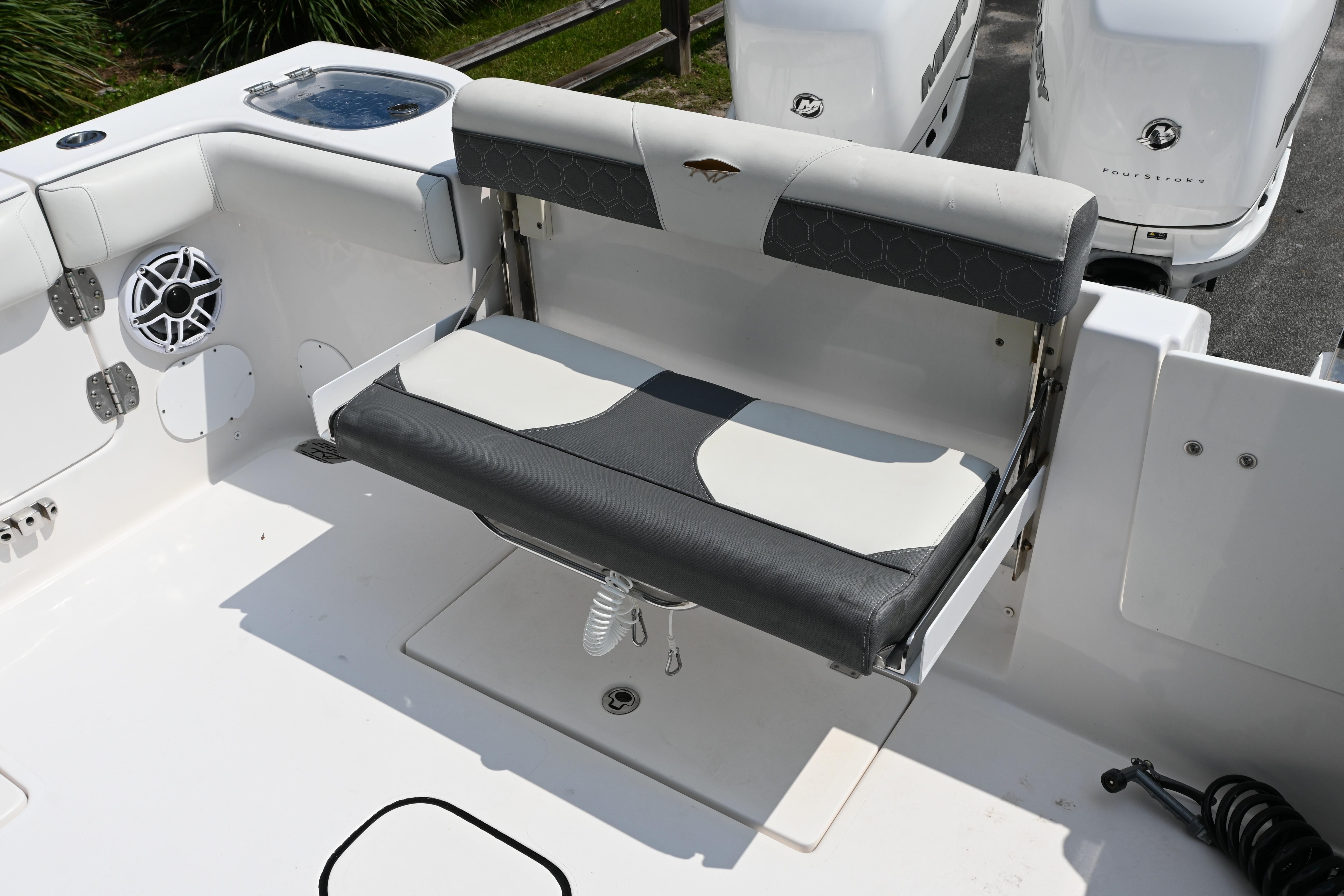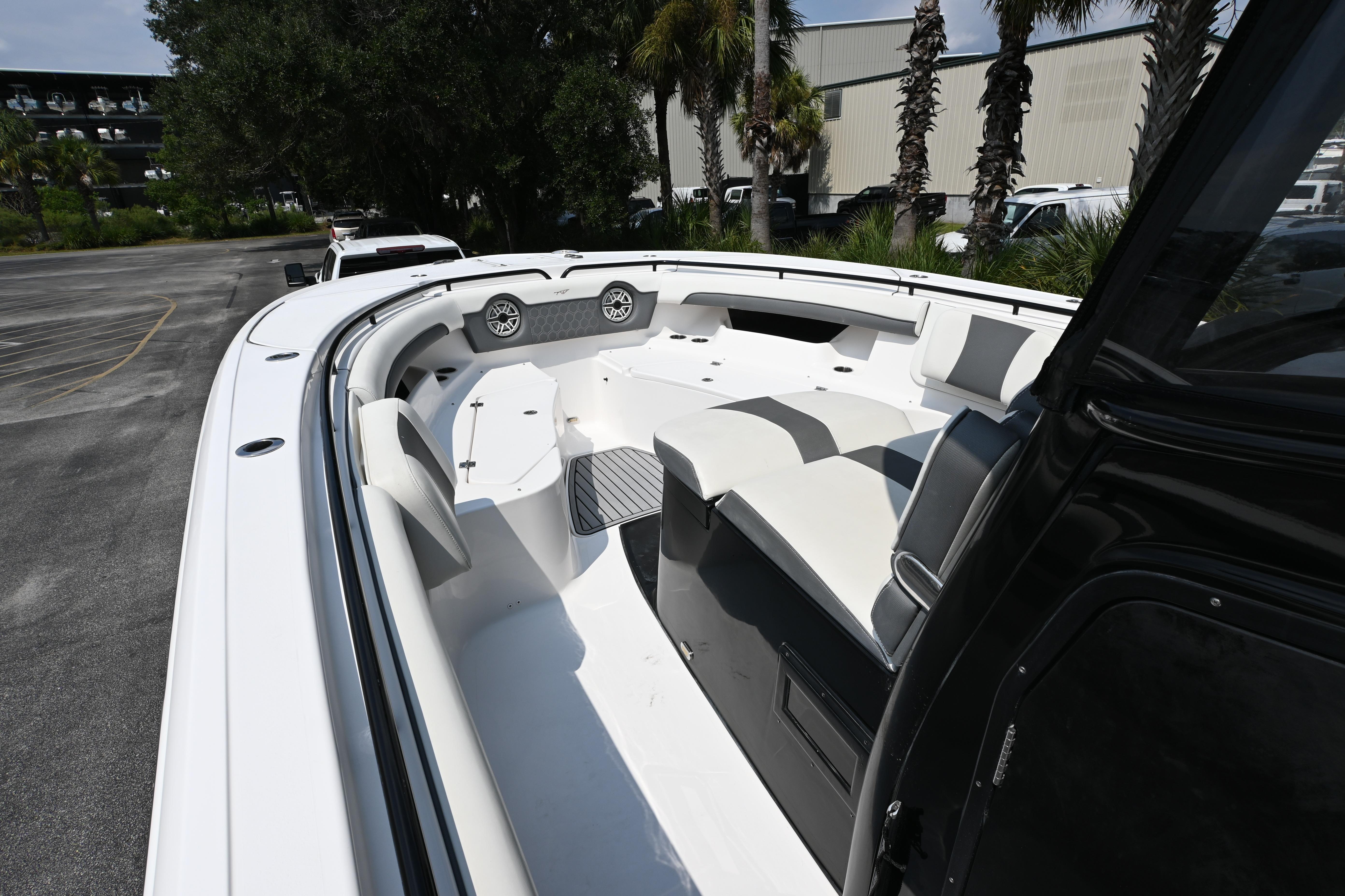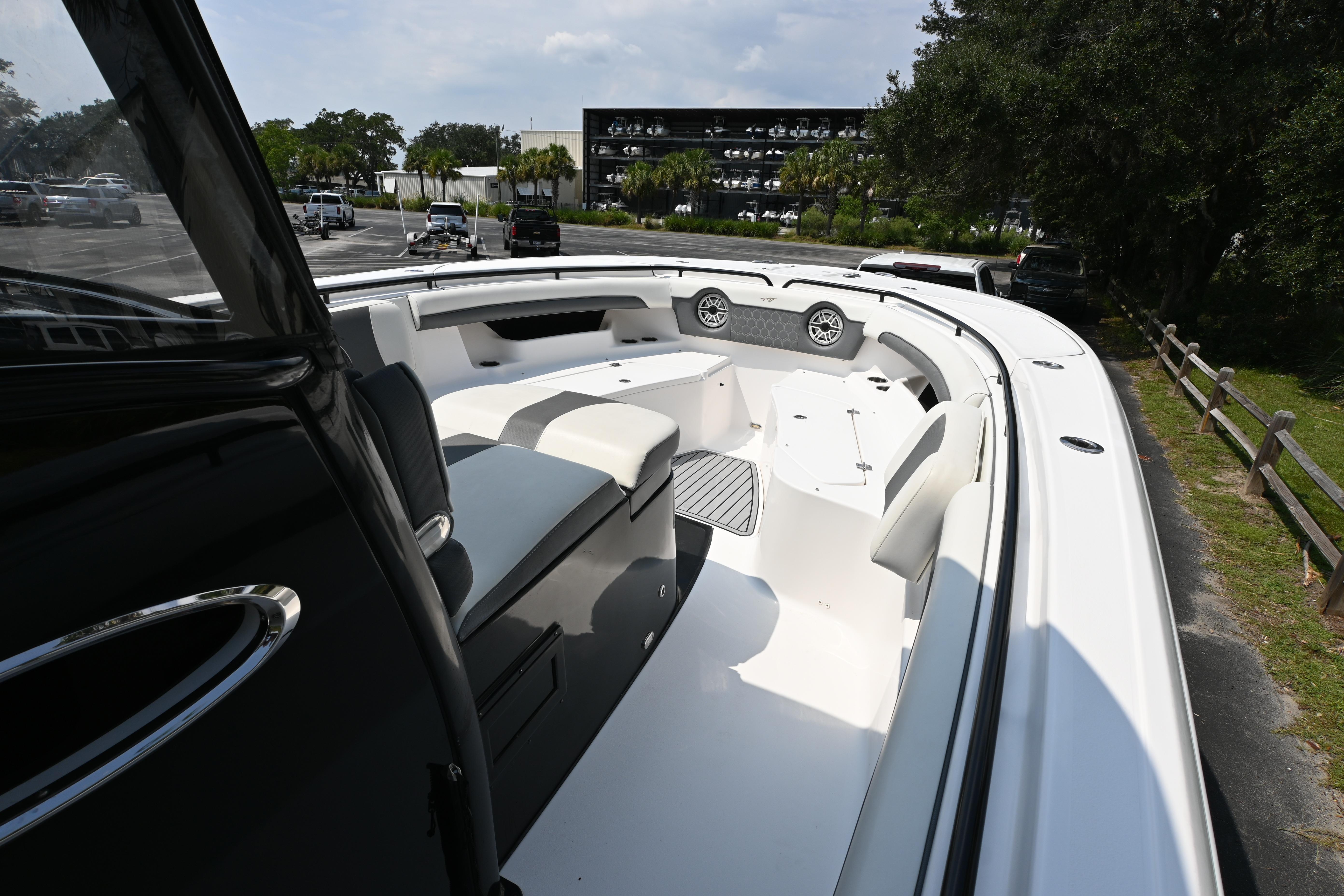 The 320 CC is filled with luxury from the yacht style helm station, backlit aluminum carbon fiber dash panel, wrap around bow seating with flip-out backrests, and so much more.