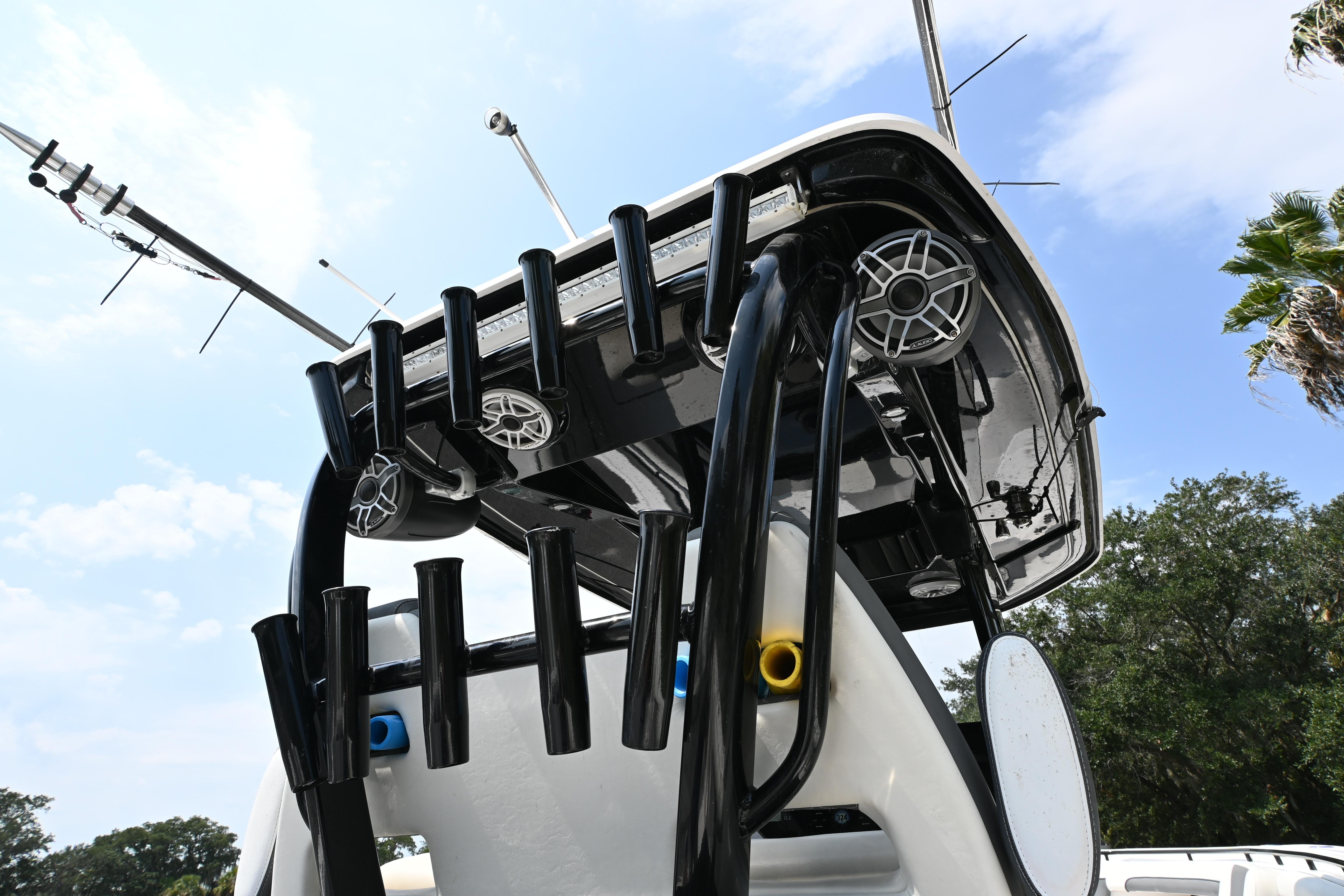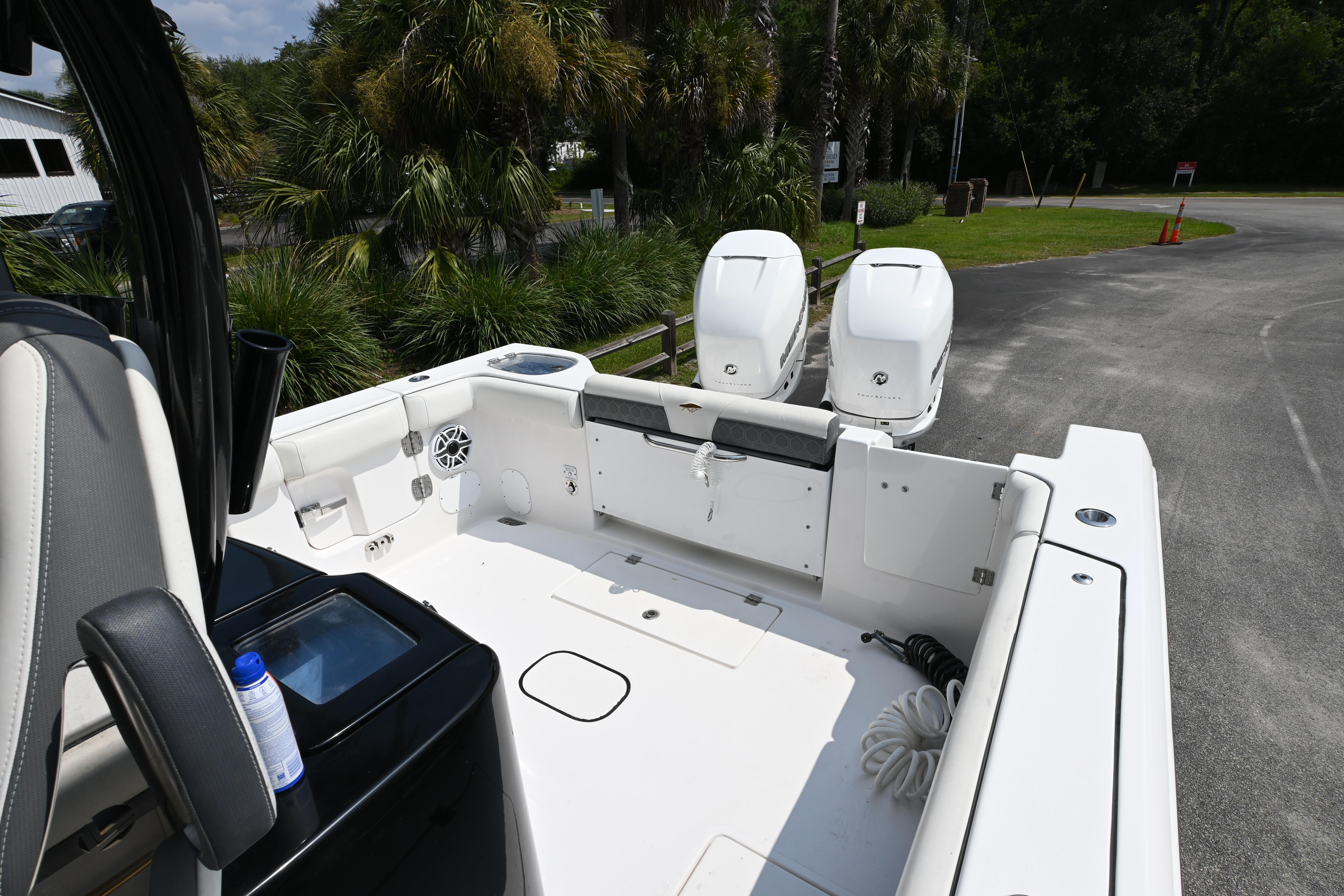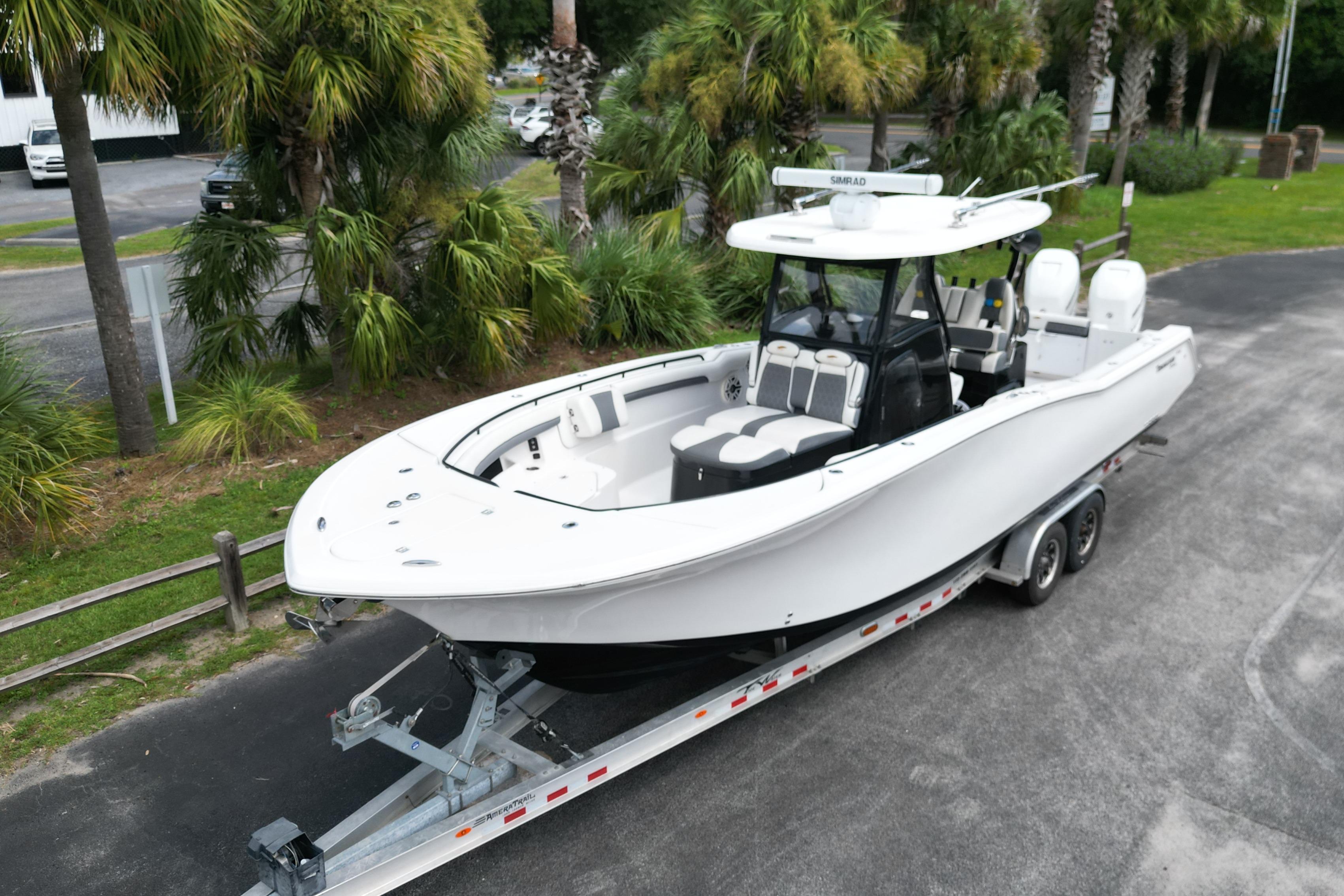 The 320 CC is filled with luxury from the yacht style helm station, backlit aluminum carbon fiber dash panel, wrap around bow seating with flip-out backrests, and so much more.