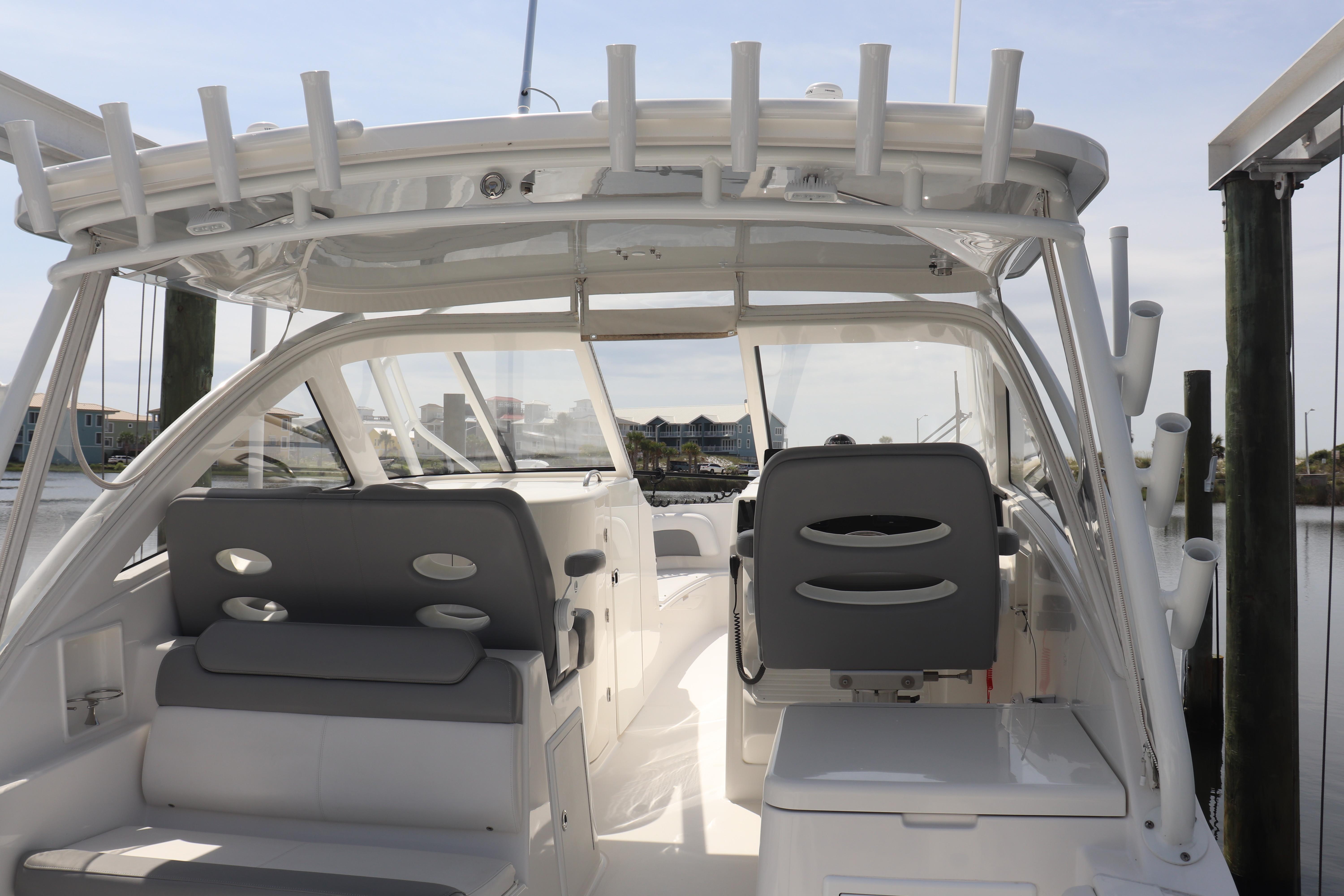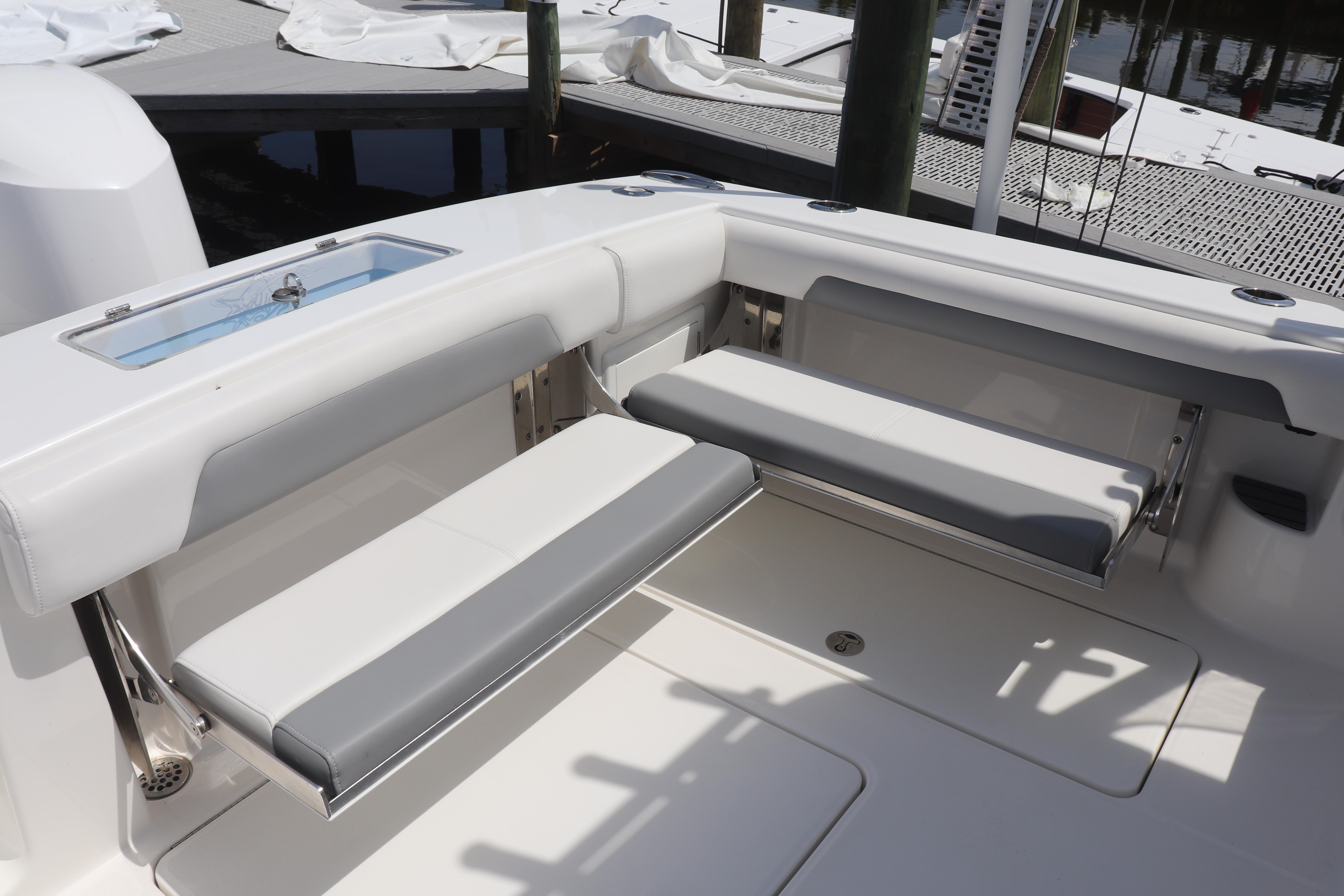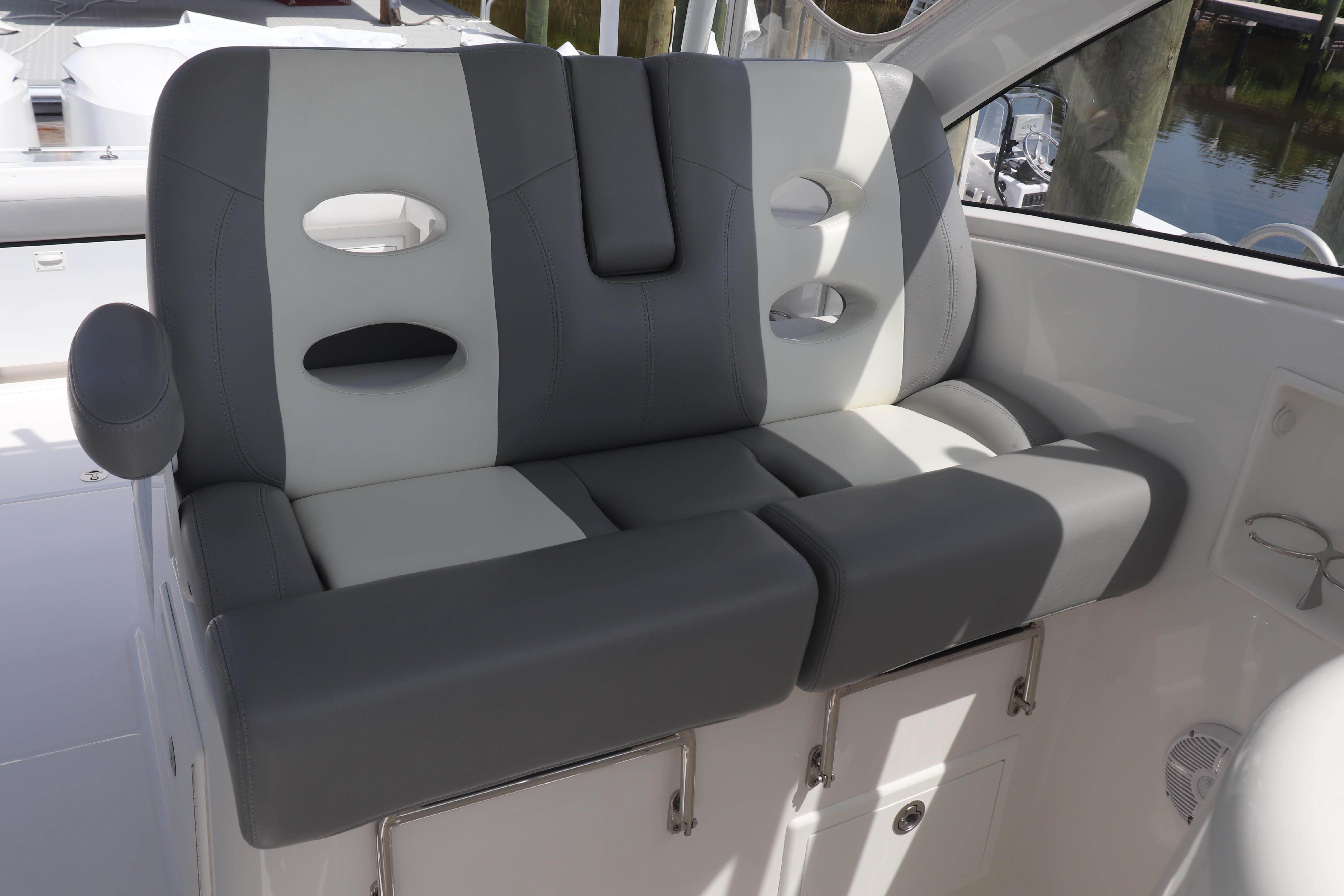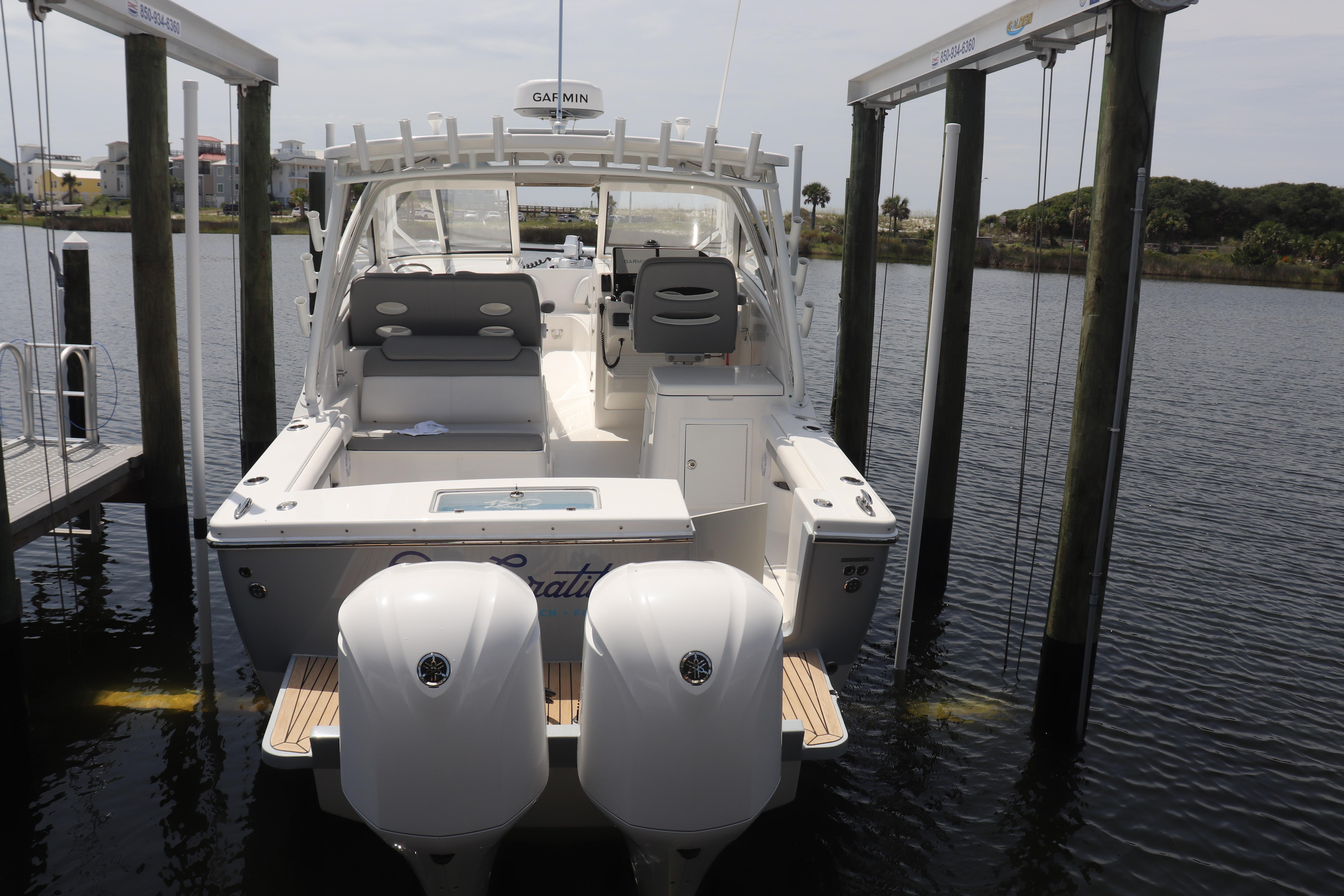 The 31DC features reliable and efficient Yamaha outboard power with twin 300 horsepower. The bow, helm, and cockpit seating will offer plenty of comfortable space for family and friends. Her cockpit is uncluttered and well laid out for multiple purposes. The standard boat has everything you need for a day offshore, and with the addition of the optional cockpit galley, she is very capable of onboard dinner cruises as well. The 31 also features our “A” Berth, an innovative full beam berth, making her the first dual console in the class truly capable of comfortable overnighting.