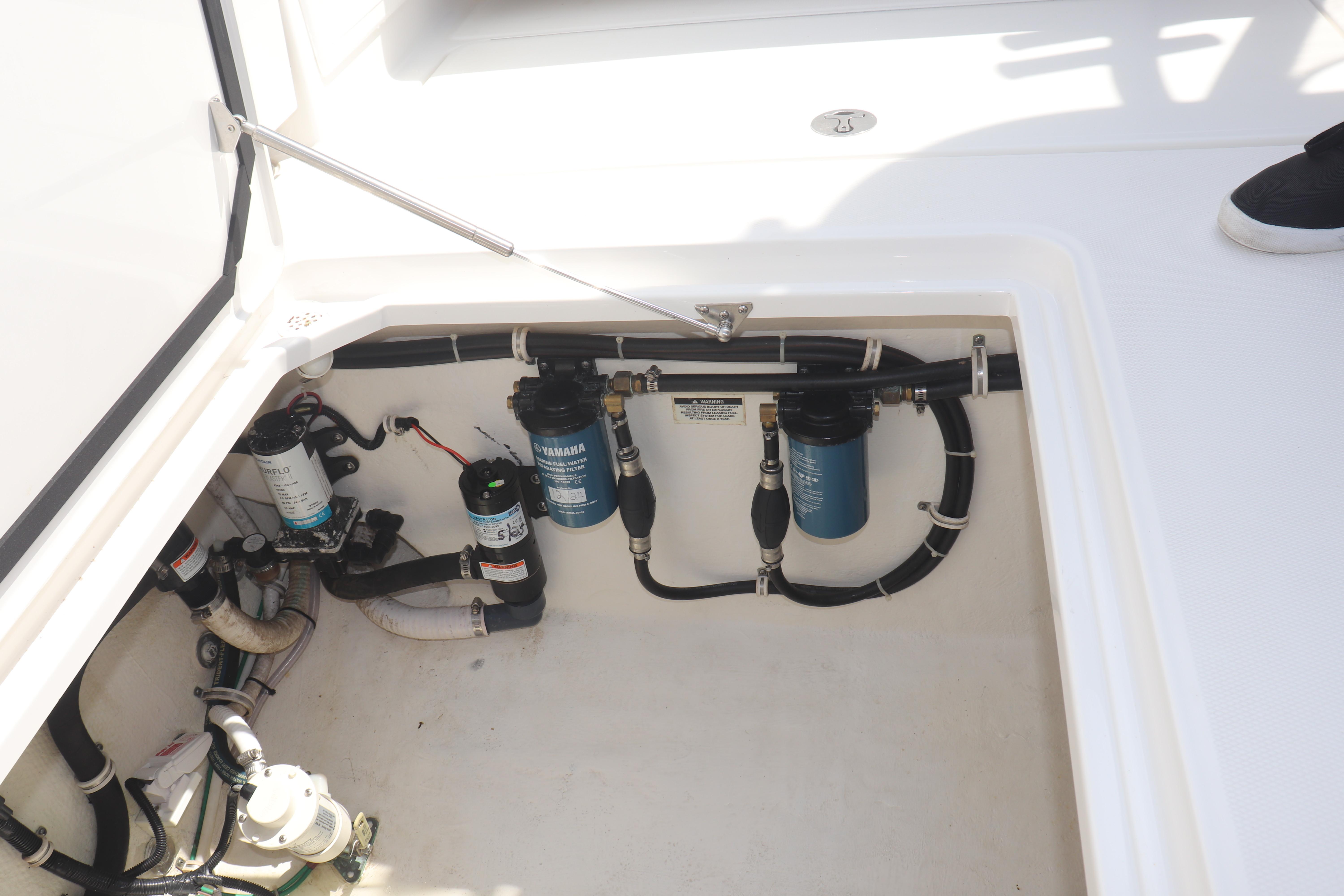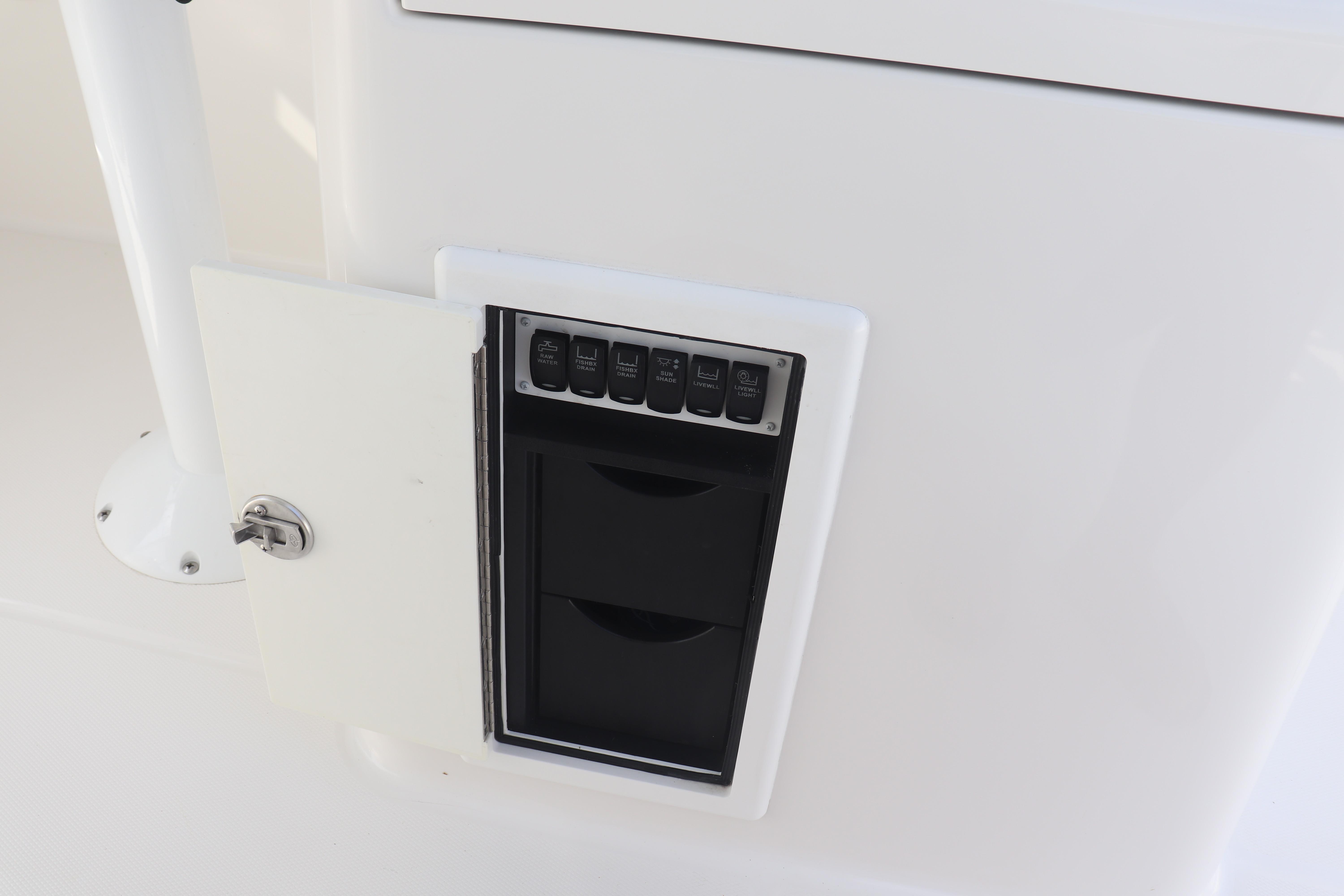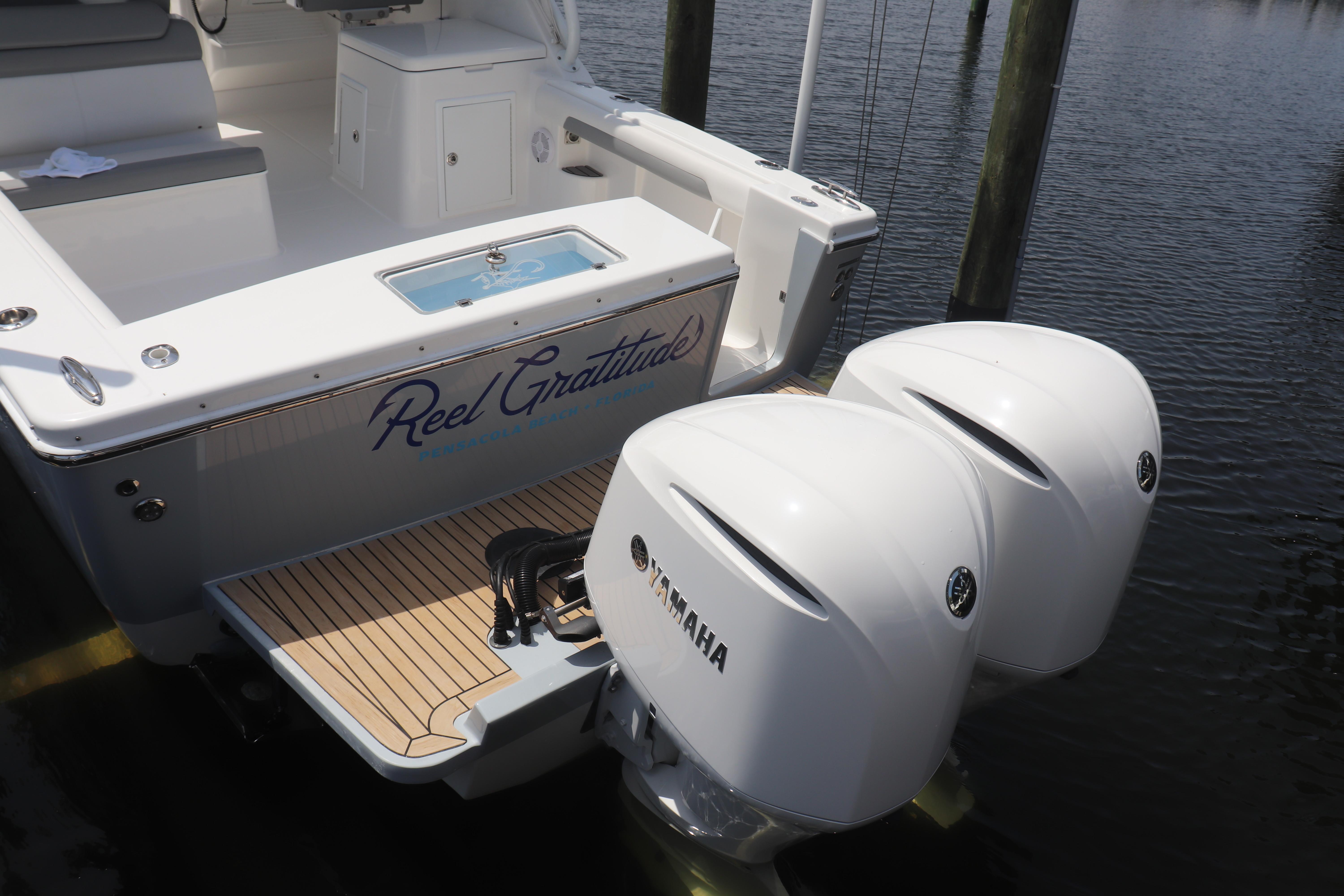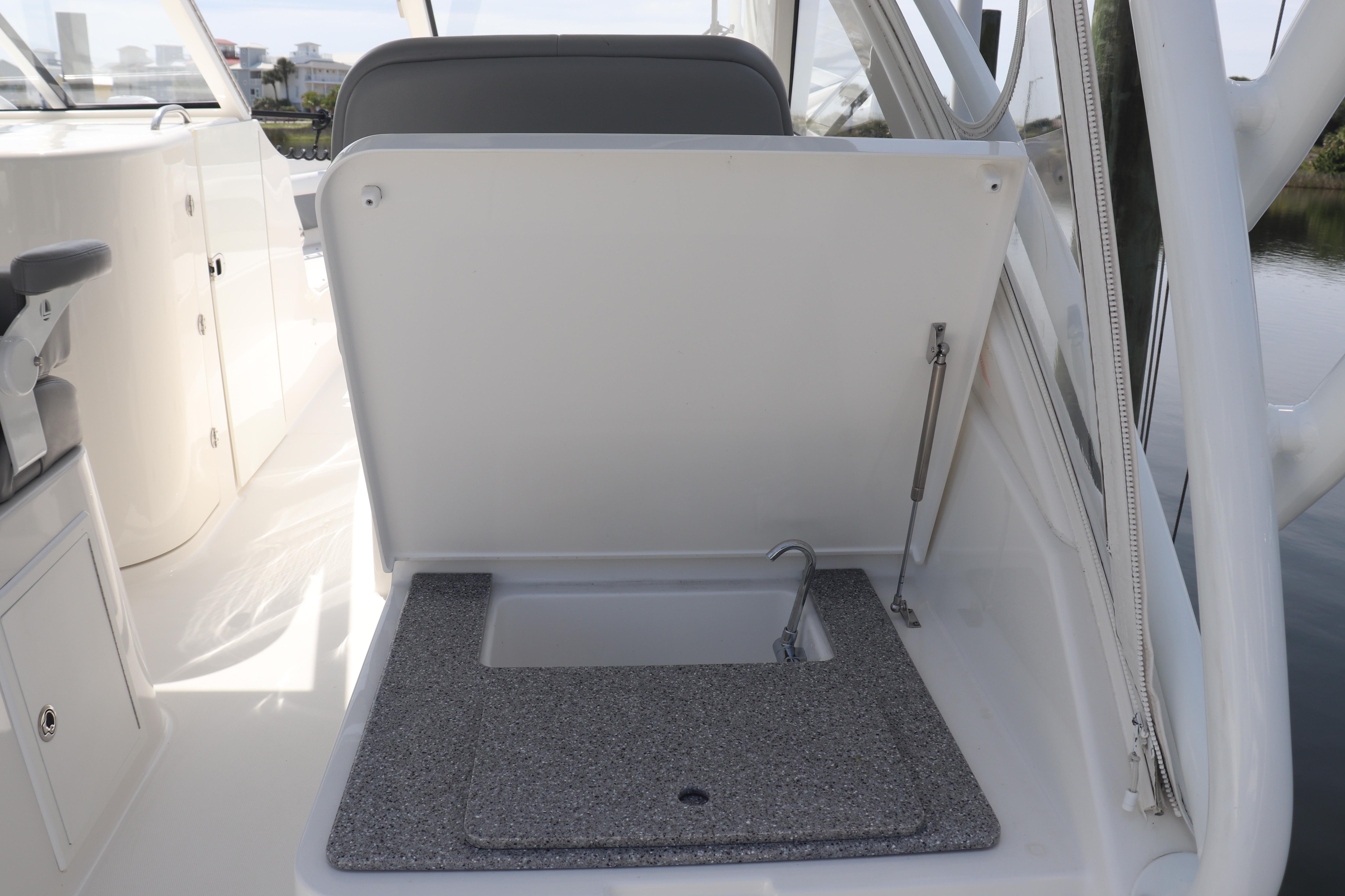 The 31DC features reliable and efficient Yamaha outboard power with twin 300 horsepower. The bow, helm, and cockpit seating will offer plenty of comfortable space for family and friends. Her cockpit is uncluttered and well laid out for multiple purposes. The standard boat has everything you need for a day offshore, and with the addition of the optional cockpit galley, she is very capable of onboard dinner cruises as well. The 31 also features our “A” Berth, an innovative full beam berth, making her the first dual console in the class truly capable of comfortable overnighting.