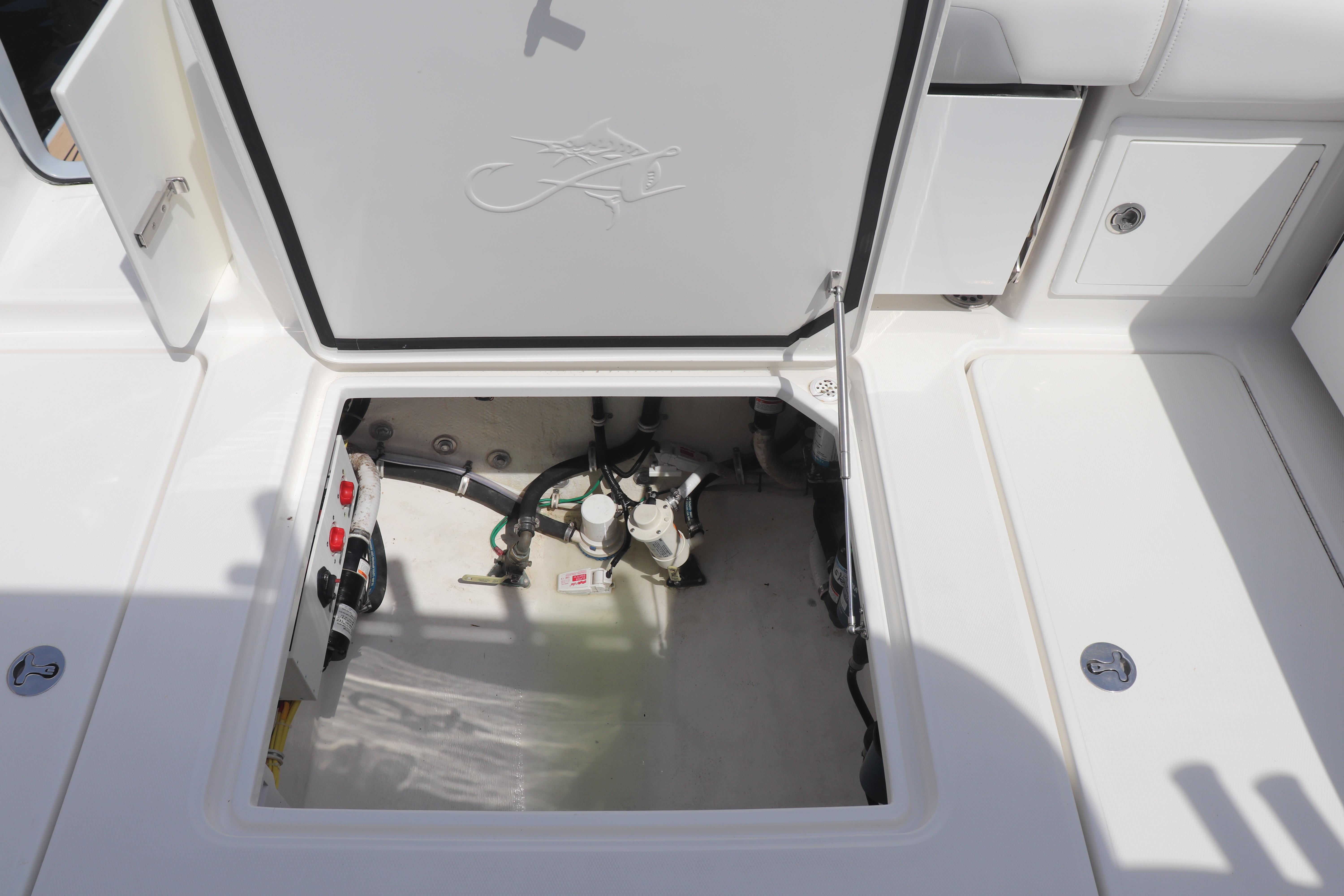 This Albemarle 31 DC has been responsibly maintained with quarterly detailing by the best detail firm in the area, if not the southeast, Revival Detail. This is a top of the line, customized Albermarle that is ready to provide its new owners with an exceptional vessel for fishing and entertaining. Albemarle is known for its big, offshore capable fishing yachts, and this boat was built with the same “big boat” features, such as radiused corners, fully finished hatch covers and counter tops, and full height dash with fully molded windshield frames and high quality, Lebroc seating, all of which are typical of the larger Albemarles. This boat has a big boat feel and handles like it offshore with the 24 degree deadrise. The newly installed, lithium powered Minn Kota self deploying Instinct model trolling motor holds the boat exceptionally well. This is absolutely a turn-key boat, ready for fishing and family pleasure. Custom Covers are also included which are new, including a windshield mask, bow seating cover and aft cockpit cover. Underwater lights and additional transducer were also added recently.