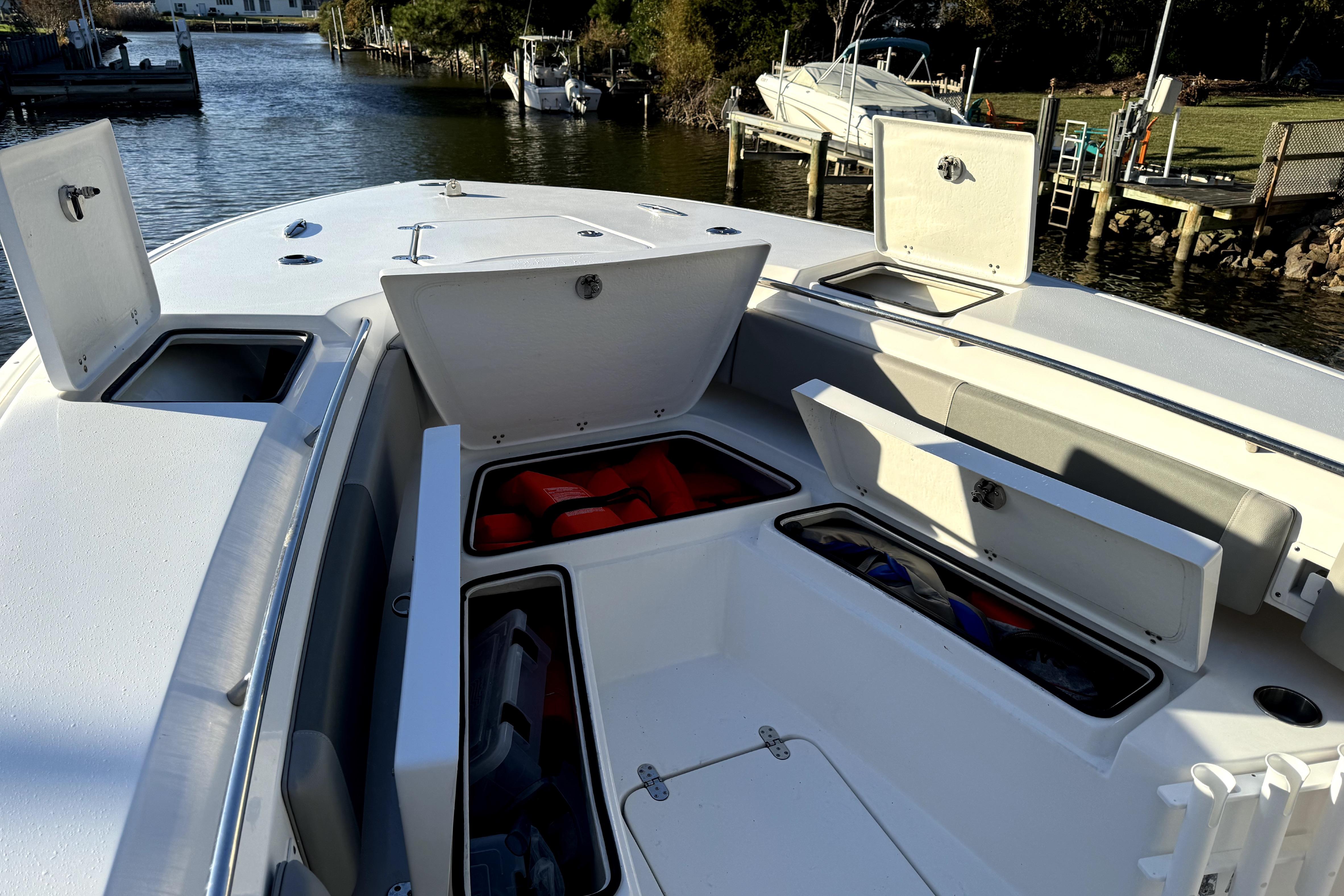 7’ & 740qt fwd in deck fish box – bladder pump drains direct out of boat (not through bilge)