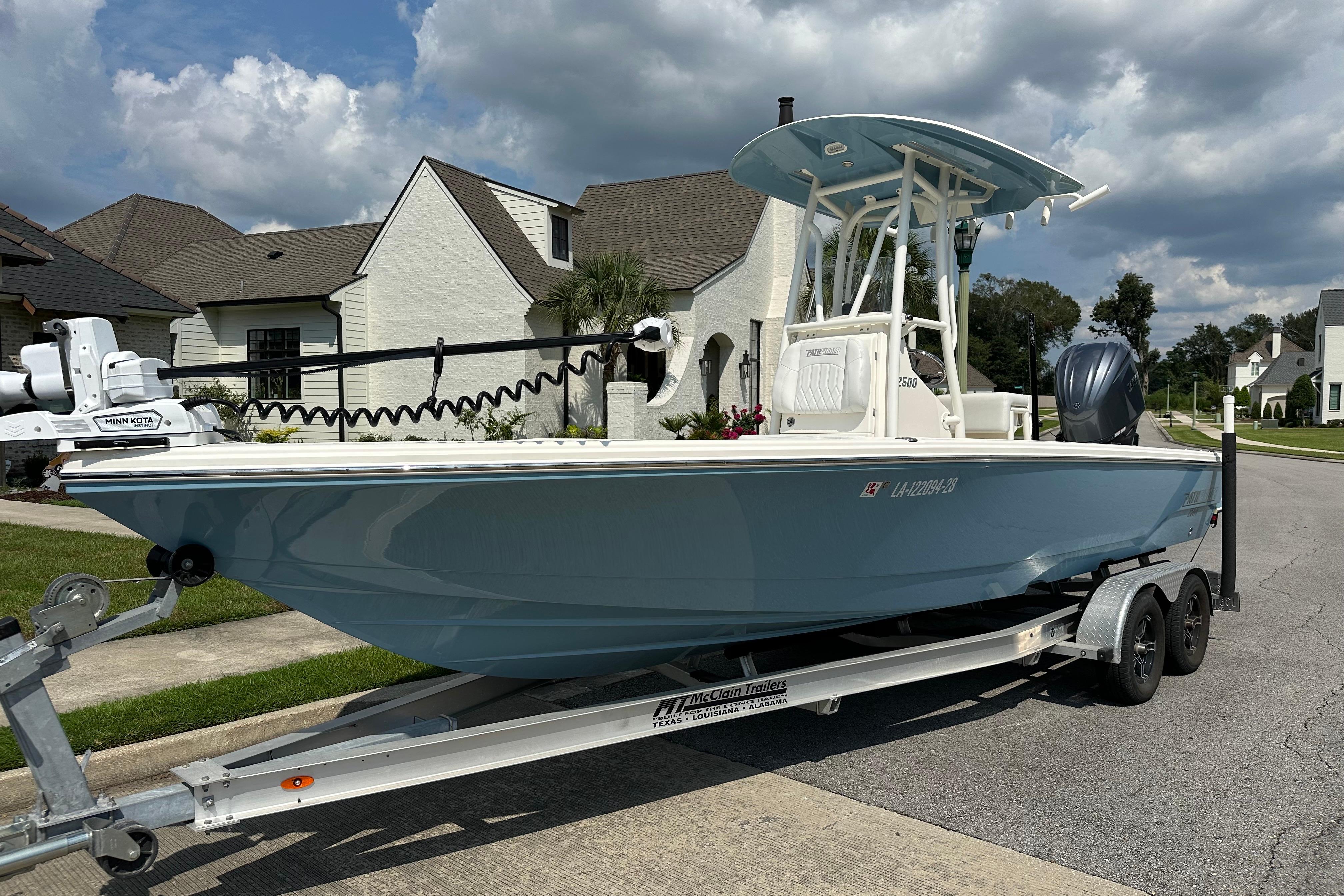 Step into the 2500 Hybrid and you’ll instantly feel the difference of the most spacious bay boat under 25 feet there is. No more feeling crowded or having to move people out of the way to get around. The unique layout also allows for more storage space than you’ll ever need and a 45 gallon insulated fishbox. Plus, with more freeboard height, a notched aft bulkhead, and added cockpit space aft, you can still comfortably fish from the security of the cockpit in big water conditions. And because the 2500 Hybrid is vacuum infused, there’s no 25 foot bay boat with a better strength to weight ratio. That’s why with all its features and capabilities it still only drafts a true 13.5 inches, runs upwards of 60 mph, and jumps on plane in water too shallow for some flats boats.