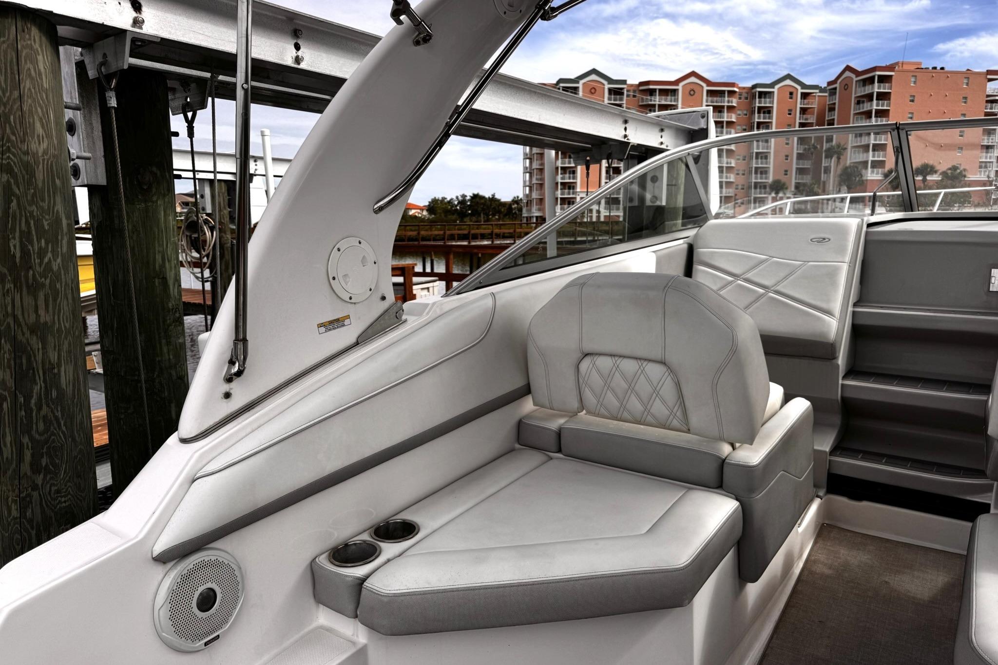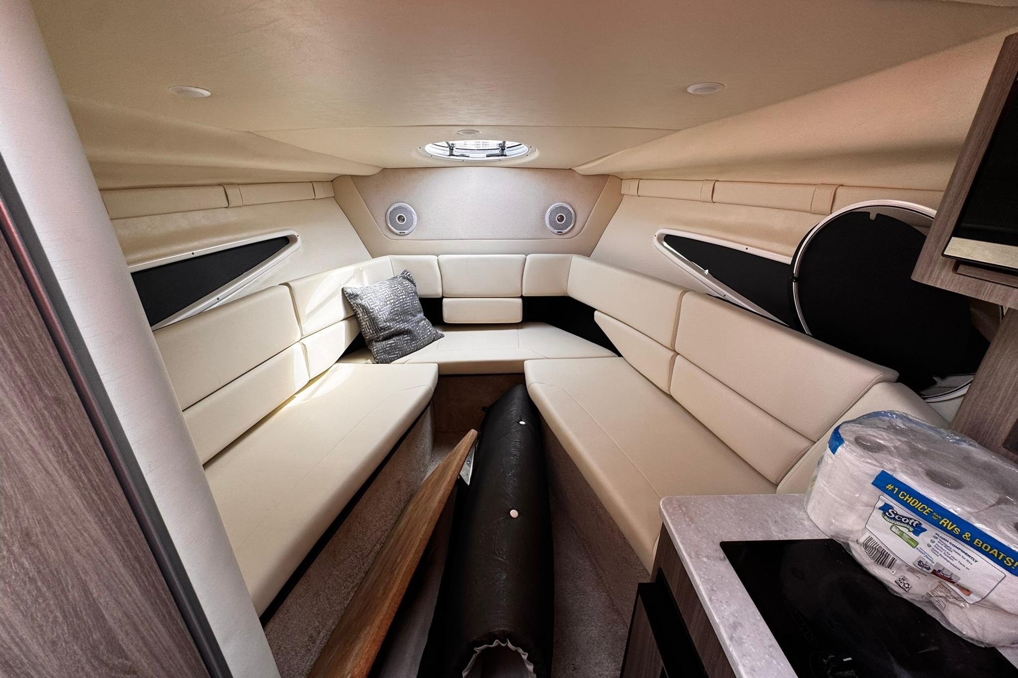 Lay down the backrest, get comfortable and soak in the rays on the large multi-position sunlounge. You can comfortably seat five in the face-to-face seating and enjoy spending time with those that love being on the water as much as you do. Regal's uniquely shaped salon provides the most-in-class space with an expansive seating layout and berth for overnight stays. The cabin's galley features an electric stove and refrigerator, a stainless steel sink and plenty of storage for everything you need to entertain your guests.