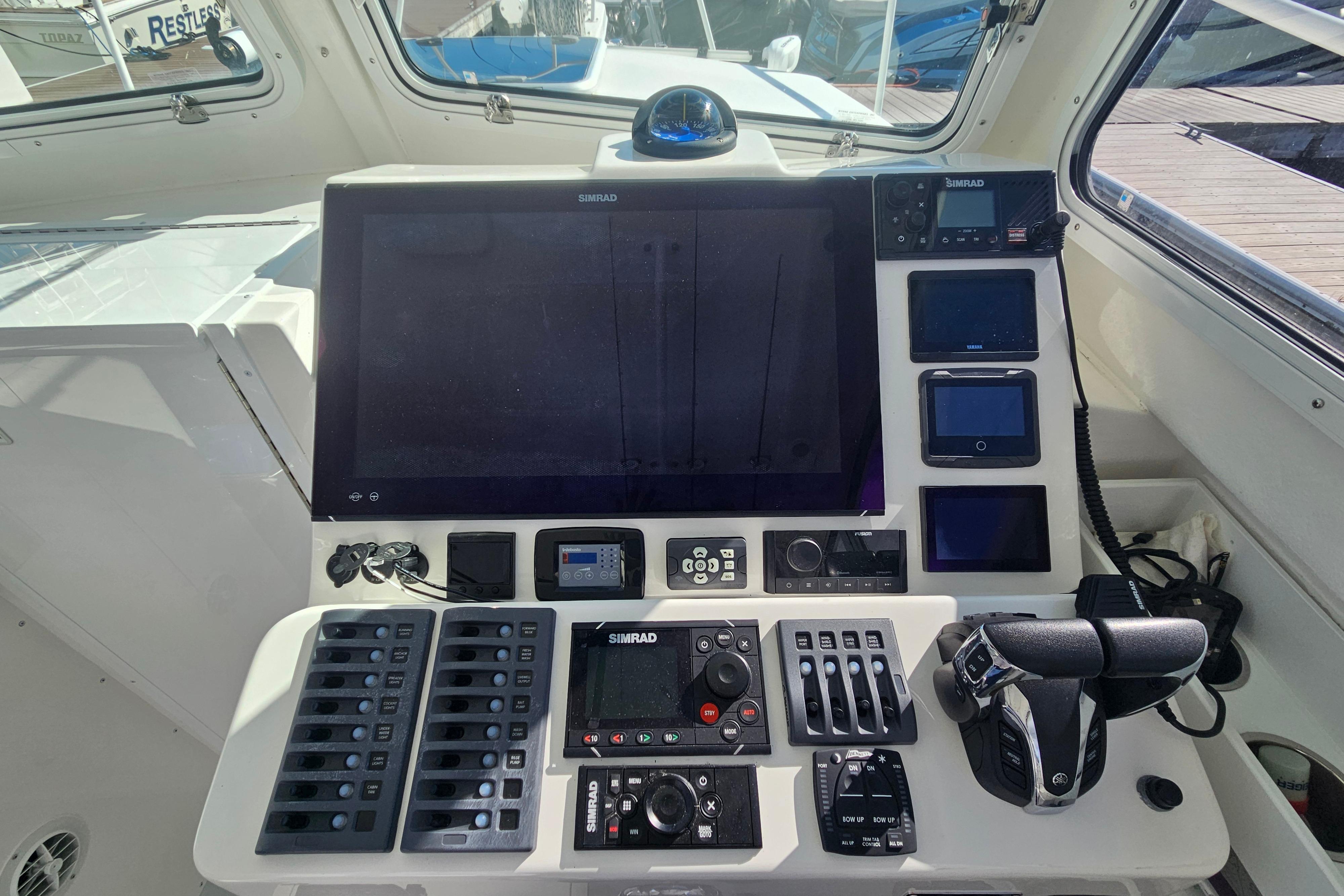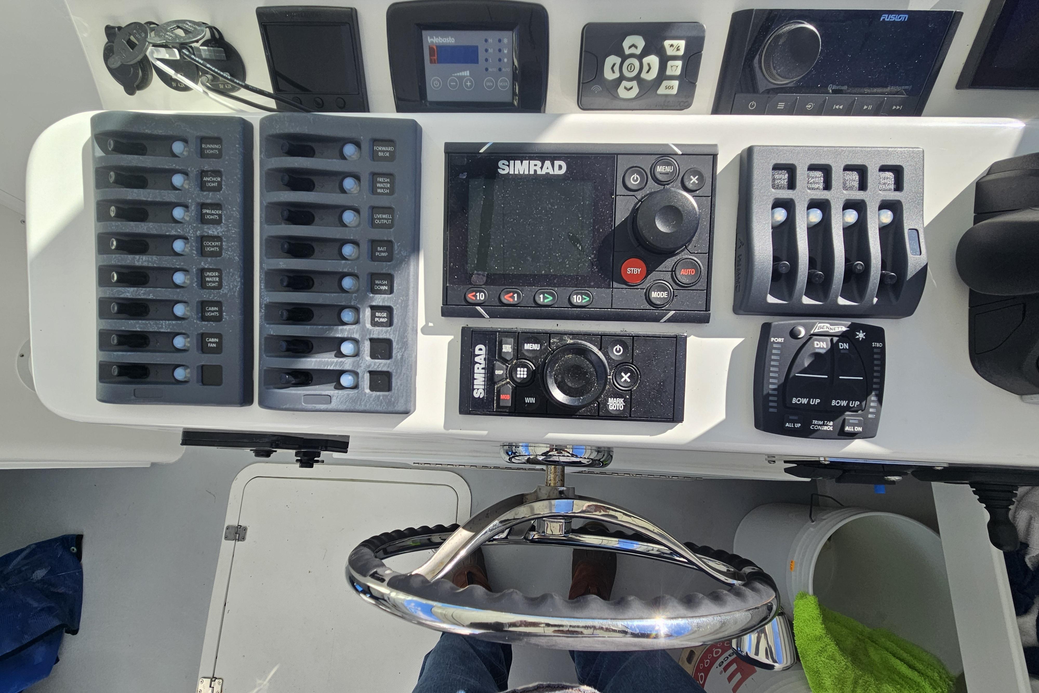 Undoubtedly the best equipped 31' Steiger built to date. Powered by highly regarded Yamaha 300's with only 288 hrs. Notable features include a SEAKEEPER, Minn Kota Terrova trolling motor, custom tackle center with cutting board, multiple drawers, numerous rod holders, top-of-the-line Simrad system, and a liferaft. Attractive blue hull, open rear bulkhead with canvas dropcurtains, upholstered helm and companion seating, coaming bolsters, collapsible stern seat, swim ladder, and lots of storage throughout. Replacement cost over 475K. Owner spared no expense and installed the best of everything. Look at this one before buying new. Winter storage 2025-26 included in sale.