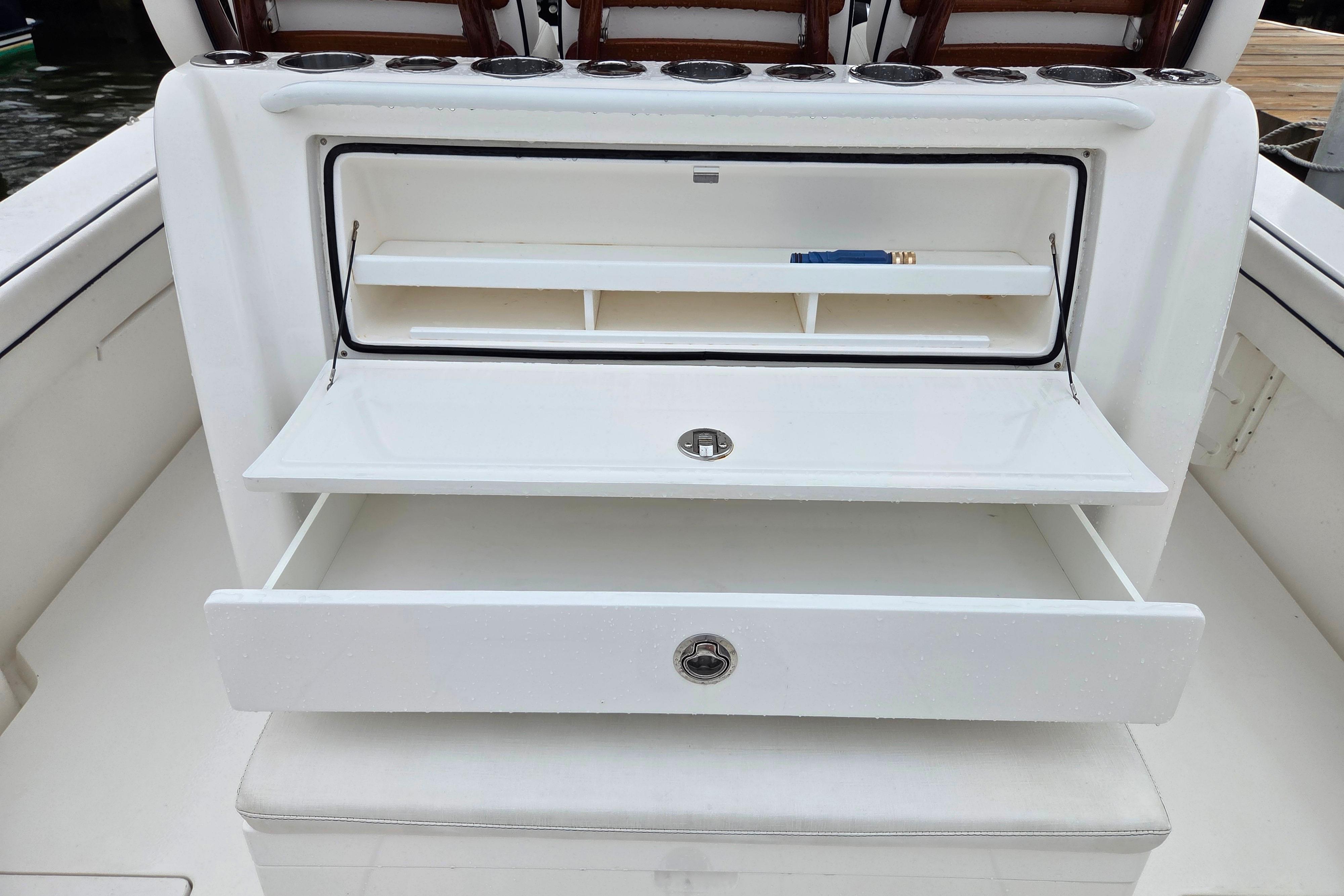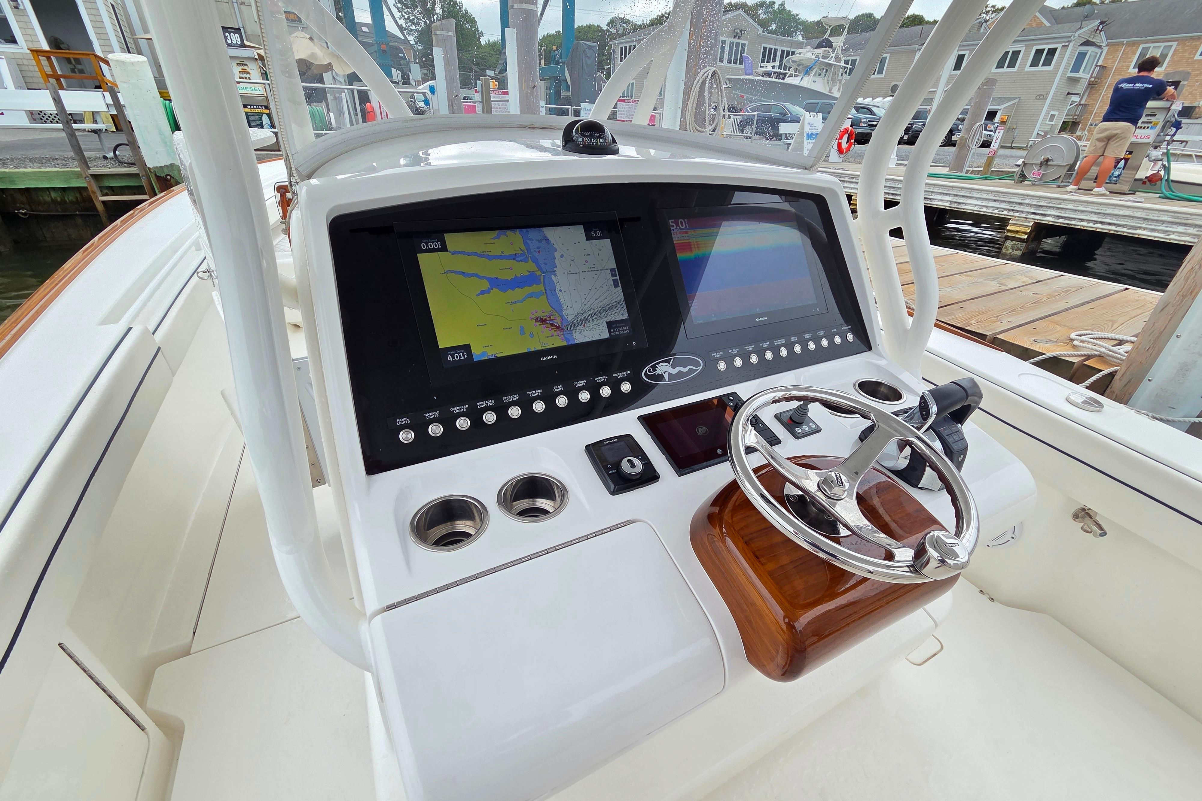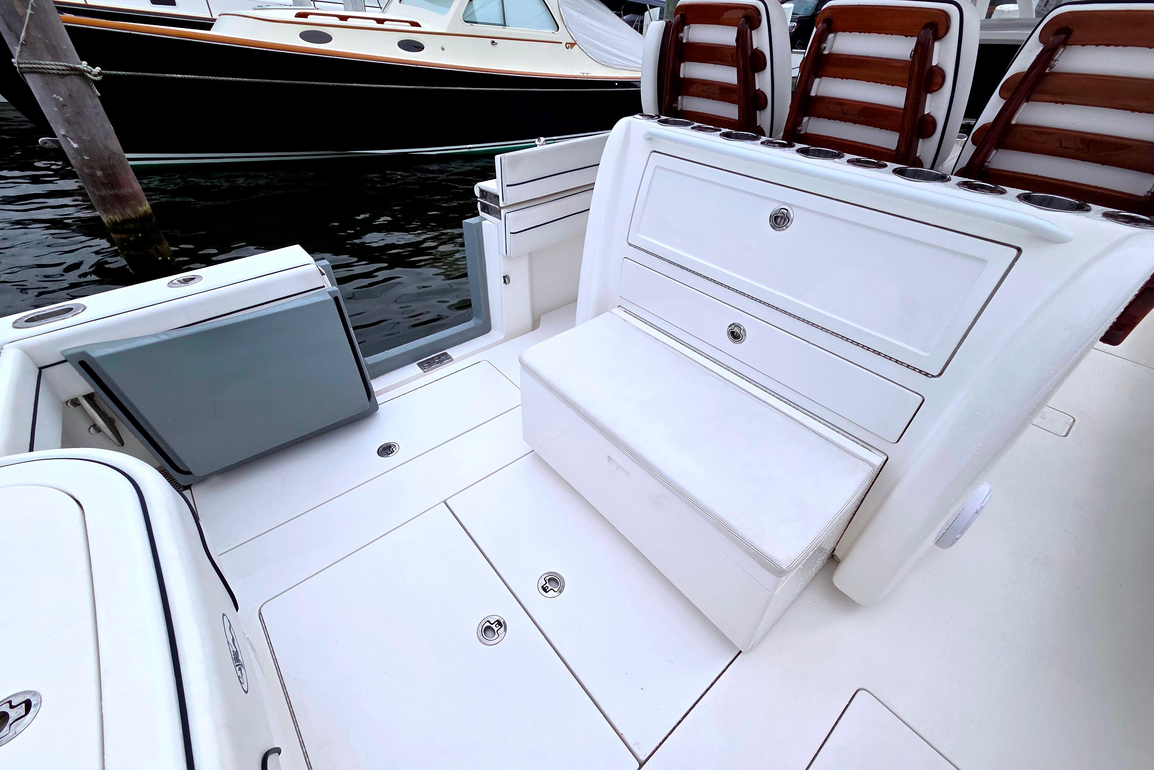 - USB Charging Outlets & Power Outlet in ConsoleRelease Teak Helm Seats, Armrests, Electric SlidesFwd