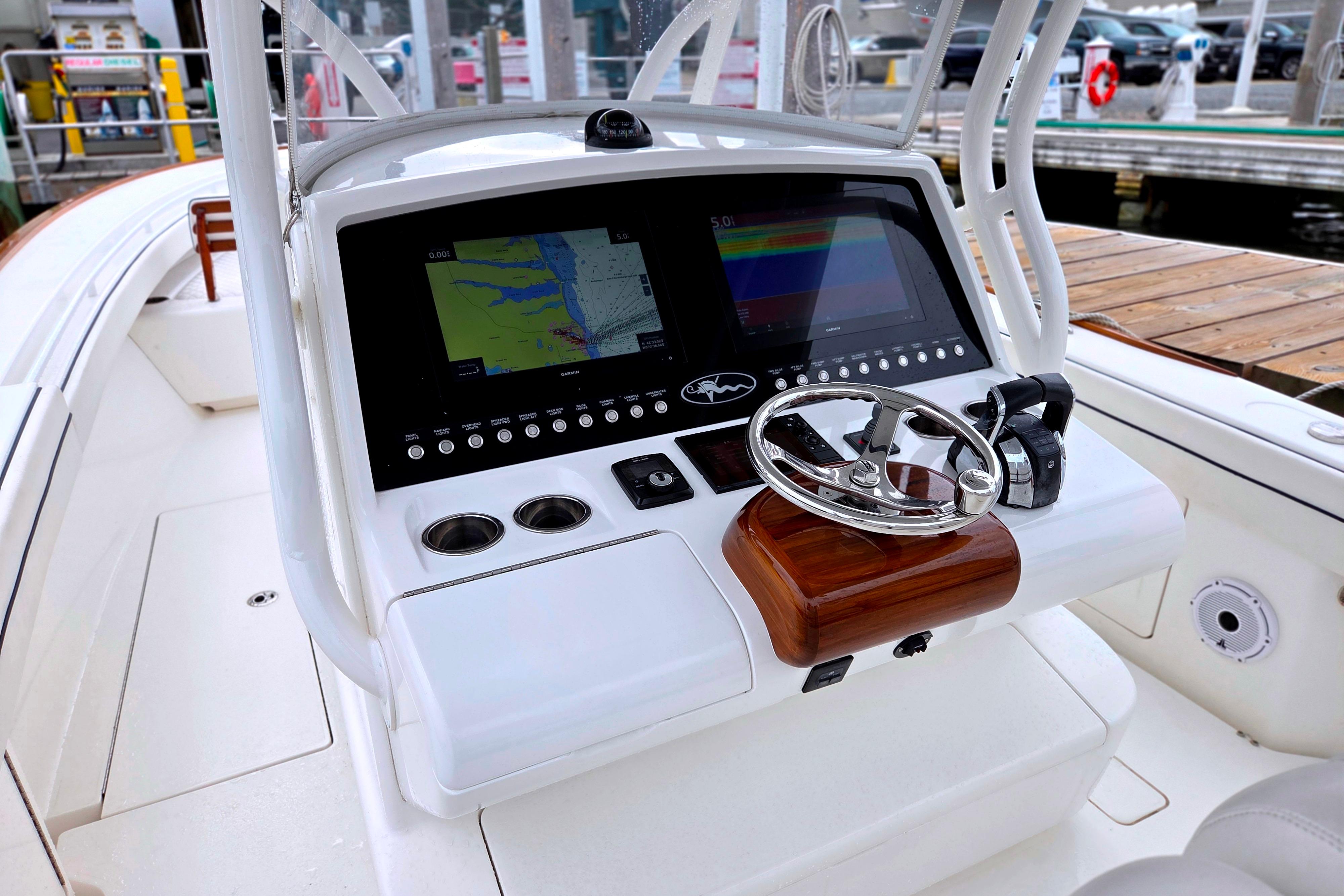 The patented Stepped V Ventilated Tunnel Hull design delivers the softest, driest and most efficient ride of any center console in this size range. The V-33 possesses big boat technology with meticulous fit, finish and workmanship.