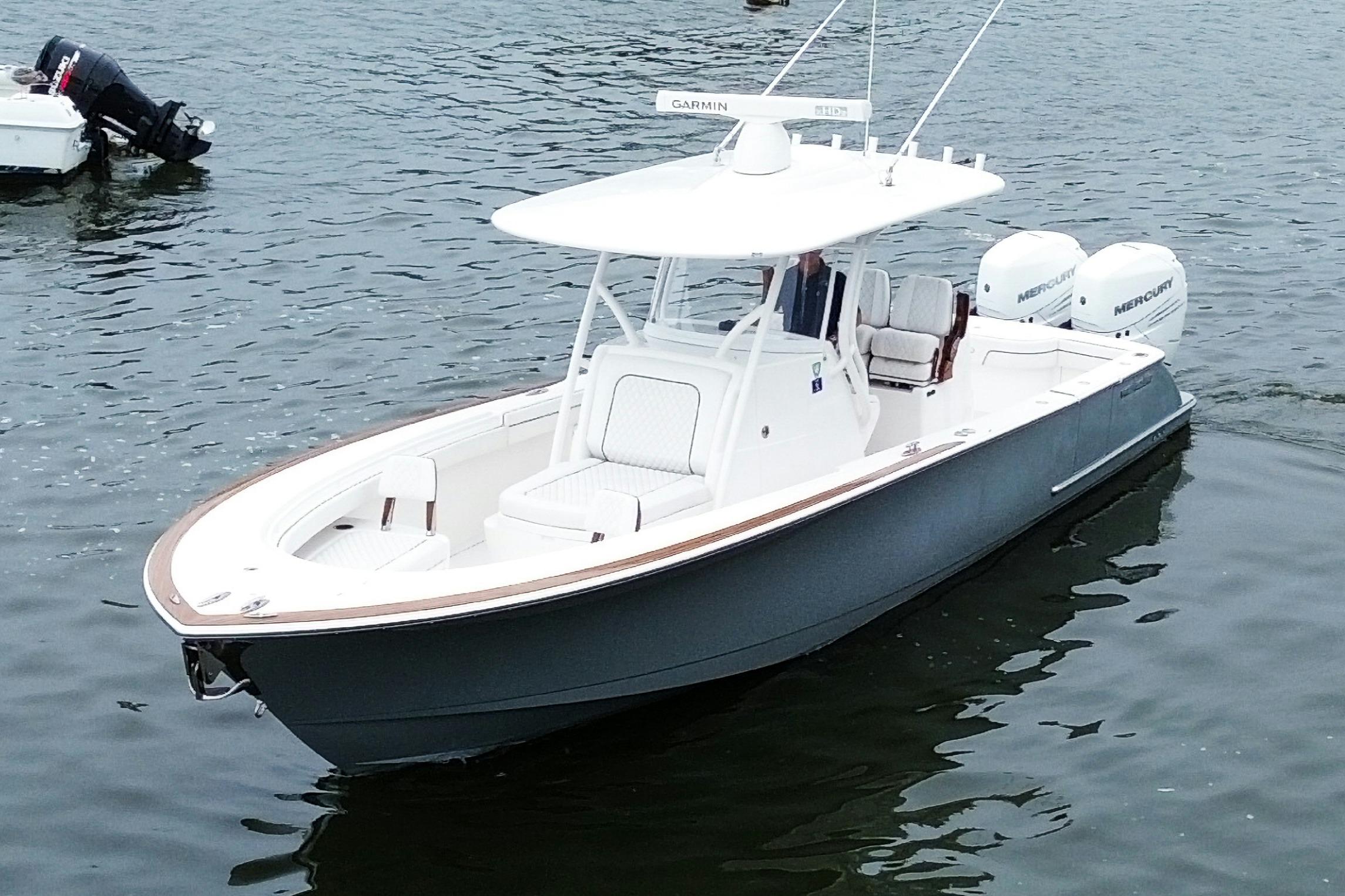 2021- 33‘ Valhalla V-33 Center Console: Powered w/ Twin 400hp Mercury's w/ ___ Hours , High performance Valhalla center console that blends power, performance and style. Perfect for serious anglers & family cruising alike. With numerous upgrades and low hours. A very special offering! Notable upgraded features include twin 400hp Mercury Verados that provide an easy cruise speed of 40mph. Optional Bow Thruster & Automatic Engine Flush System. Additional highlights include Kinsgston Gray Hull Color with Underside of the Hardtop to Match; Fiberglass Molded Hardtop w/ (6) Rod Rocket Launcher; Gemlux Outriggers; Release Marine Teak Helm Chairs (3); Faux Teak Helm Pod, Faux Teak Toe Rail; Upgraded Upholstery w/ Diamond Bentley Stitching; Thru Stem Anchor Windlass System; Forward Lounge Seating w/ Dry Storage, Integrated Flush Folding Transom Stern Seats (2); Port Side Dive Door; Underwater Transom Lights (4); Enclosed Console Marine Head w/ Fresh Water Toilet & Sink; Garmin Touch Screen Electronics; Entertainment Package plus much more !!