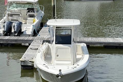 2022 Edgewater 230CC with a Yamaha F300 with DES Steering. Only 94 hours. Gray Hull with White Powdercoat Package. This boat has black anti-fouling bottom paint and does not include a trailer.