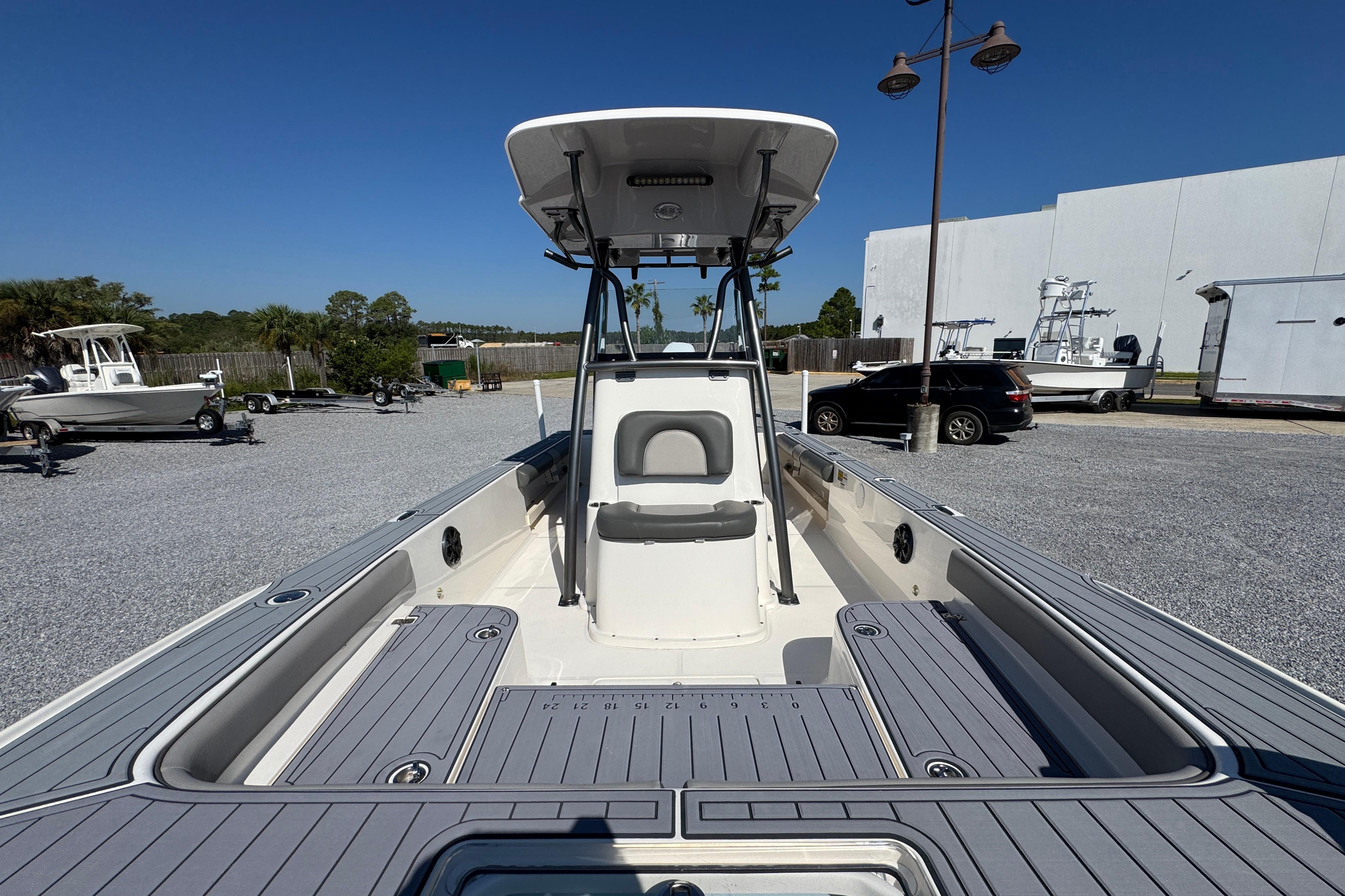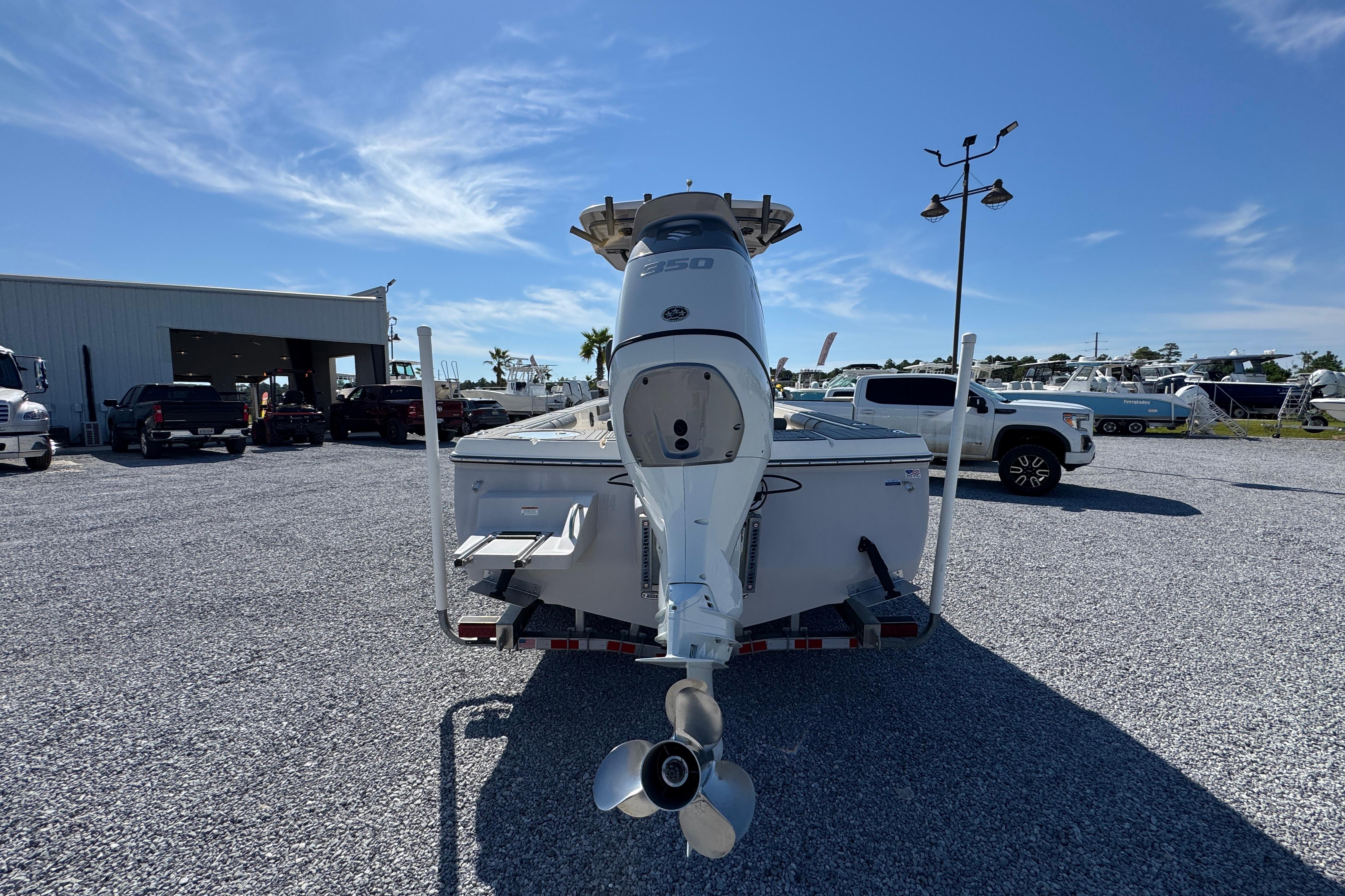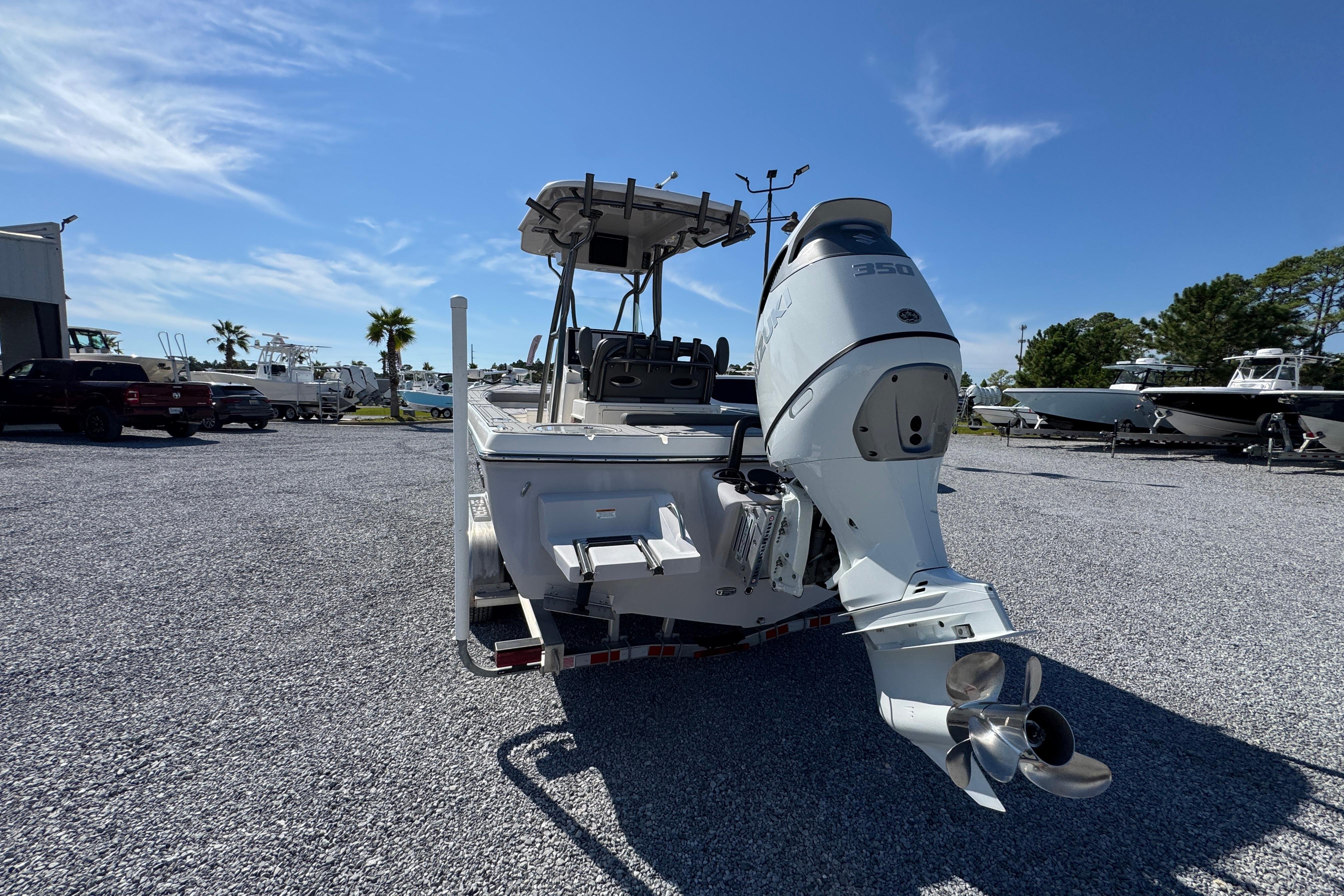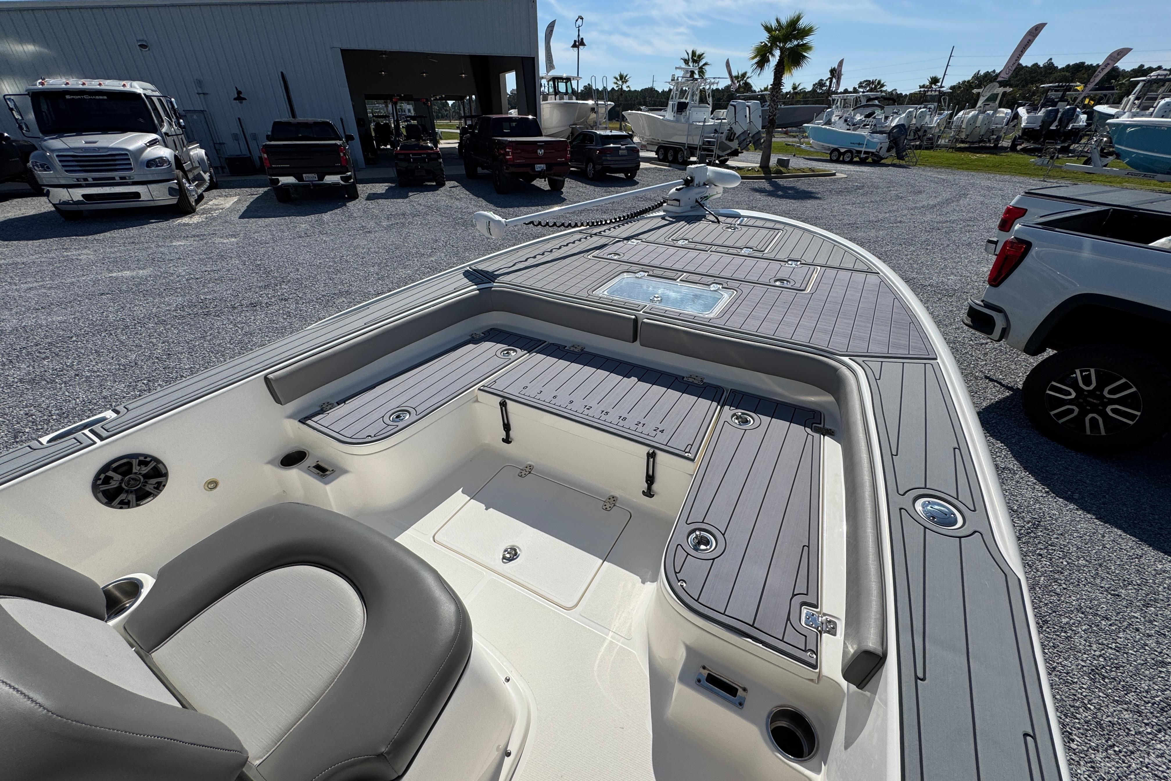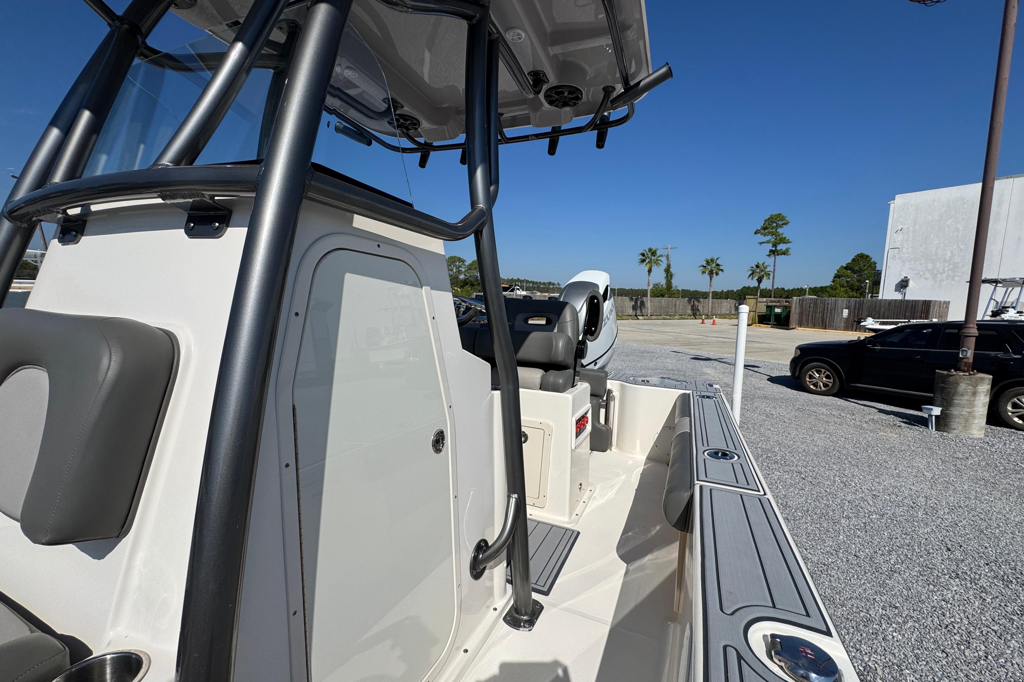 The flagship of the Sea Born bay boat lineup, the FX25 turns heads as one of our most sought-after models for the serious angler. Built on a stable 105" beam with a single-step hull for improving performance, the FX25’s sportfish-style transom and large forward casting deck make it a true hybrid and dual threat for both inshore or offshore.