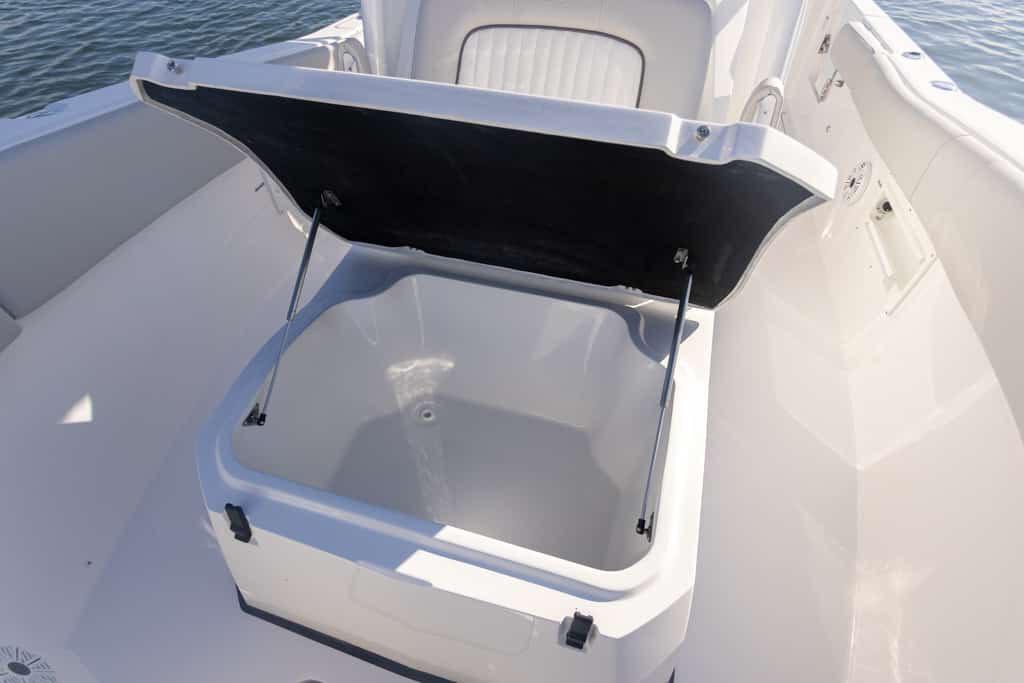 30-gallon pressurized livewell with aquarium window and dip net storage