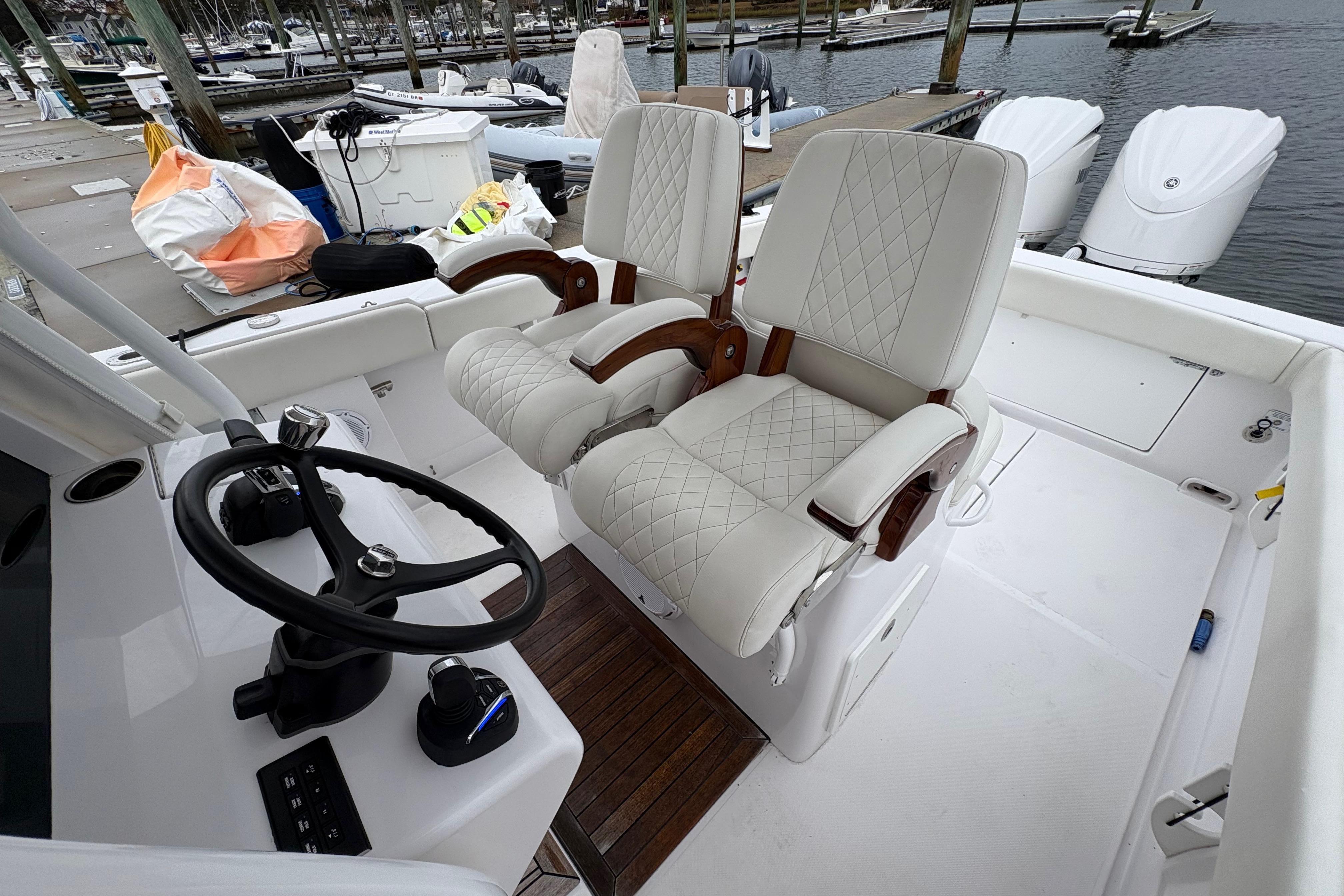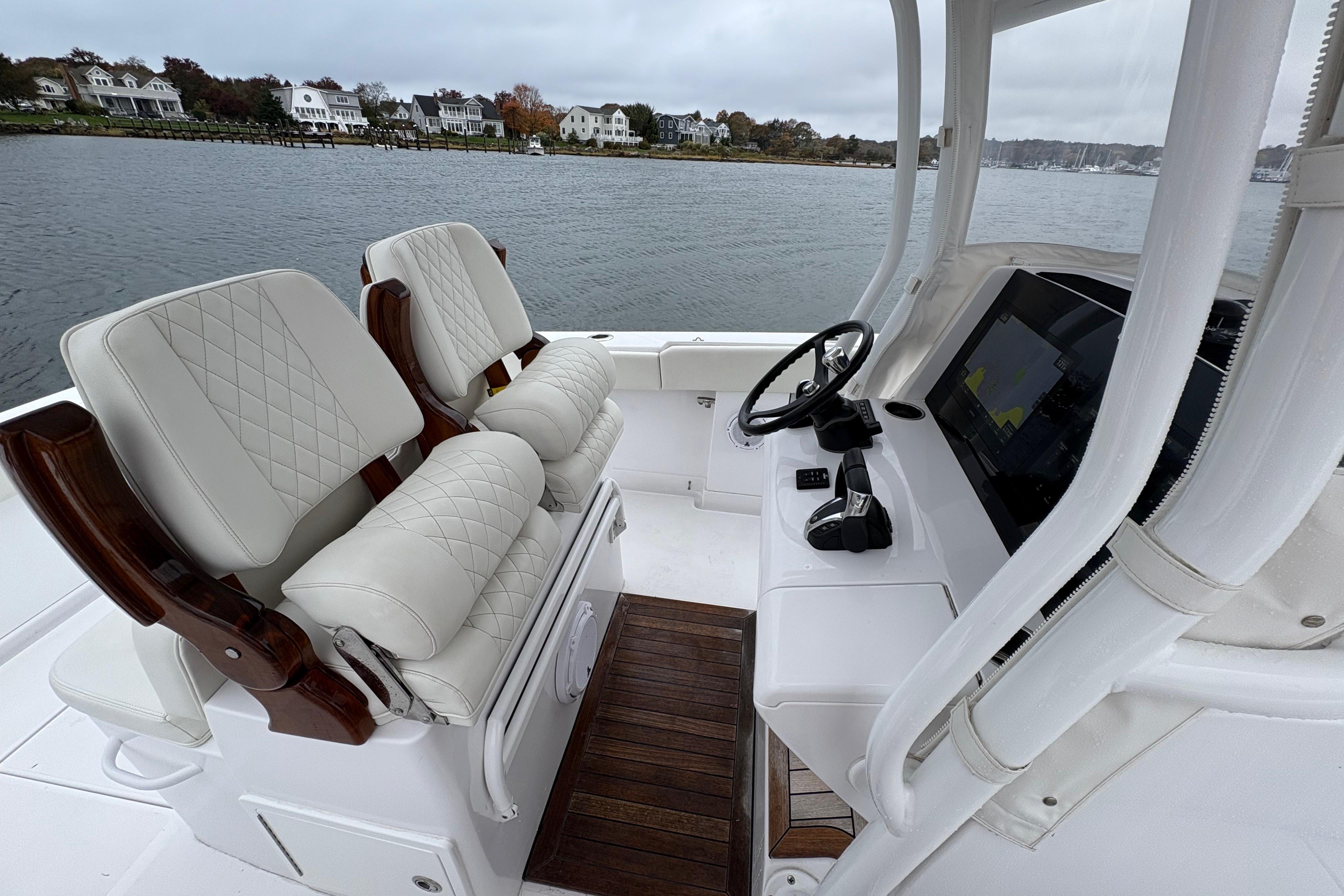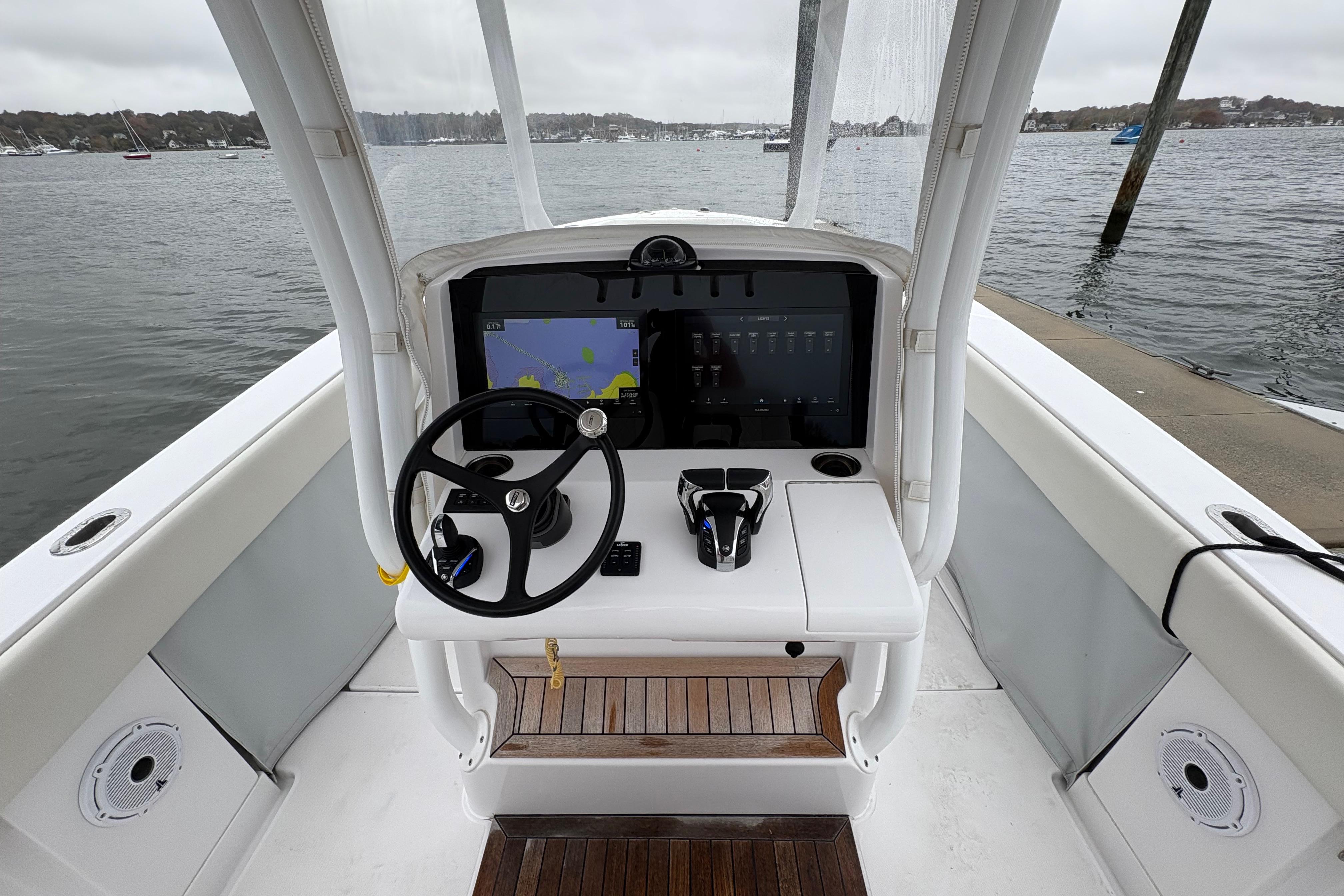 From offshore fishing to waterfront dining, secluded beaches to the yacht club, the Jupiter 30 with its variety of features and seating options can do it all. This low hour 2023 Jupiter 30 is powered by a pair of low hour Yamaha F300's which are accompanied by the Yamaha Helmaster EX Joystick System for unparalleled ease of maneuverability.