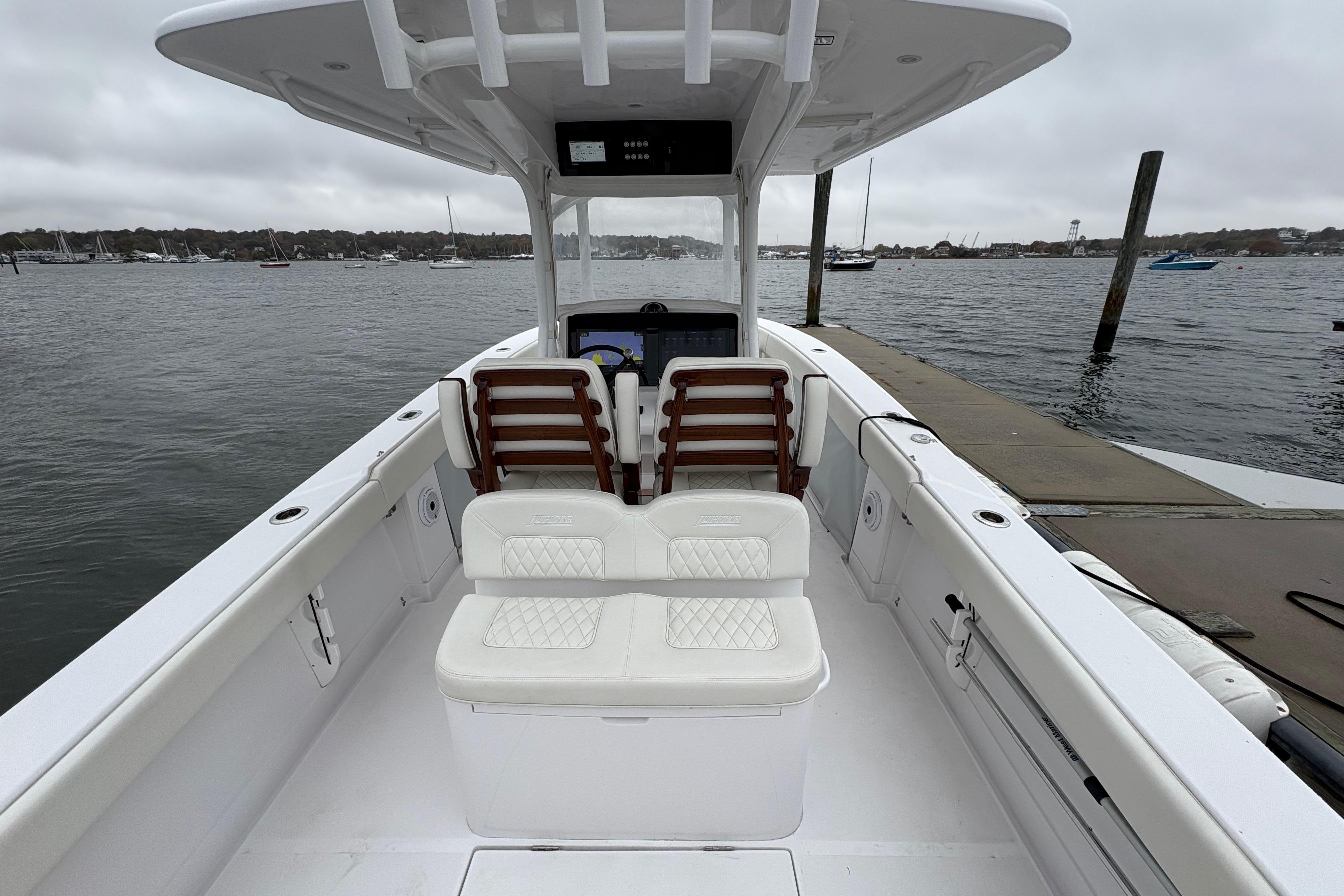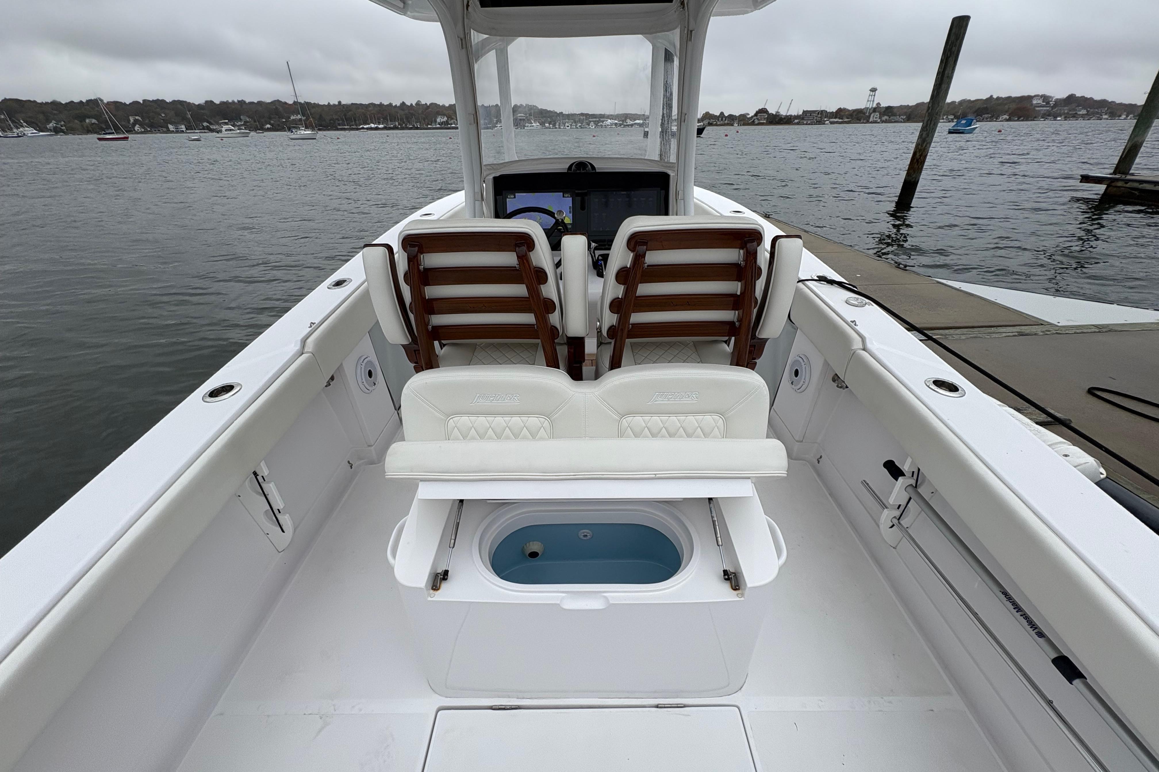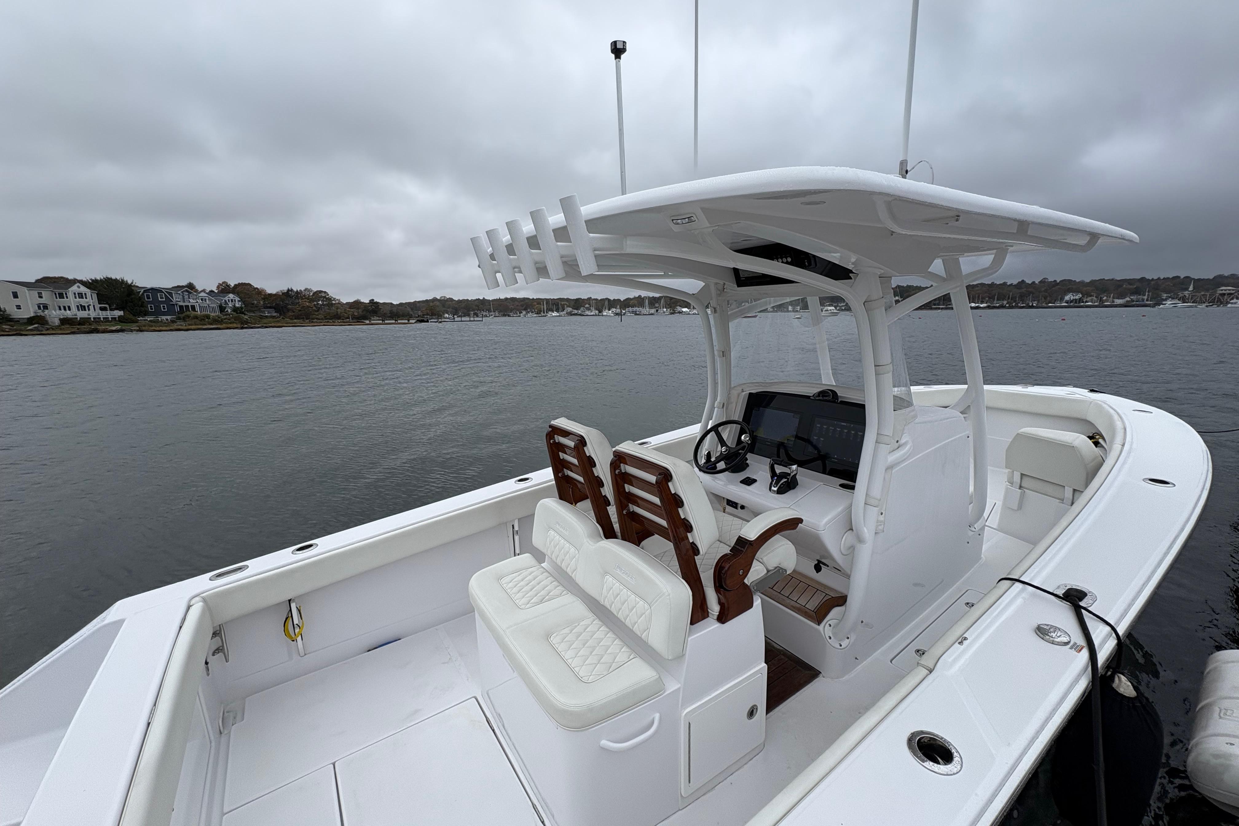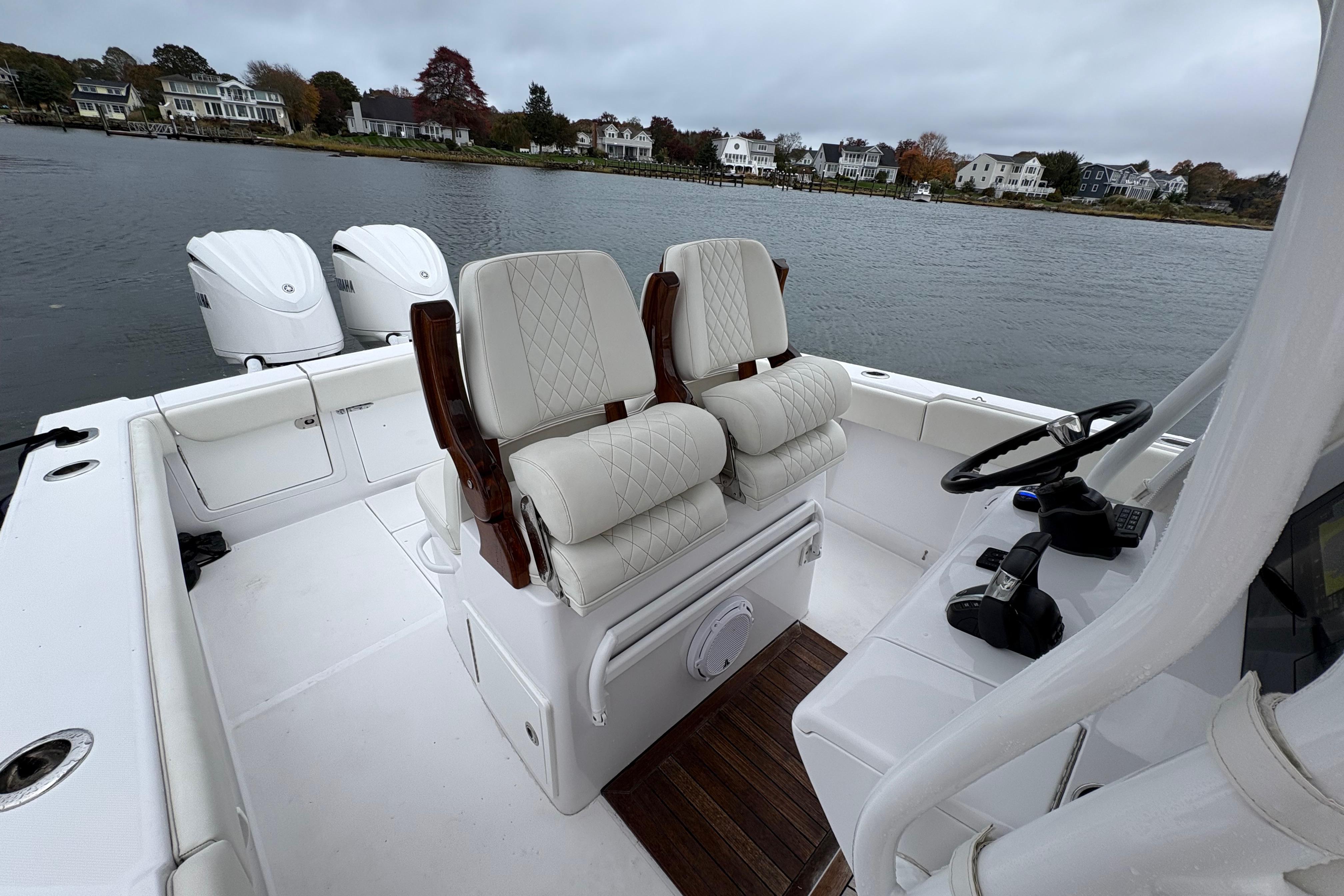 From offshore fishing to waterfront dining, secluded beaches to the yacht club, the Jupiter 30 with its variety of features and seating options can do it all. This low hour 2023 Jupiter 30 is powered by a pair of low hour Yamaha F300's which are accompanied by the Yamaha Helmaster EX Joystick System for unparalleled ease of maneuverability.