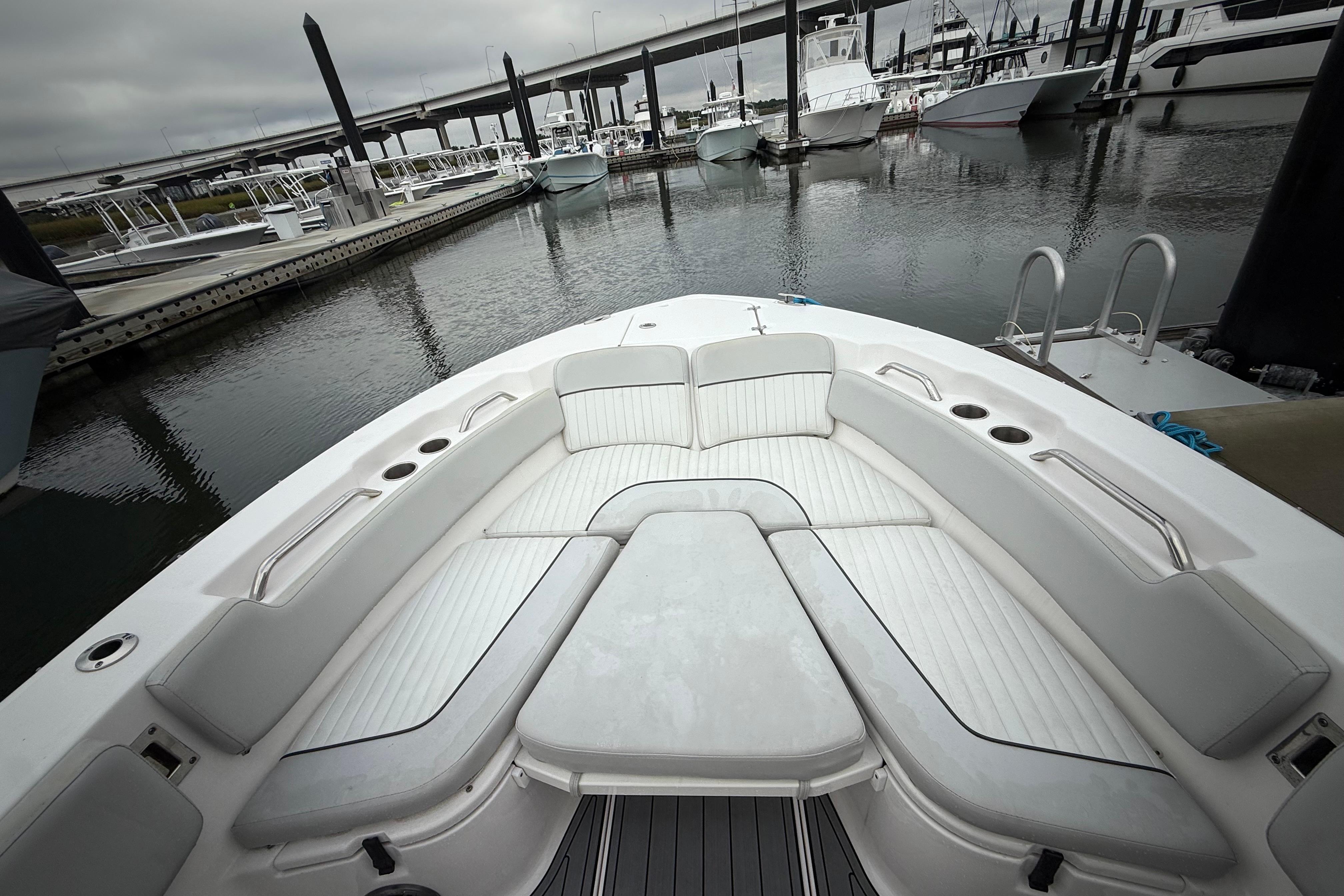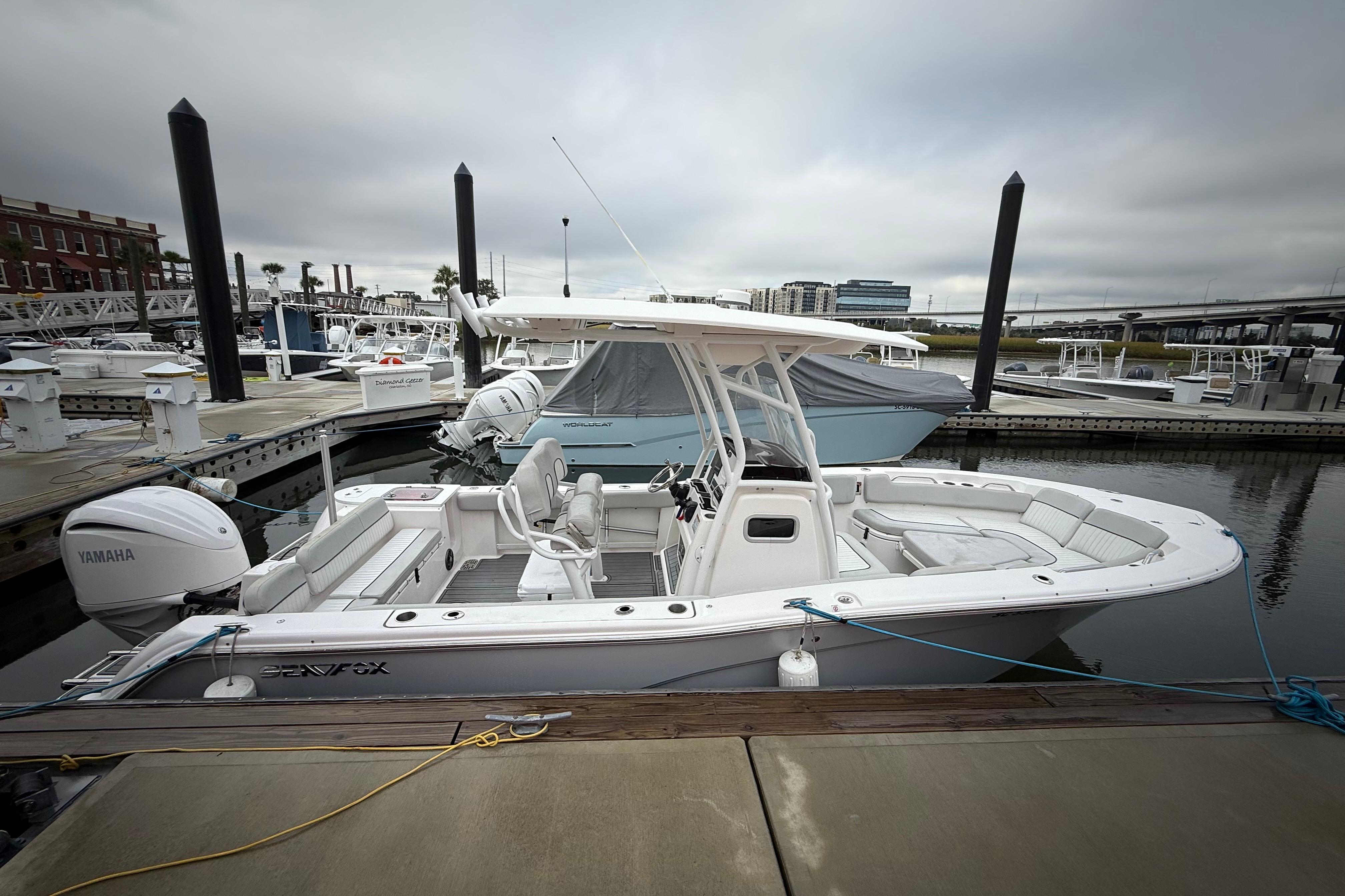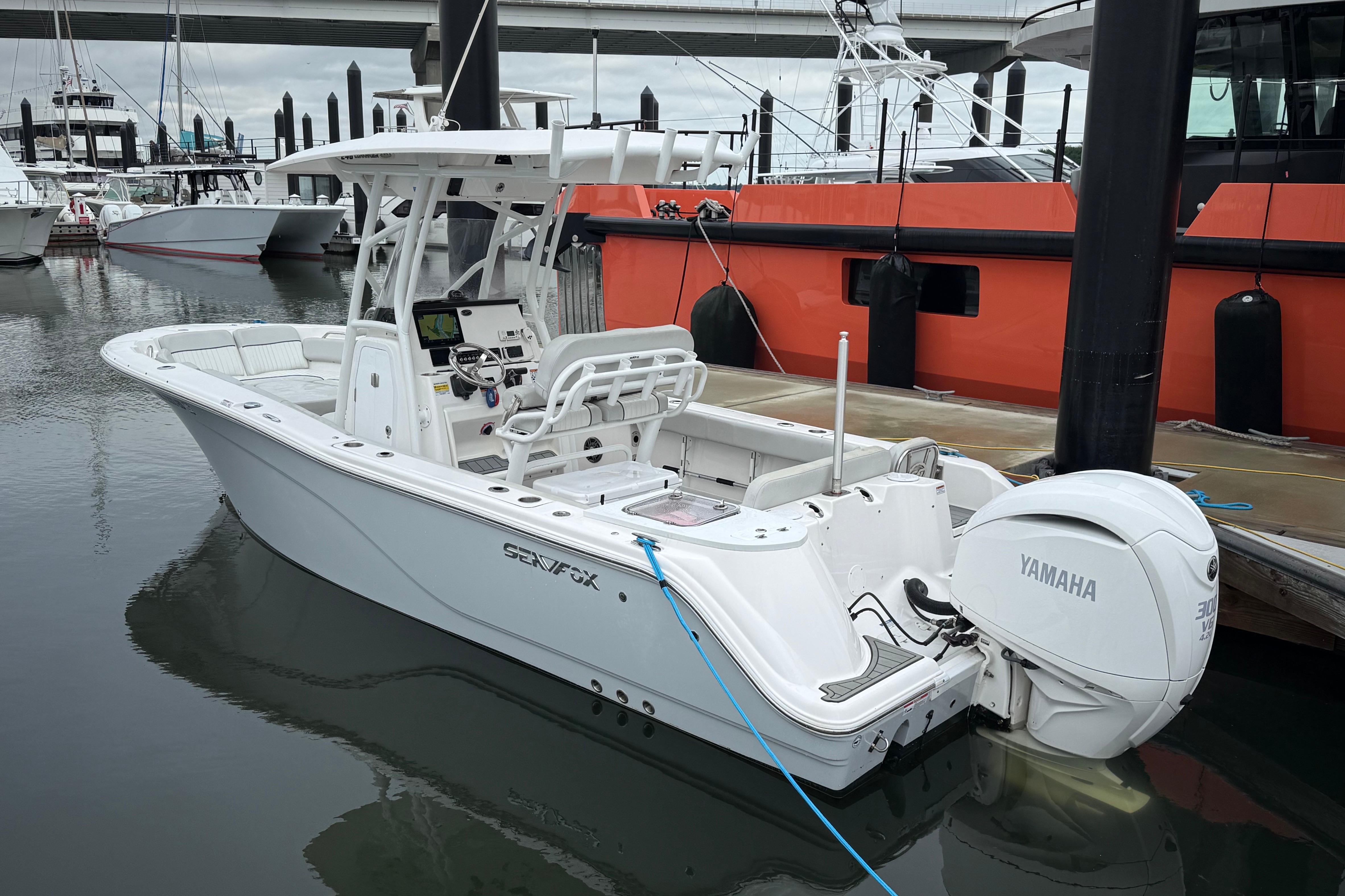 2023 Sea Fox 248 Commander powered by a Yamaha F300XCB with electronic controls, 34 hours on the engine and under Yamaha Factory Warranty until 9/1/2028.