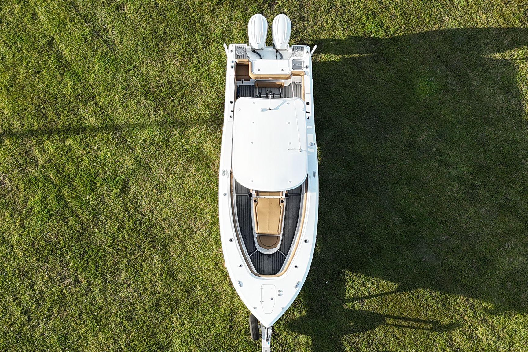 Powered by twin Yamaha F300 four-stroke outboards with only 101 original hours, this boat offers outstanding performance, fuel efficiency, and Yamaha’s proven reliability. The boat has been lightly used, meticulously maintained, and is 100% turn-key. A trailer is included, making transport and storage easy.