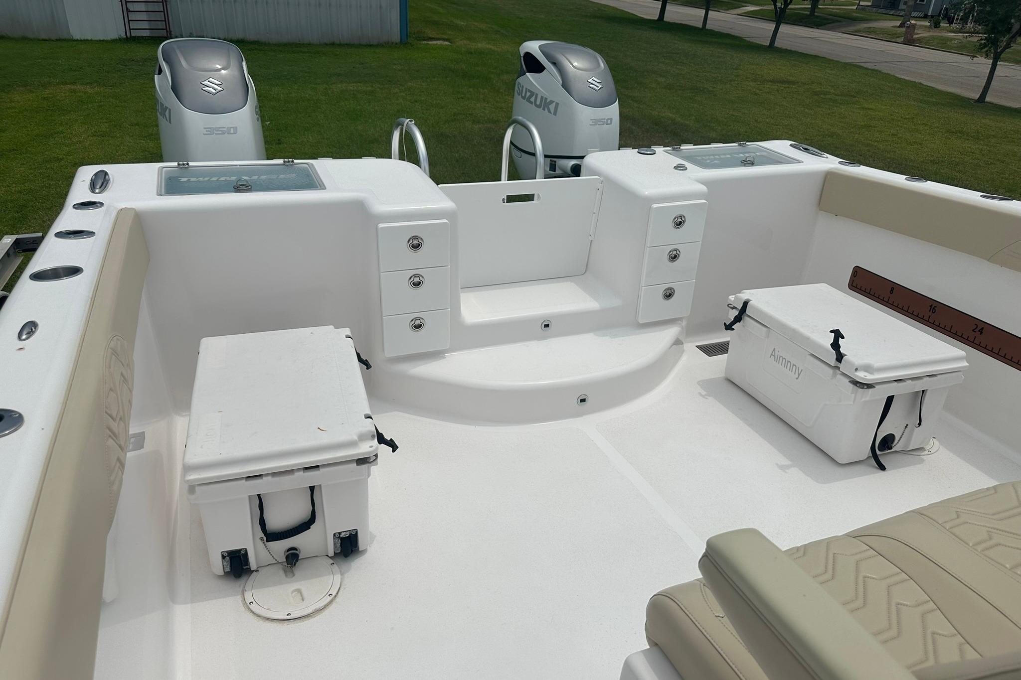 SHE IS POWRED BY TWIN SUZUKI 350HP OUTBOARD ENGINES THAT ARE UNDER WARRANTY UNTIL 2027!