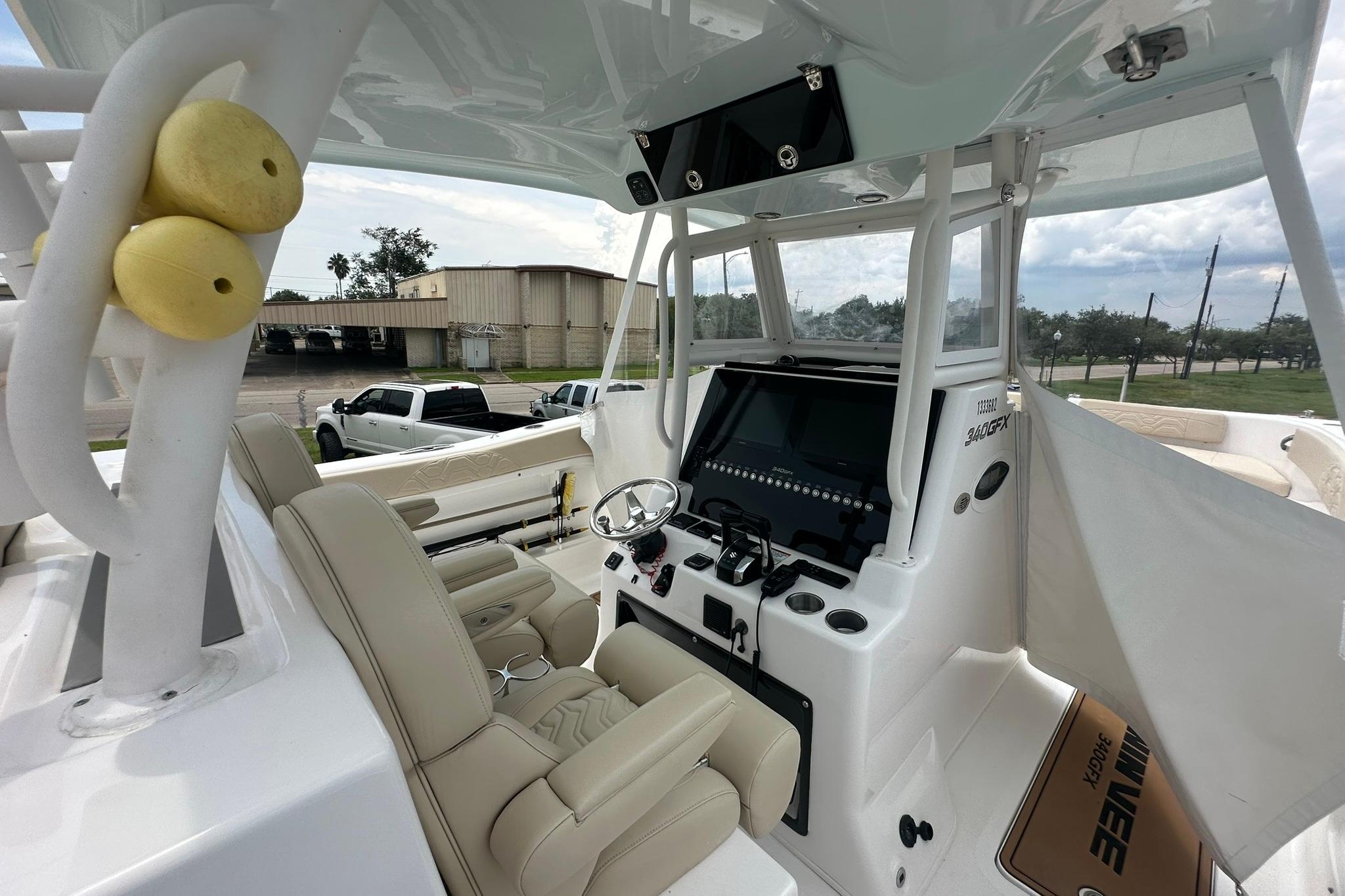 'CAT GONE WILD" PRESENTS THE RARE OPPORTUNITY TO PURCHASE AN EXCEPTIONAL EXAMPMLE OF A PRE-OWED 34' TWIN VEE 340 GFX CENTER CONSOLE AT A VERY REASONABLE PRICE!