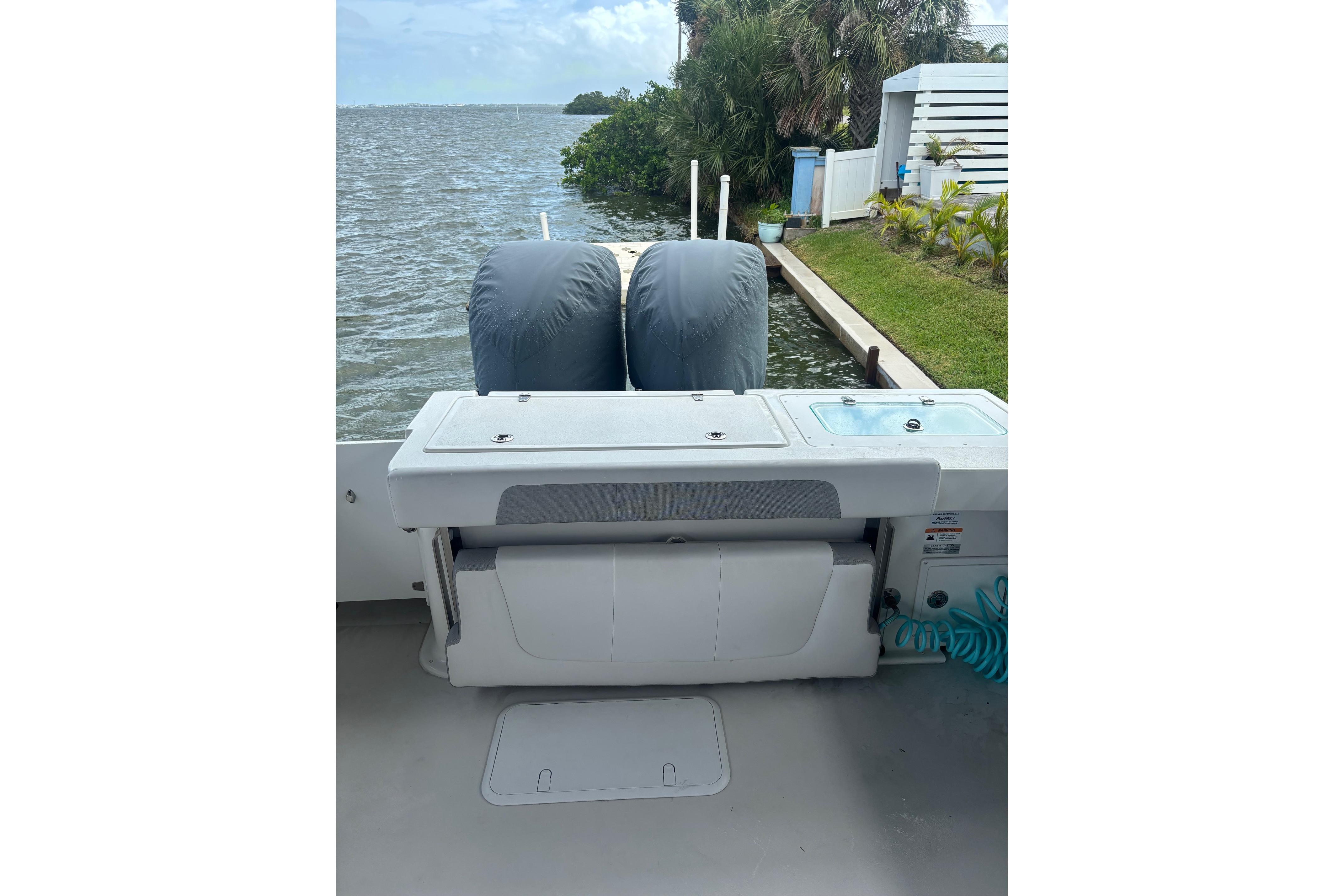 Full Transom with Transom Door, Engine Bracket, Boarding Ladder, Insulated Fish Box and Livewell