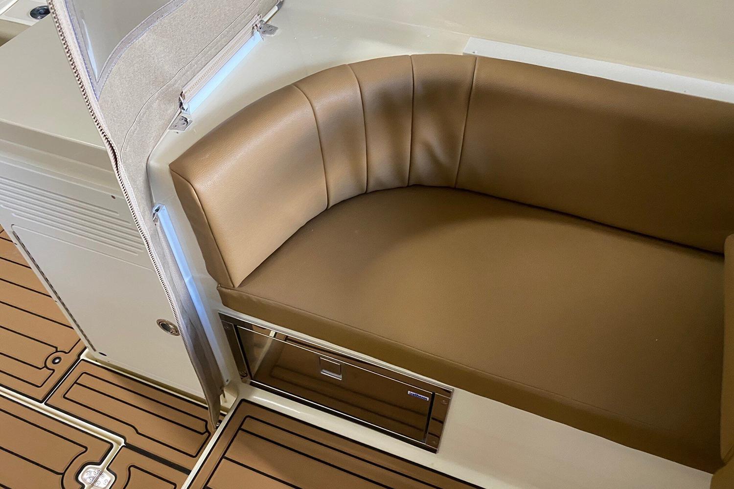 New features place the 315HT above the rest. Here are a hand full: 1.) We increased fuel to 316 gal and therefore range of 500 miles, depending upon speed, load and conditions. 2) Enhanced fish-ability by removal of the L-Shape Settee in the pilothouse, to get the Captain and Crew to the action quicker. 3) We have ample seating on port and starboard sides aft of the Helm and Companion Seats. 4) Standard pull out Refrigerator drawer. 5) Standard Cockpit Grill and Cockpit Sink with storage for grilling tools and fishing tackle. 6) By lengthening of the cockpit the macerated in-deck fish boxes increased to combined 116 gal. (58 gal. each). 7) Addition of the full transom includes two Live Wells, a 26 Gal Live Well and 19 Gal Live well for specialty baits. 8) Port side Tuna Door in cockpit. 9) Full 60” Folding Cockpit Seat. 10) Large walk-through Transom Door. 11) Full Armstrong Swim platform twin engine Bracket. 12) 40 Gallons Fresh Water. All of these features combine to increase your enjoyment while fishing or cruising the coast.