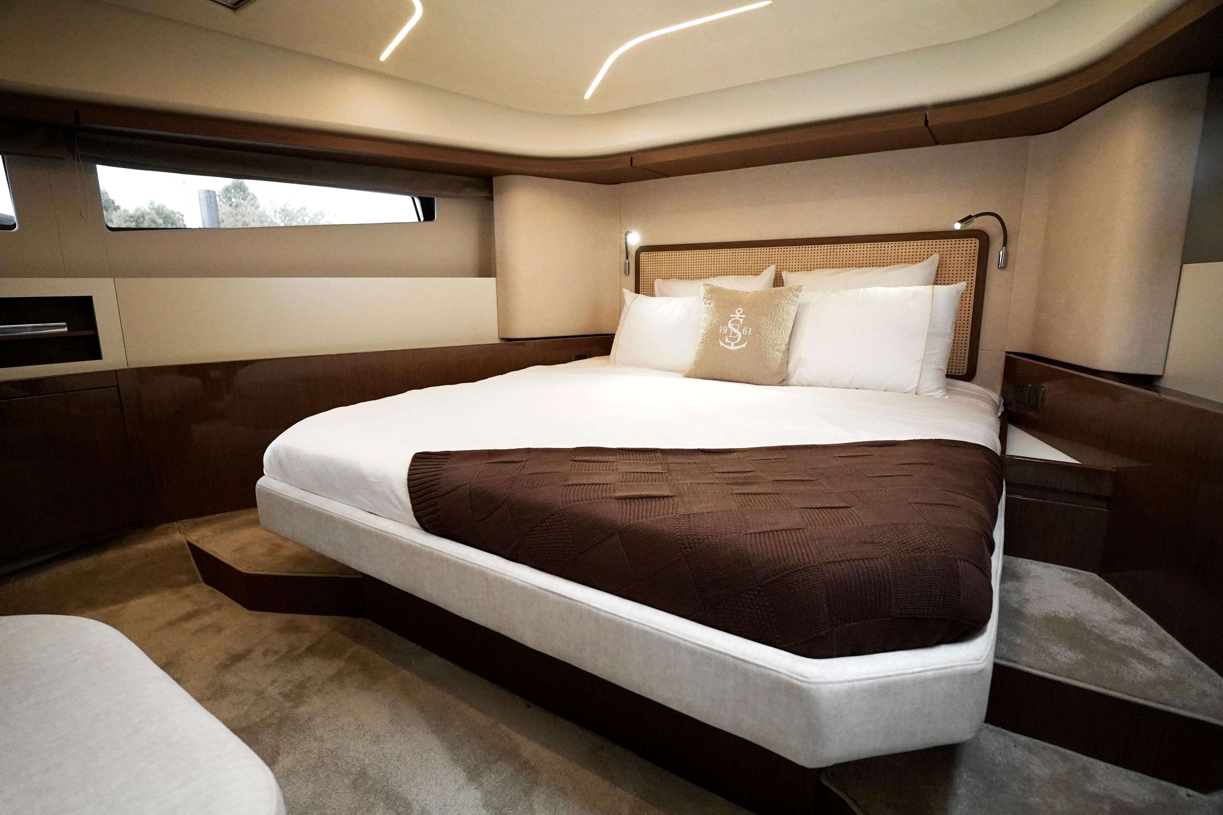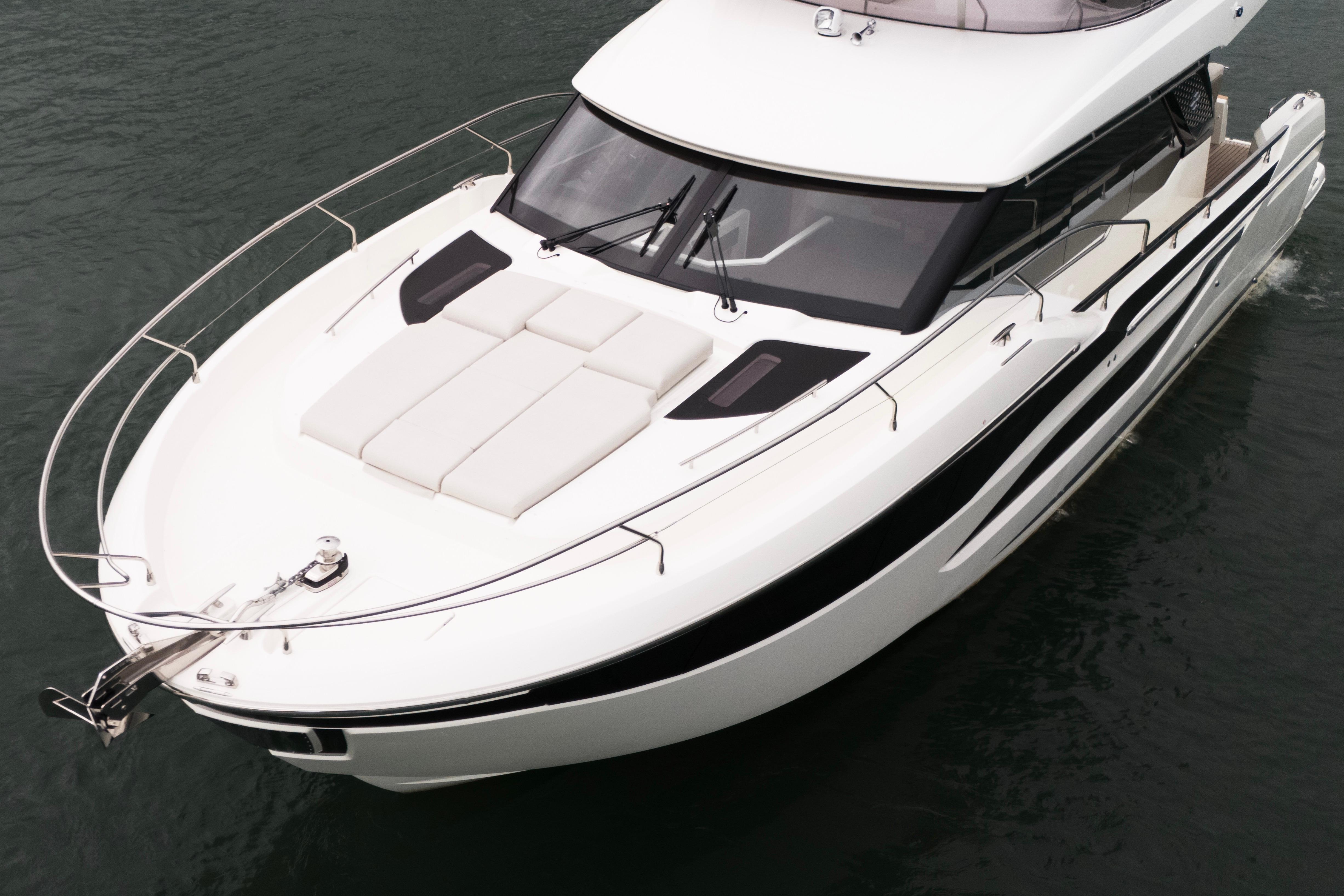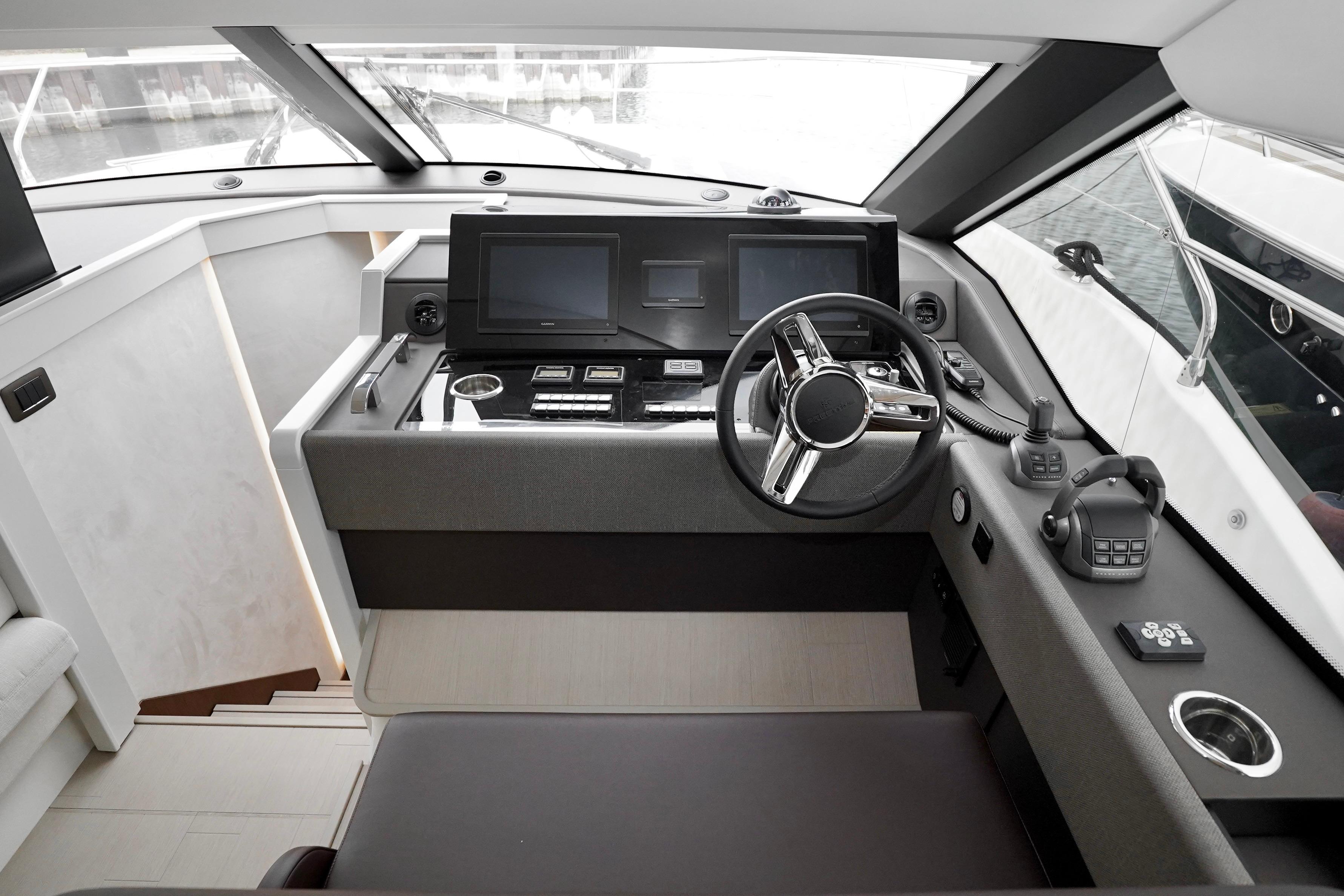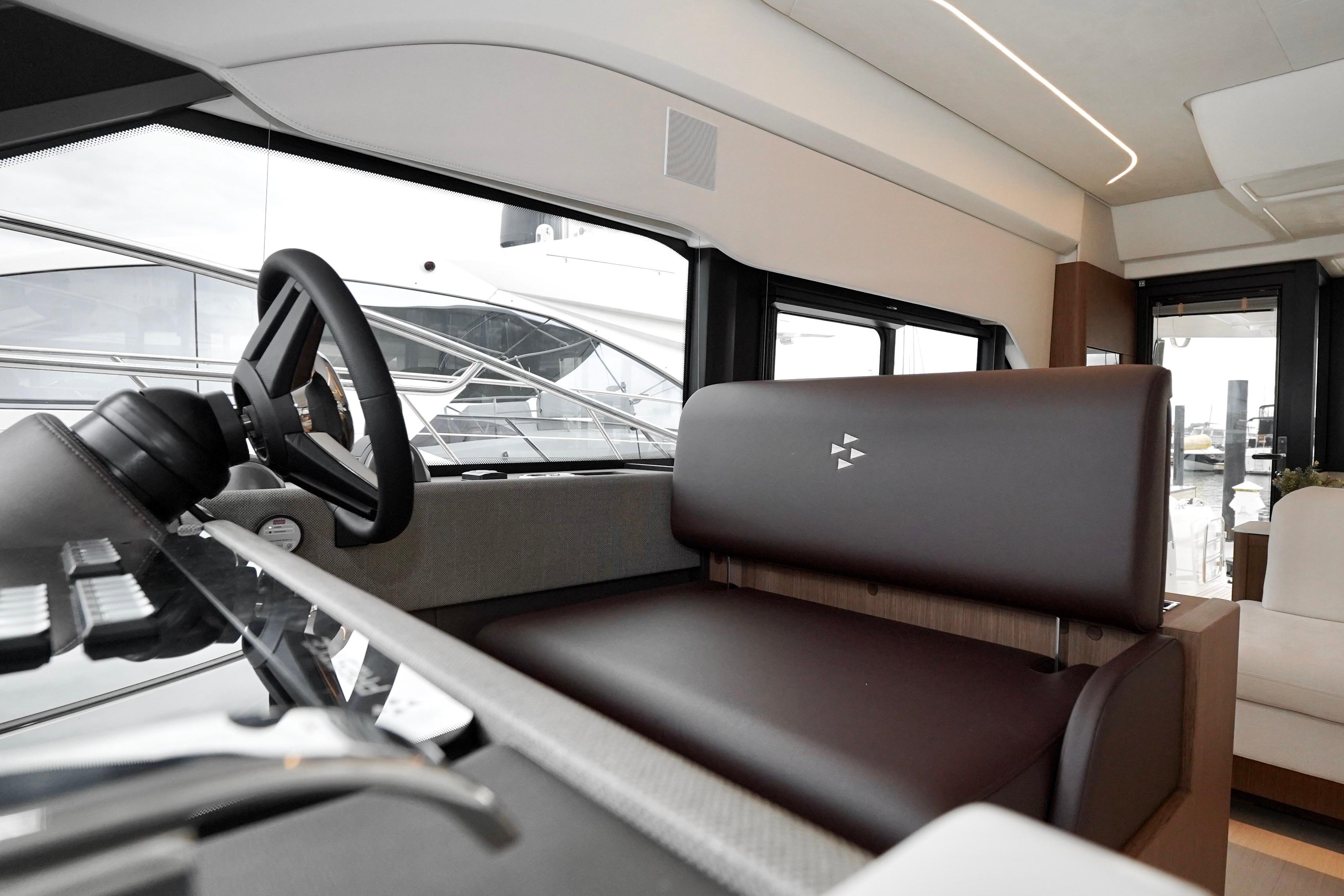 With its flush flooring and all-new OceanView galley, the epicenter of life on board, the F4.9 enables you to truly feel at home. The saloon features a soft, inviting atmosphere, and the sea is omnipresent, viewed from the helm station through panoramic sliding glass doors.