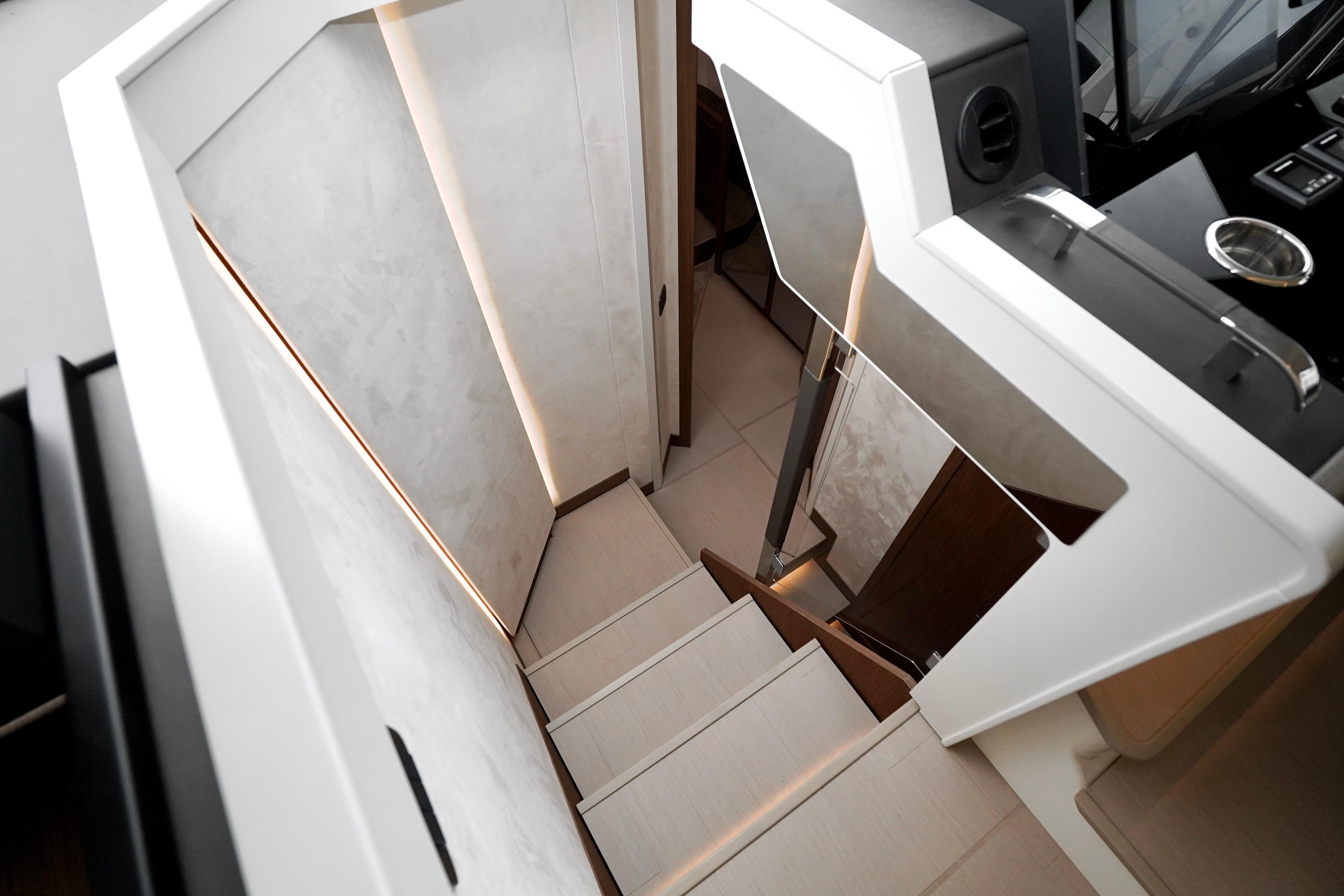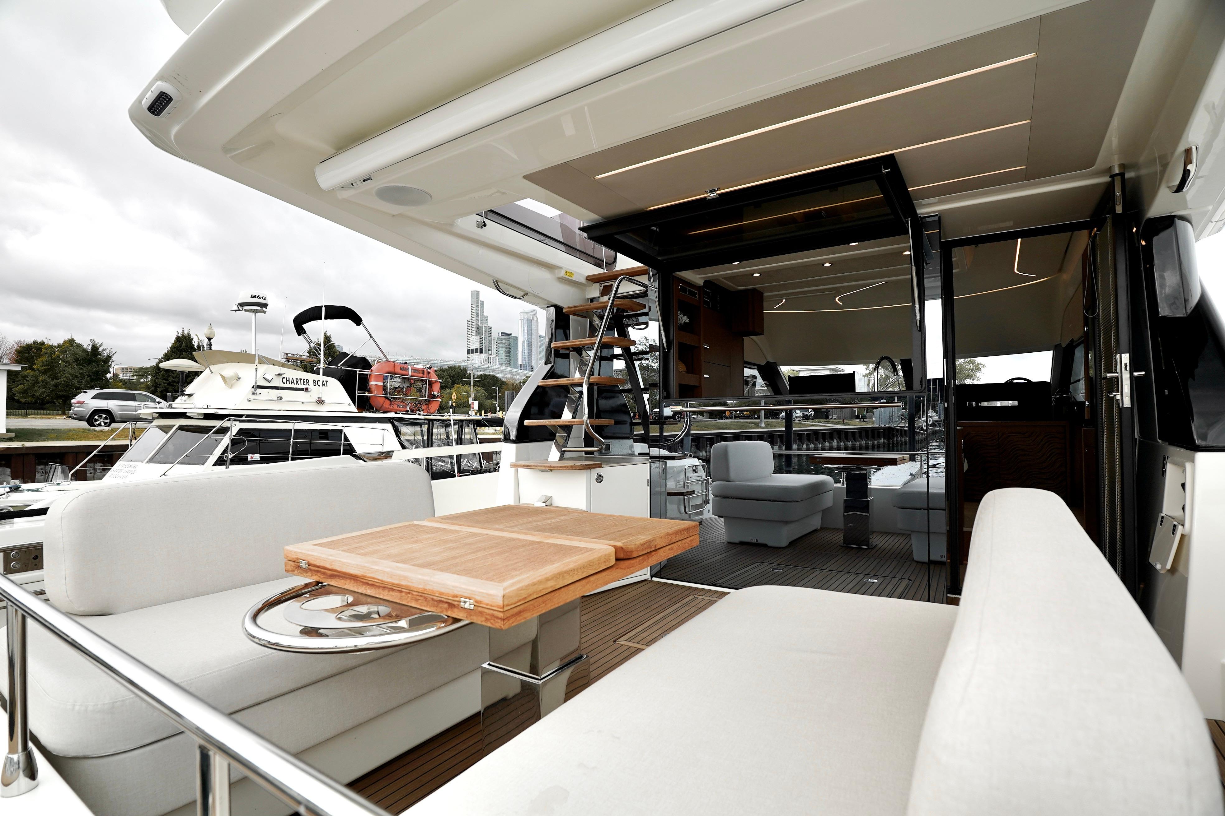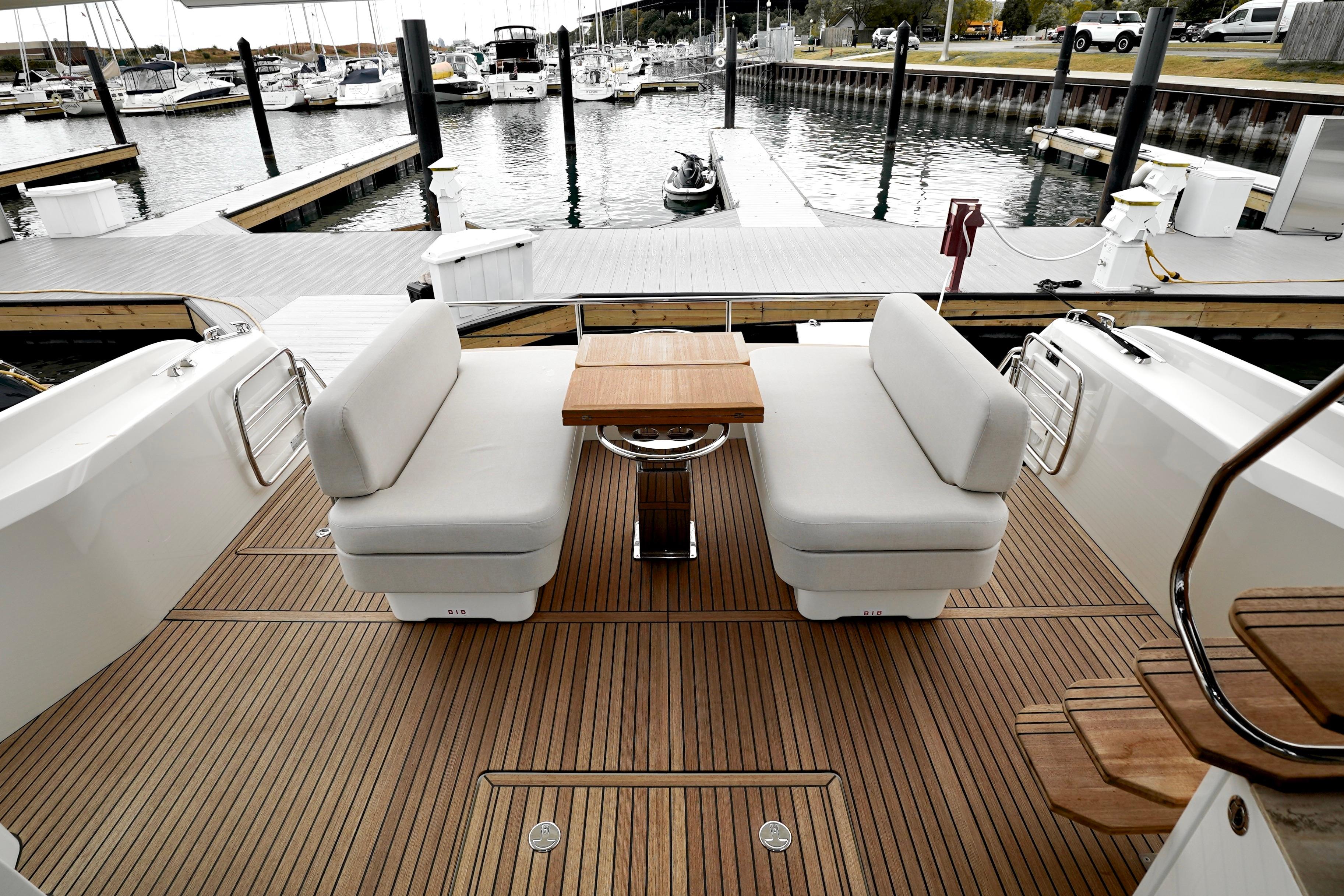 With its flush flooring and all-new OceanView galley, the epicenter of life on board, the F4.9 enables you to truly feel at home. The saloon features a soft, inviting atmosphere, and the sea is omnipresent, viewed from the helm station through panoramic sliding glass doors.