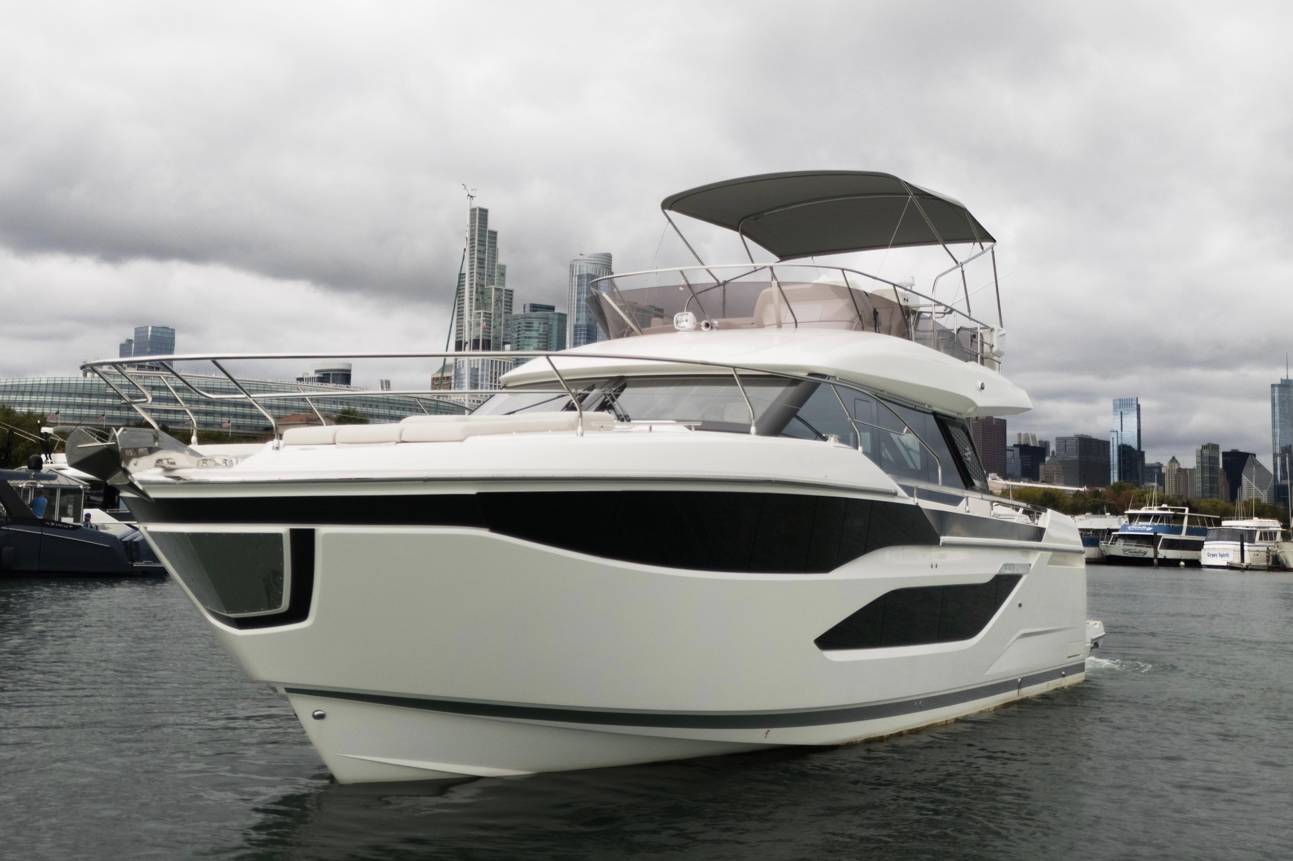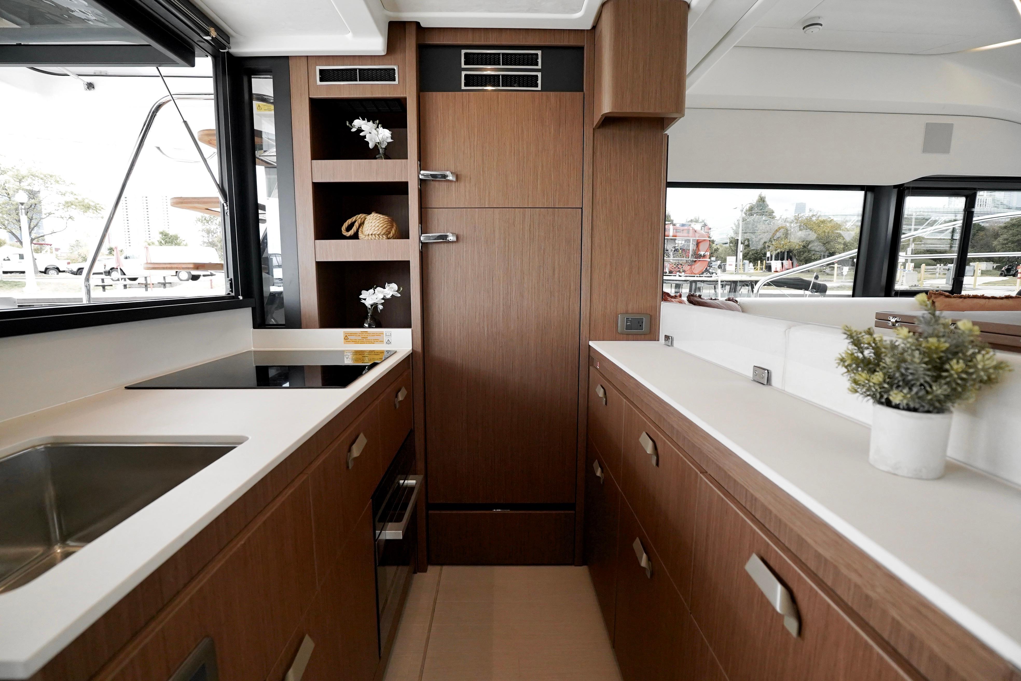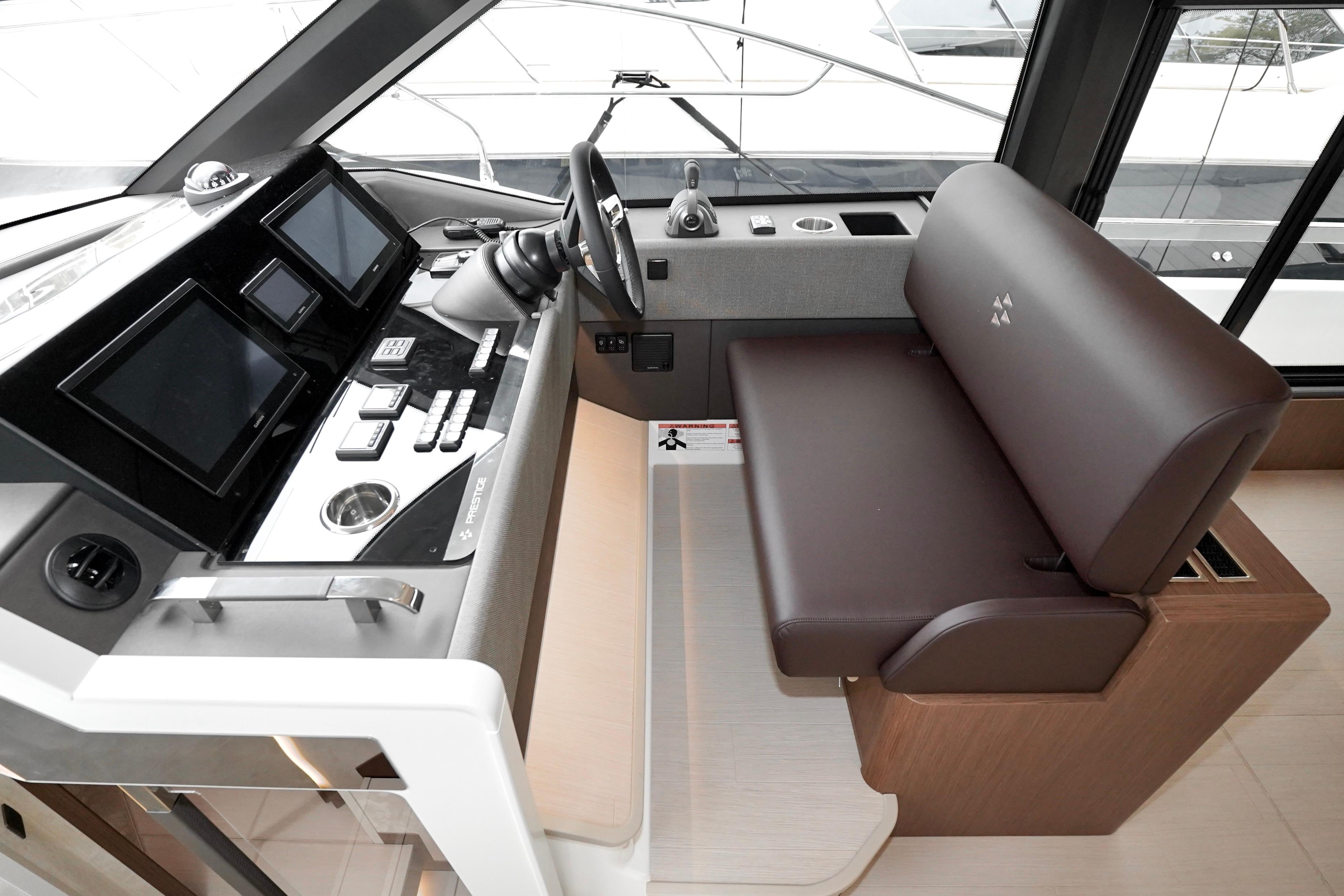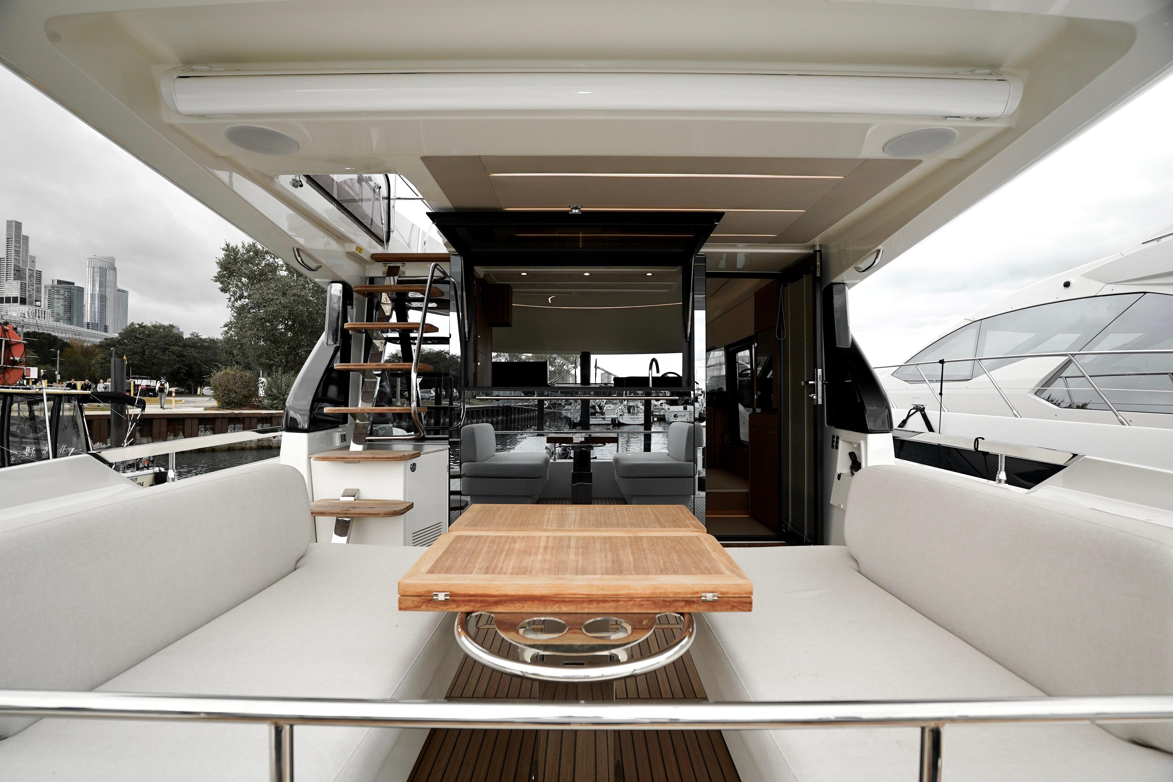 With its flush flooring and all-new OceanView galley, the epicenter of life on board, the F4.9 enables you to truly feel at home. The saloon features a soft, inviting atmosphere, and the sea is omnipresent, viewed from the helm station through panoramic sliding glass doors.