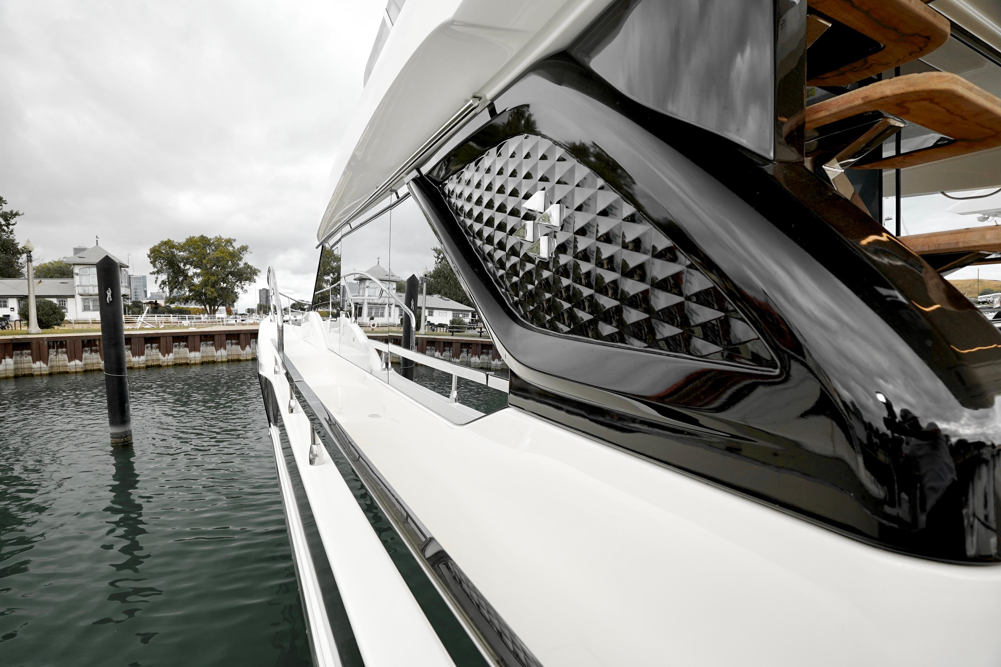 Inspired by the movement of water, the elegant, fluid exterior lines of the new hull of the F4.9 marry perfectly with the polished surfaces of living spaces, reflecting an abundance of natural light. Curves have been meticulously studied to confer softness, refinement, and power to the whole. The exterior and interior furnishings have been reinvented to offer exceptional comfort for all on board.