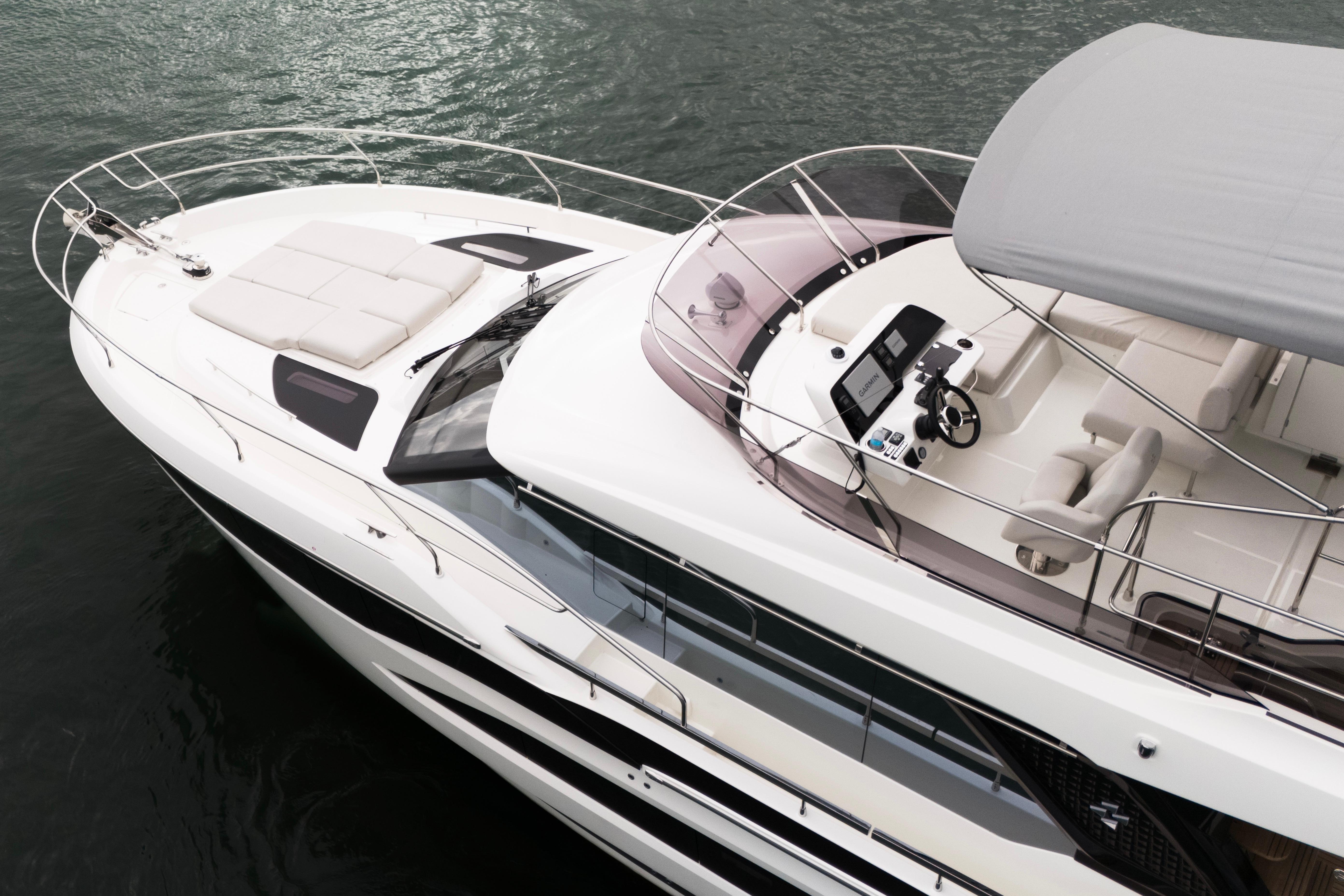 A true terrace on the water, the flybridge can be sheltered by a bimini or a hard top. A fully equipped exterior galley and a modular dining table enable you to savor delicious moments together while enjoying a breathtaking view of the water. Near the helm station, a sunpad and lounge seating create an inviting additional living area. Optimized layouts offer unprecedented ease of movement and comfort for all onboard.