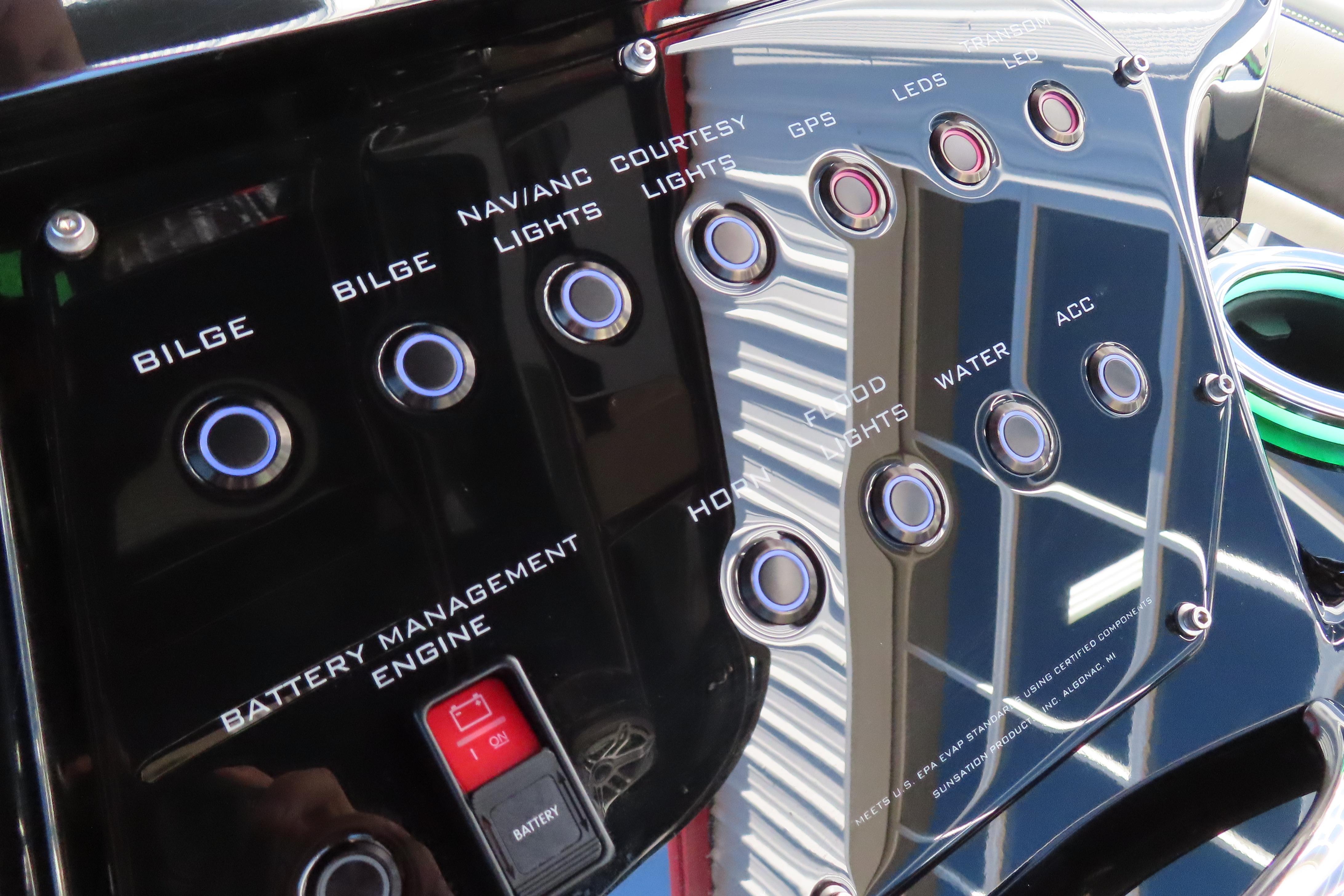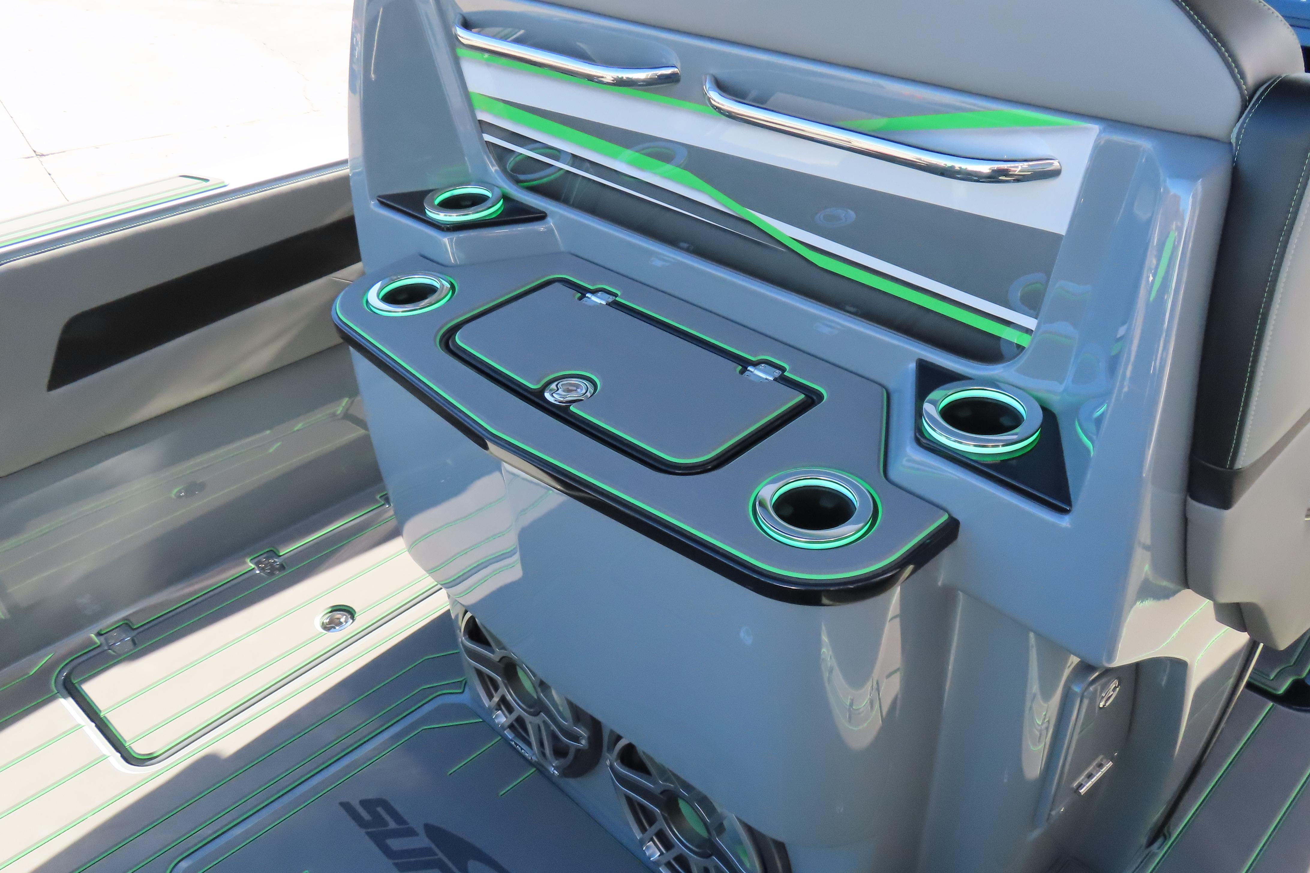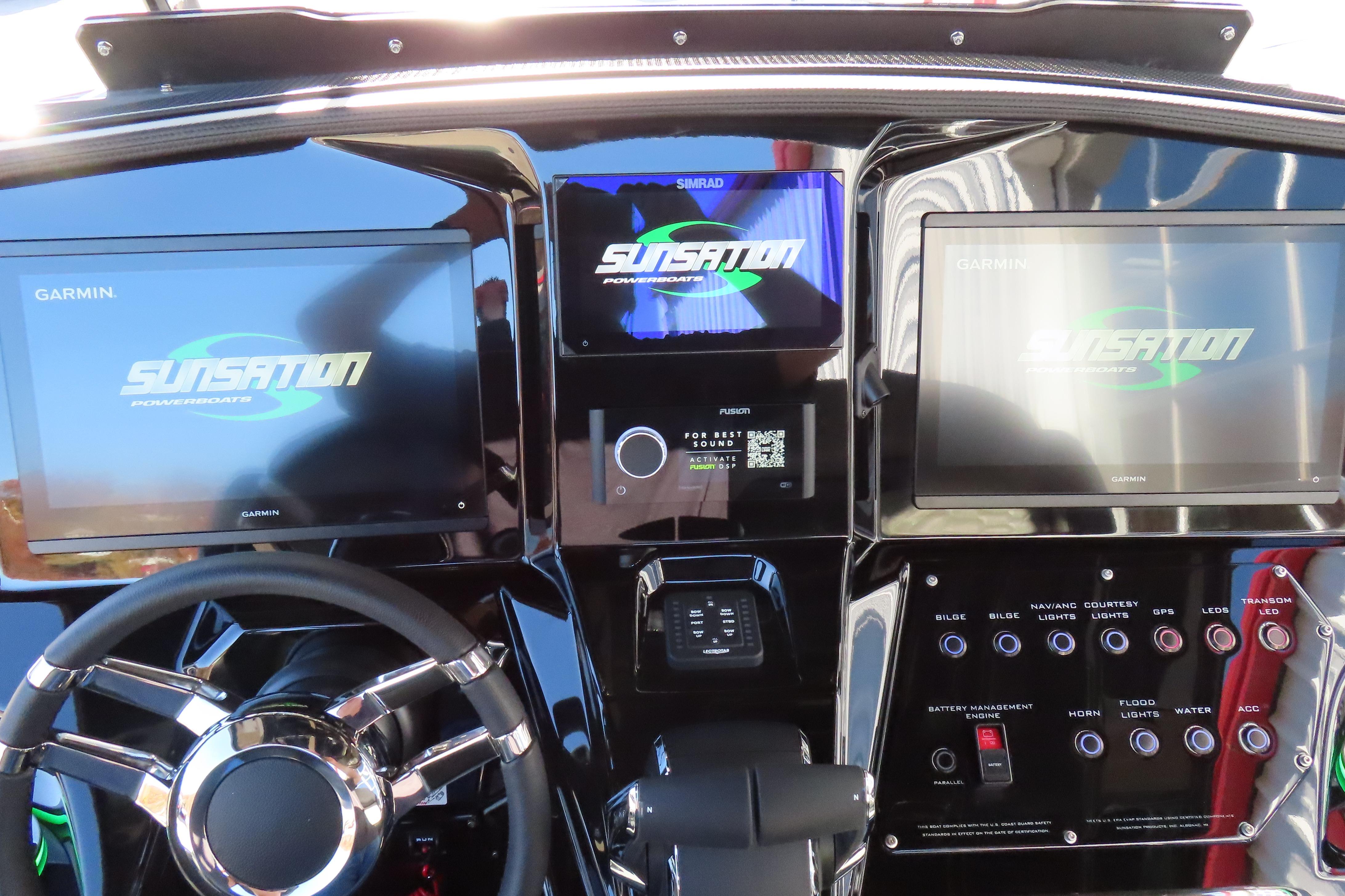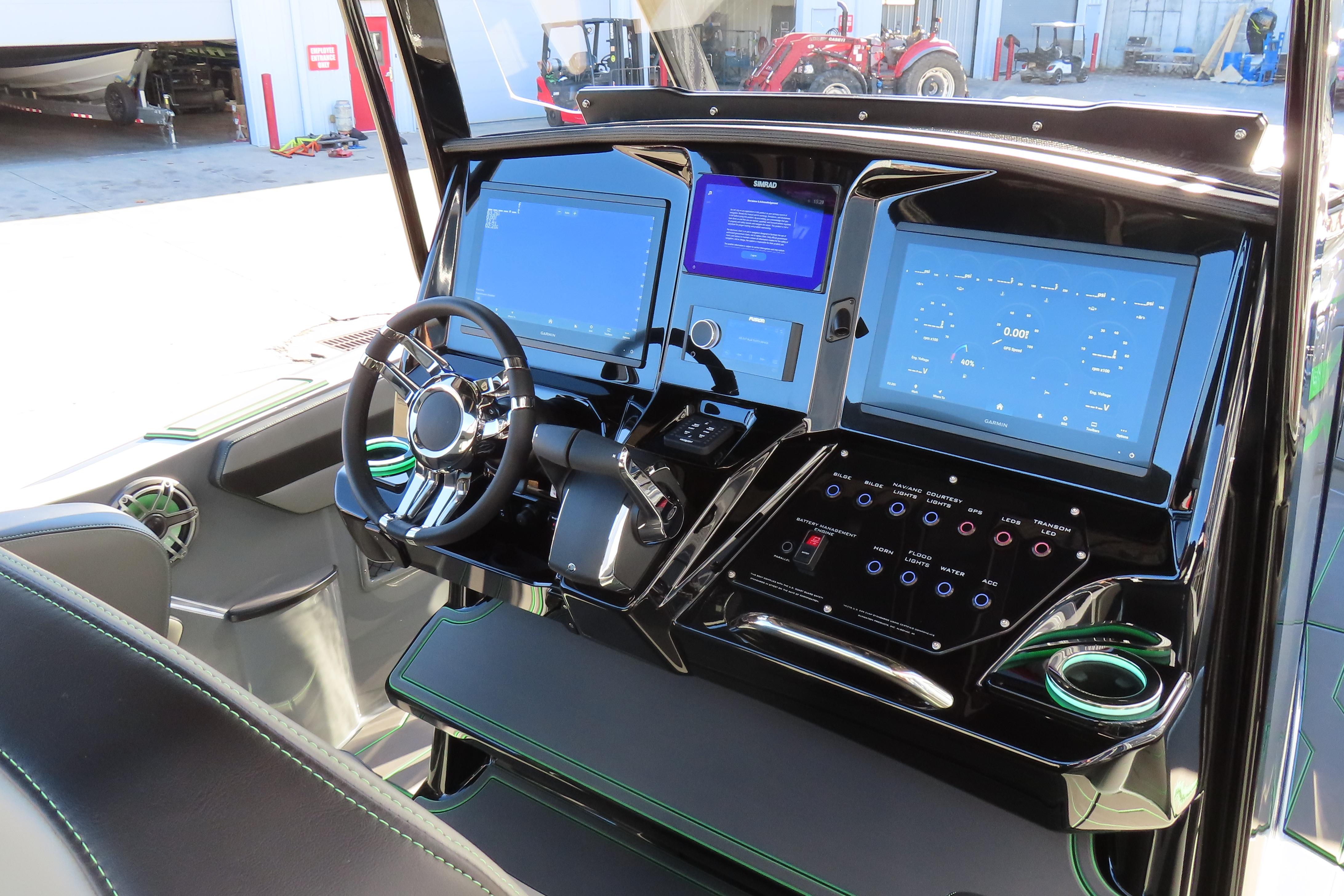 Loaded with options, stage 2 JL Audio sound system with bow remote, stage 1 engine paint, additional battery with onboard charger and electric switch on dash, dual Garmin 8616s. Mercury Vessel View, depth sounder, LED RGB color changing cockpit lights, Hydra-Foam flooring, Isotta steering wheel with tilt, LED trim tab indicators, pump out porta potty, windlass anchor, custom paint, and much more!